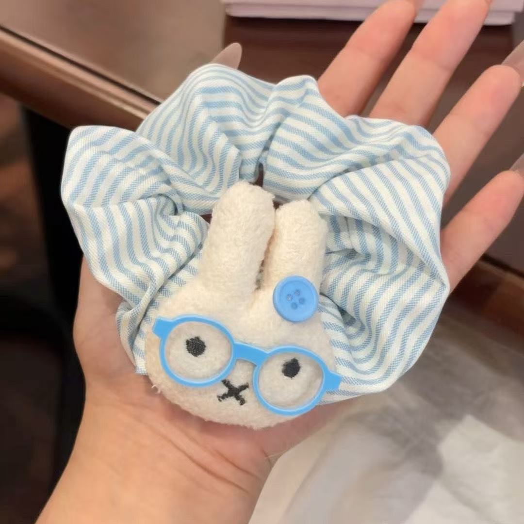 • 5969 고대 안경 머리끈 - 파란색 줄무늬 토끼