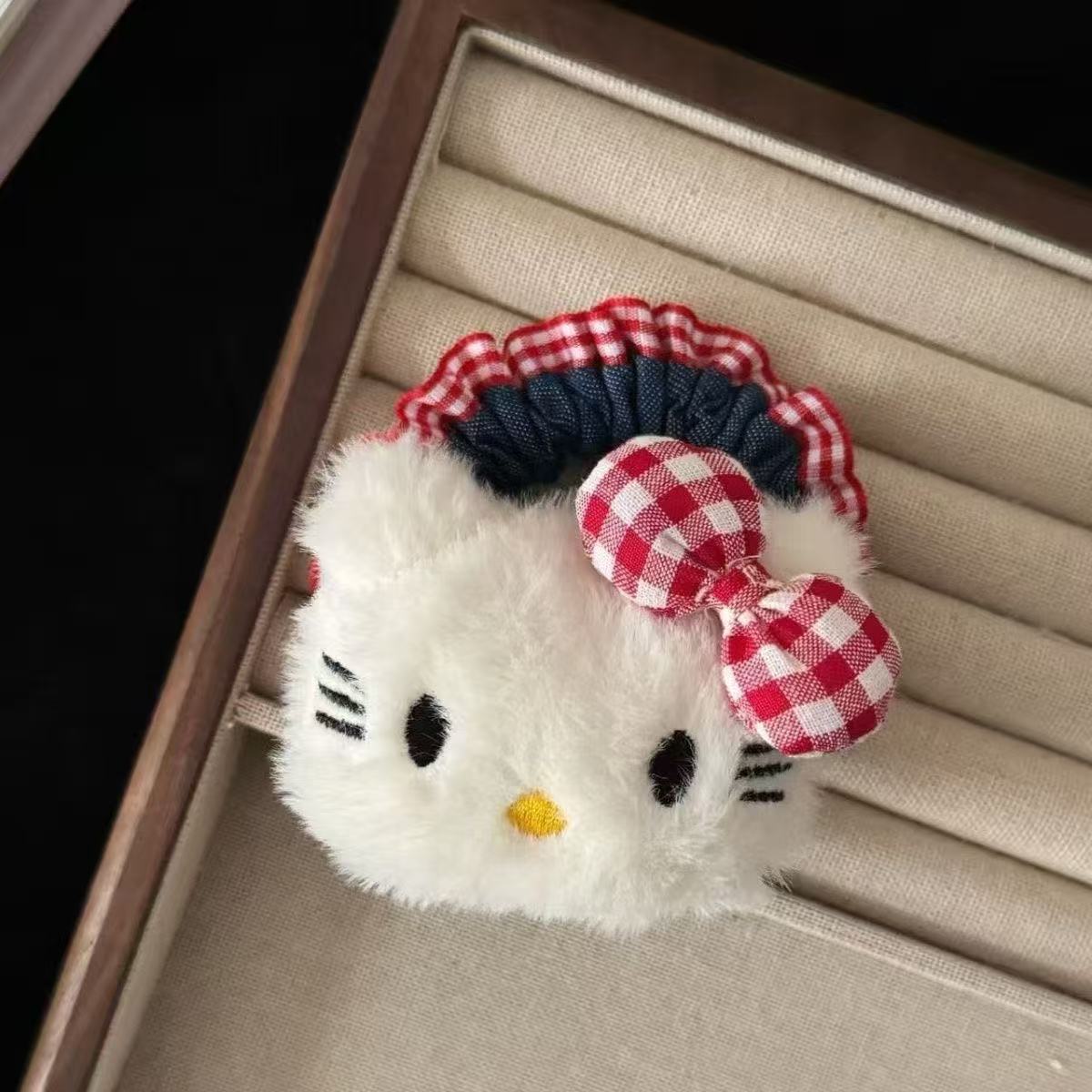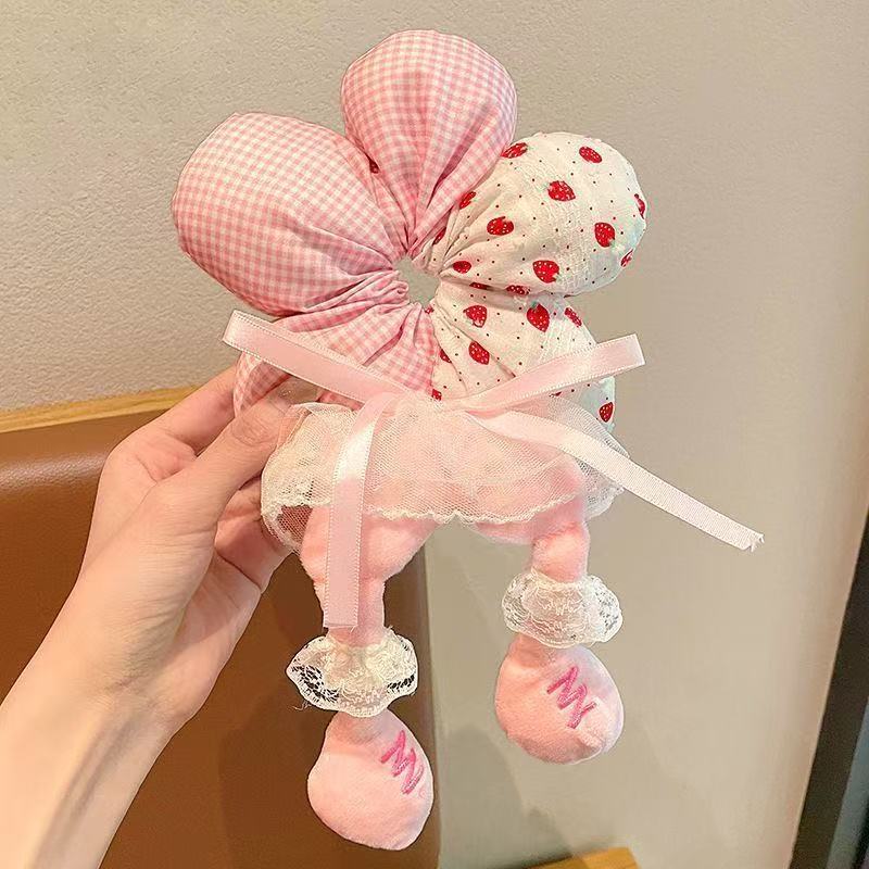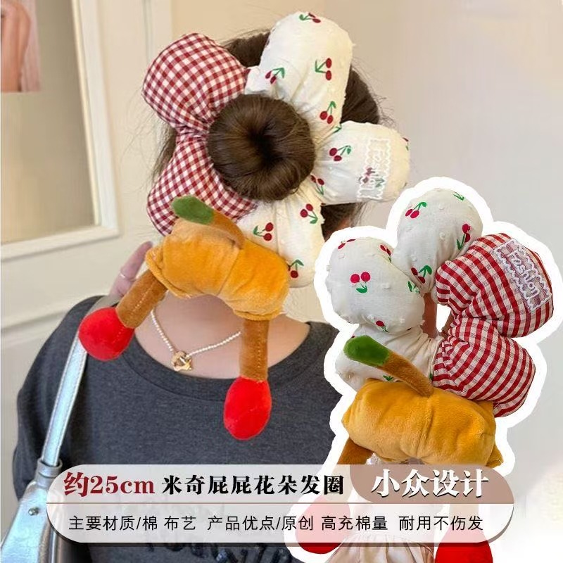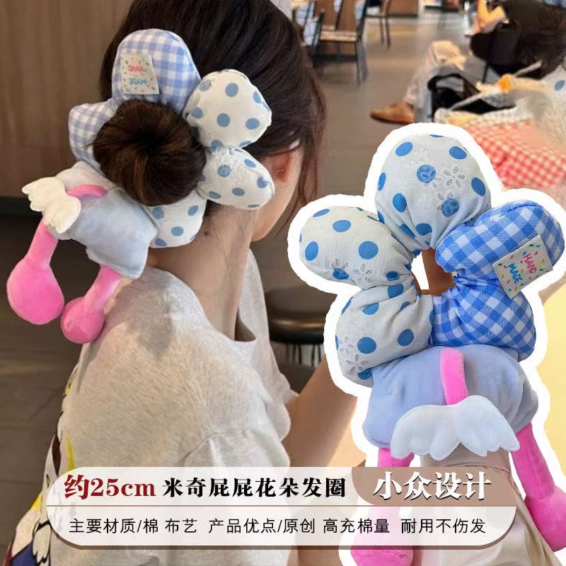 • 5617m 기괴한 엉덩이 꽃 머리끈 - 배색 체크 천사 꼬리
