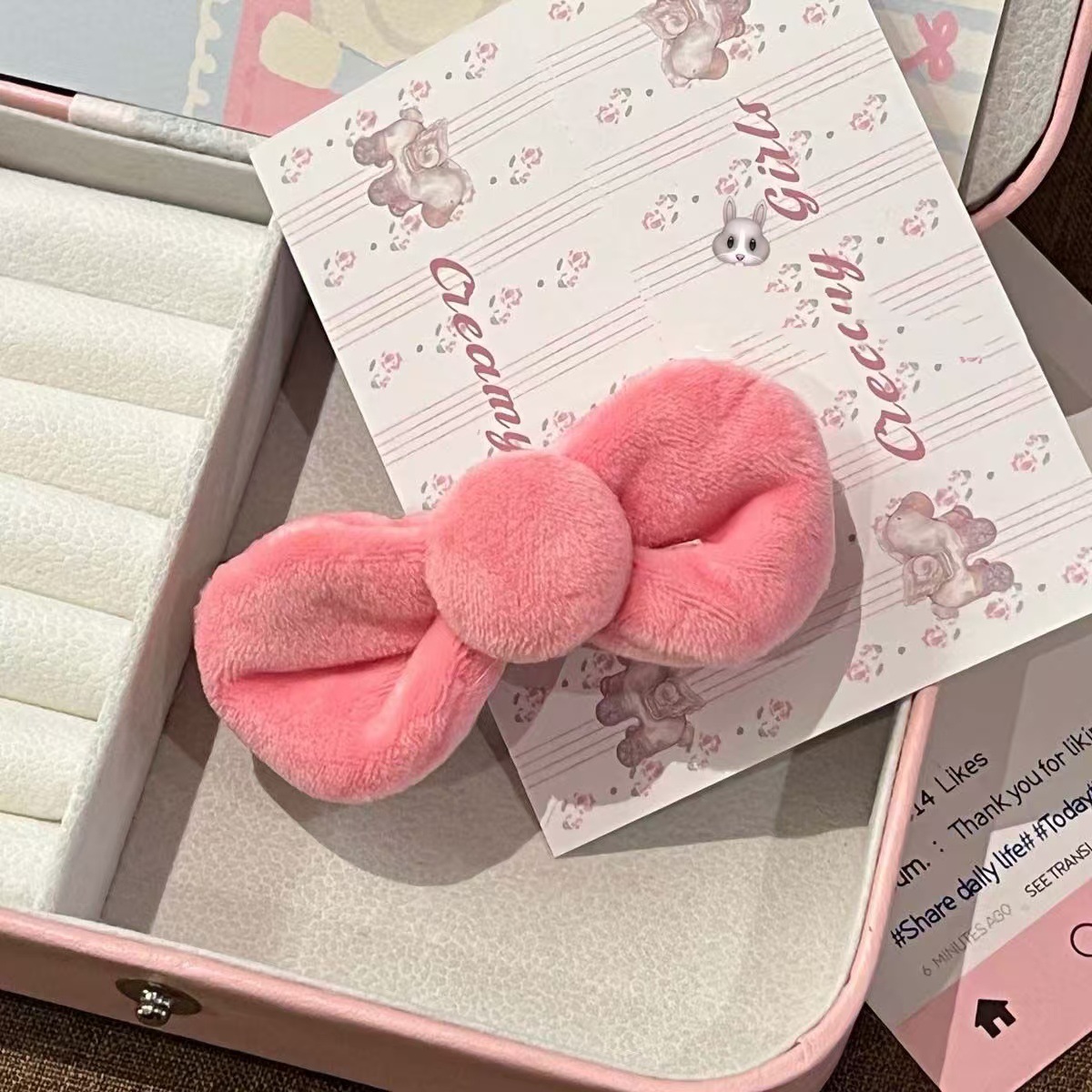 • 5970 인형 스펀지 클립 - 벨벳 핑크 리본 고양이