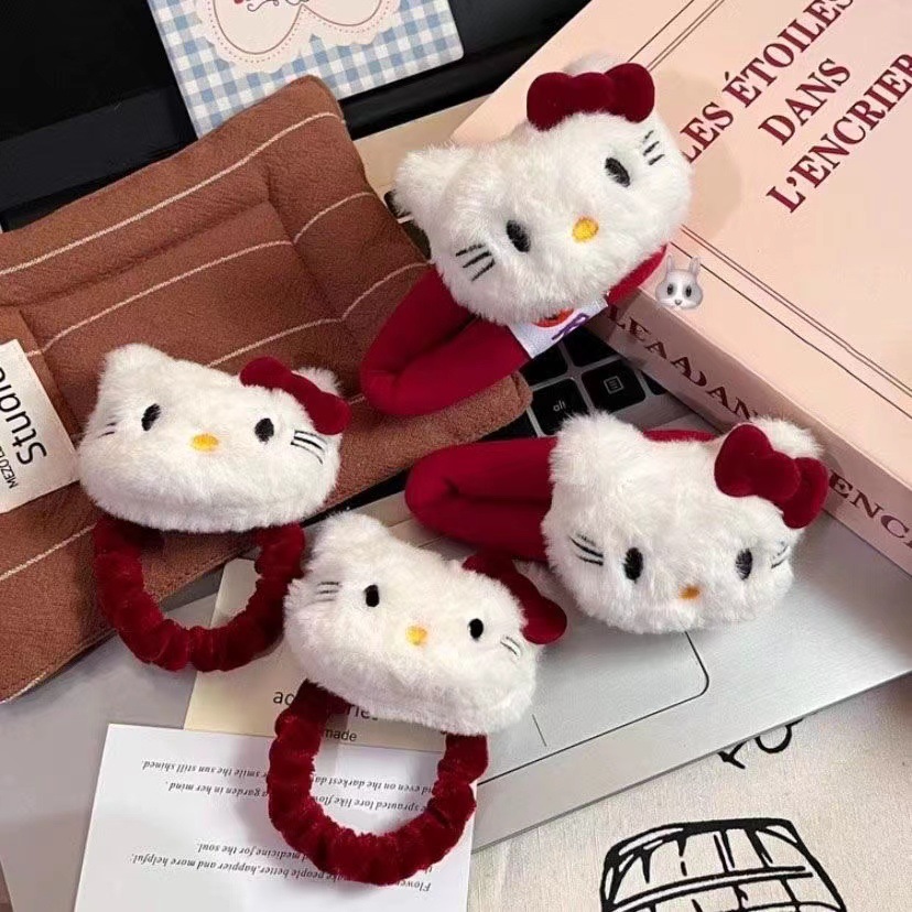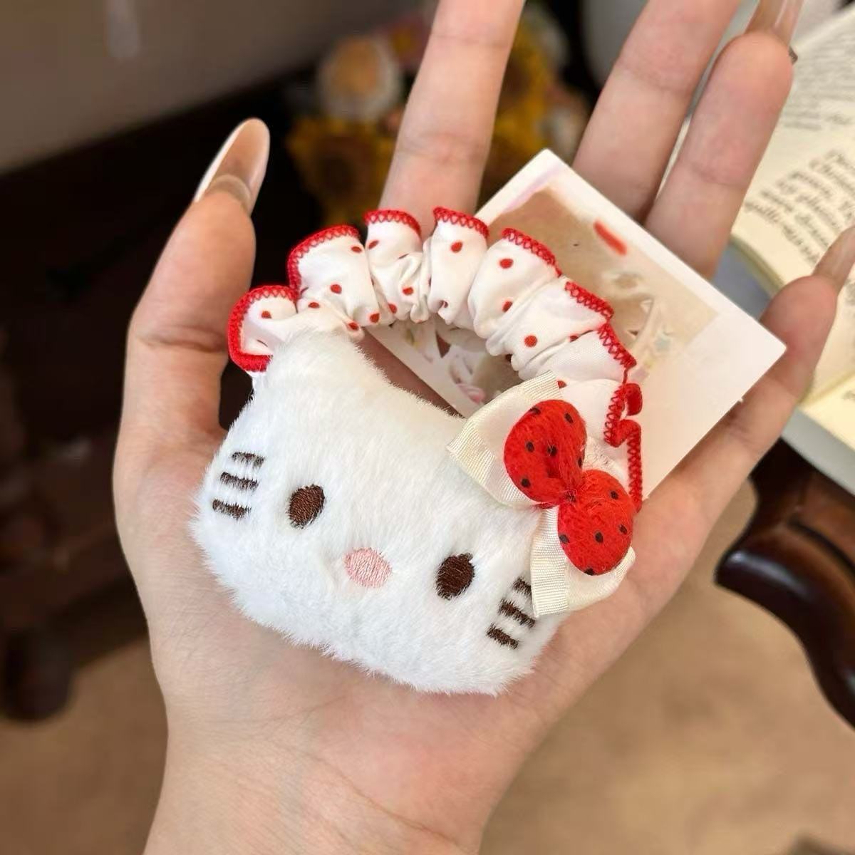 • 7090 화이트 스노우 레드 도트 머리끈 - 고양이