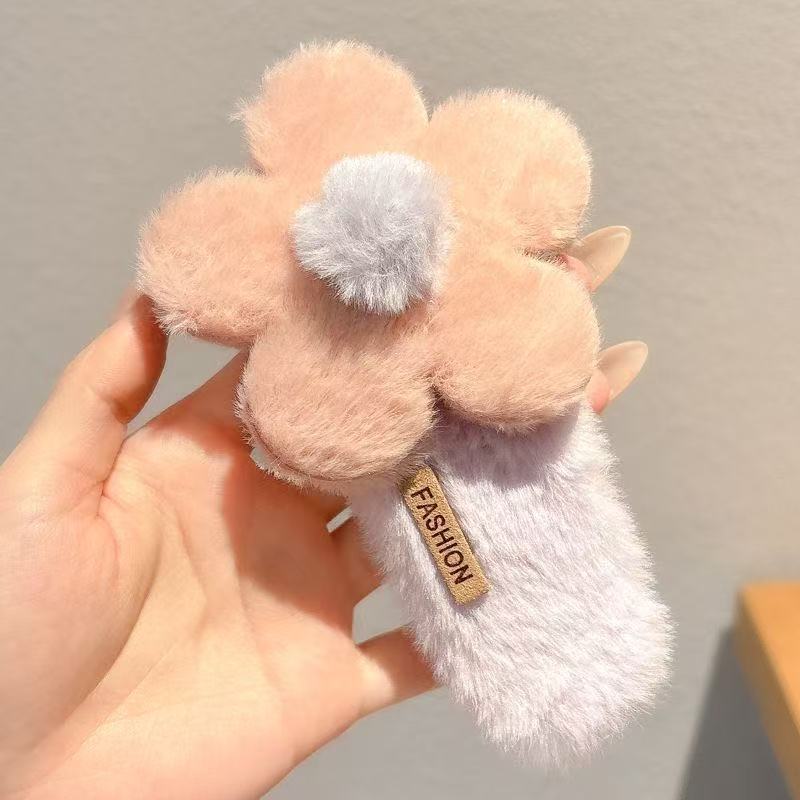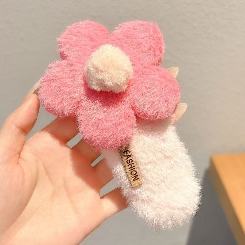 • 7148 플러시 플라워 덕 클립 라이트 핑크 플라워
