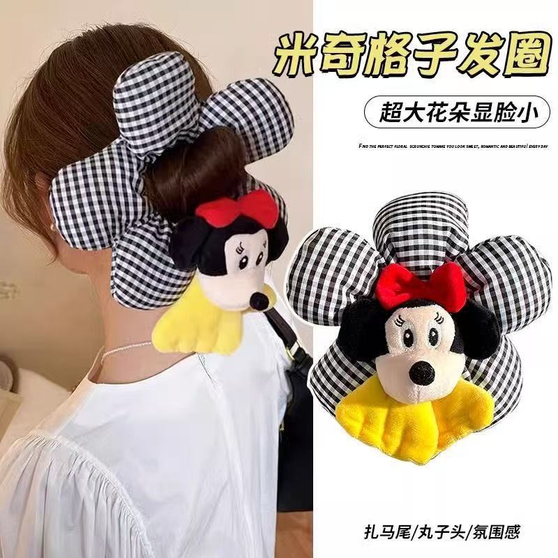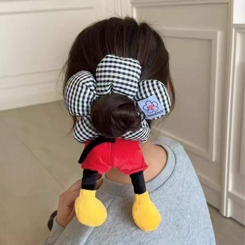 • 5739 체크무늬 미키 엉덩이 머리끈 - 블랙 체크