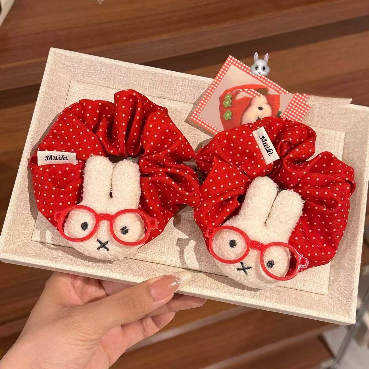 • 5969 고대 안경 머리끈 - 빨간 물방울 토끼