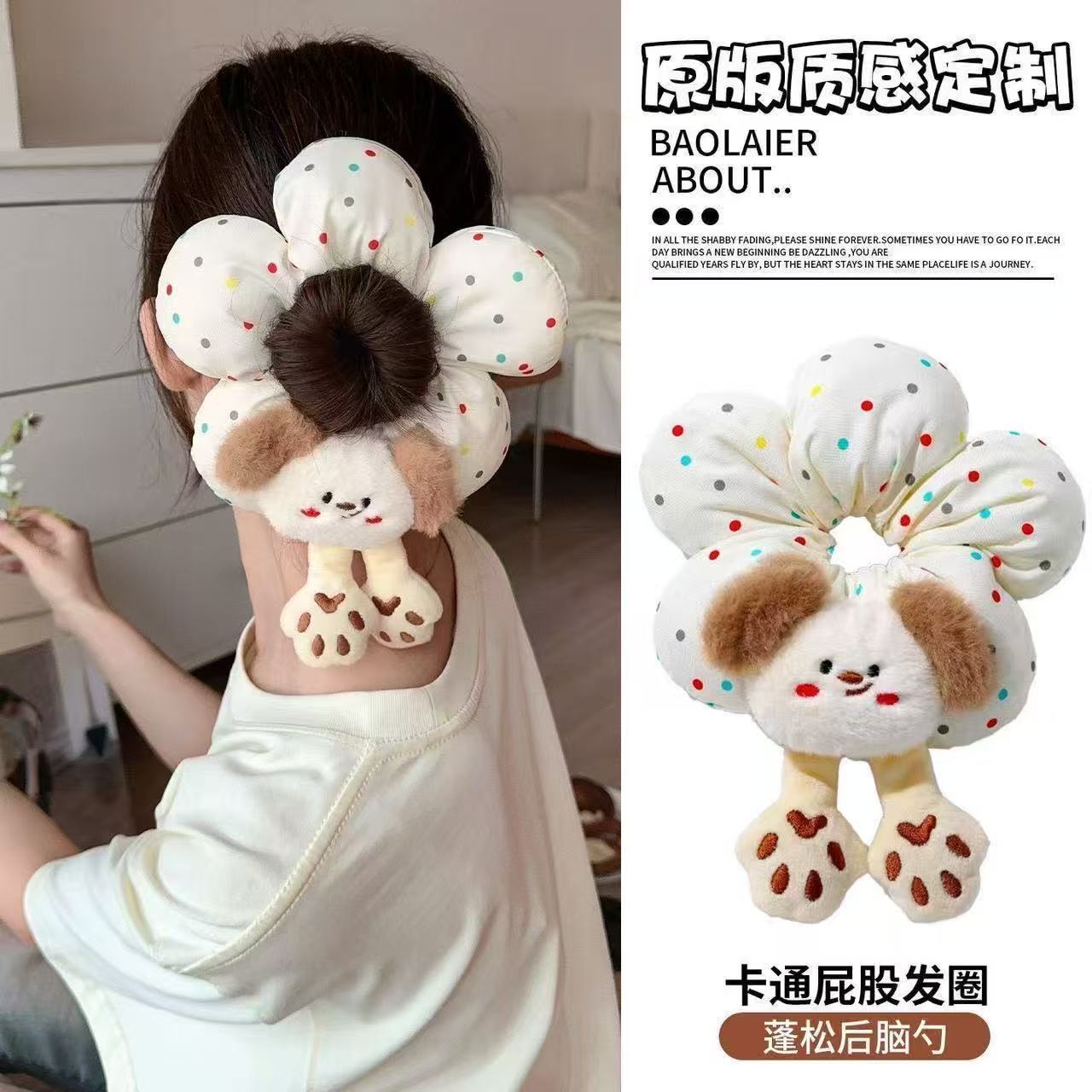 • 7056 카툰 꽃 엉덩이 머리끈 - 컬러 도트 강아지