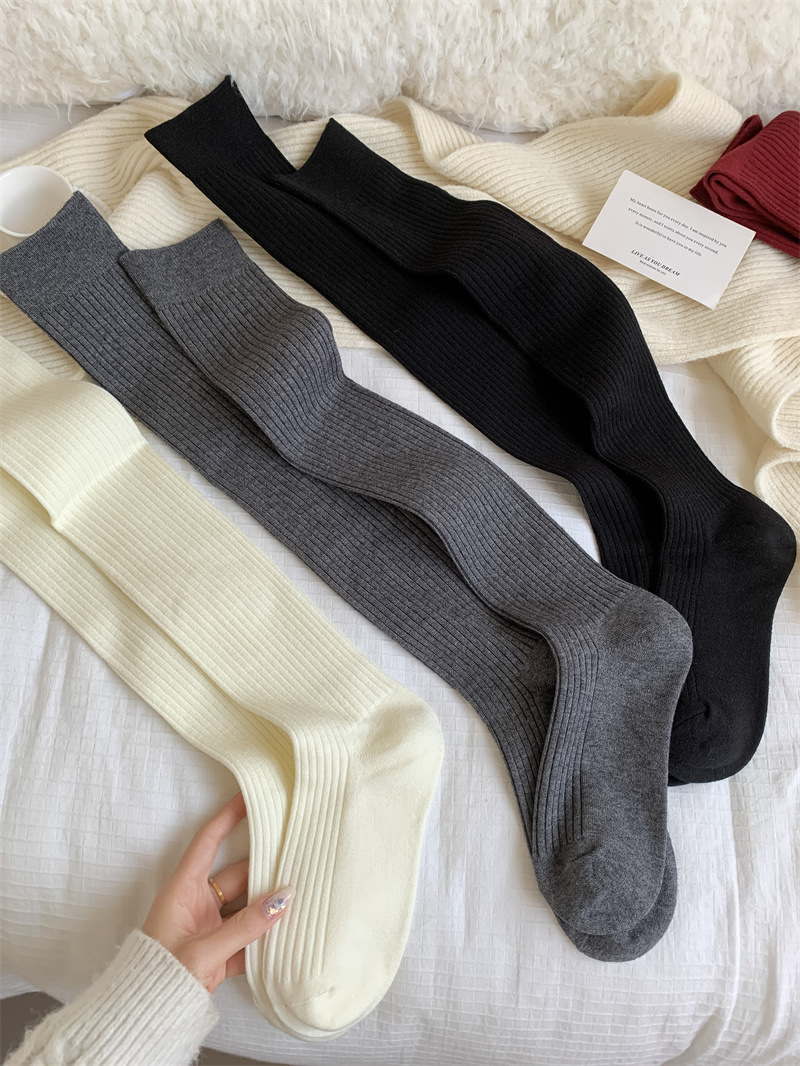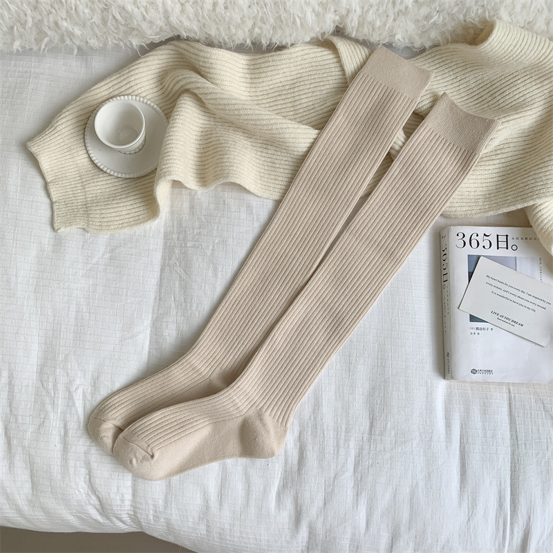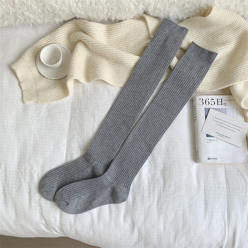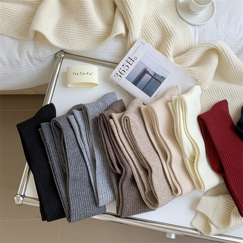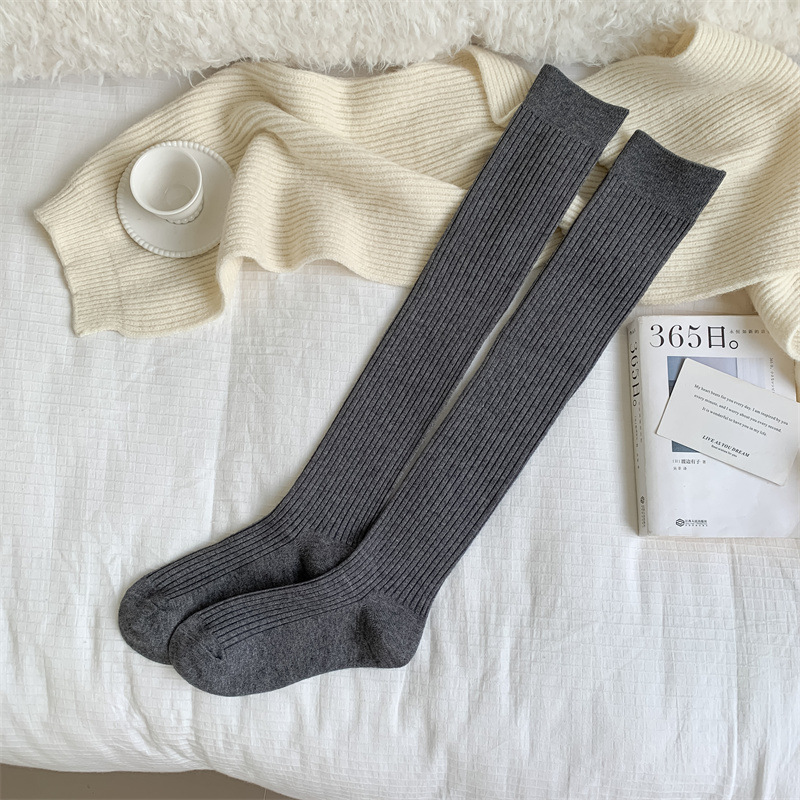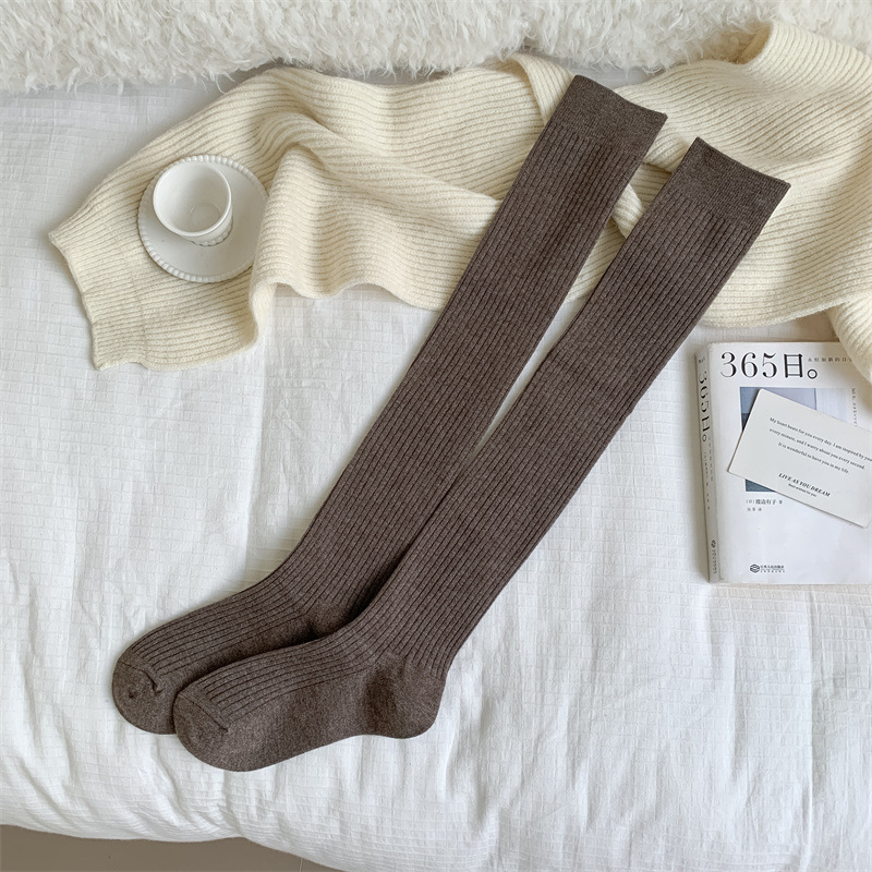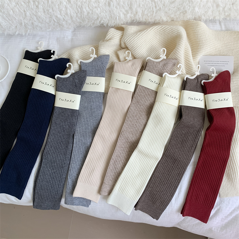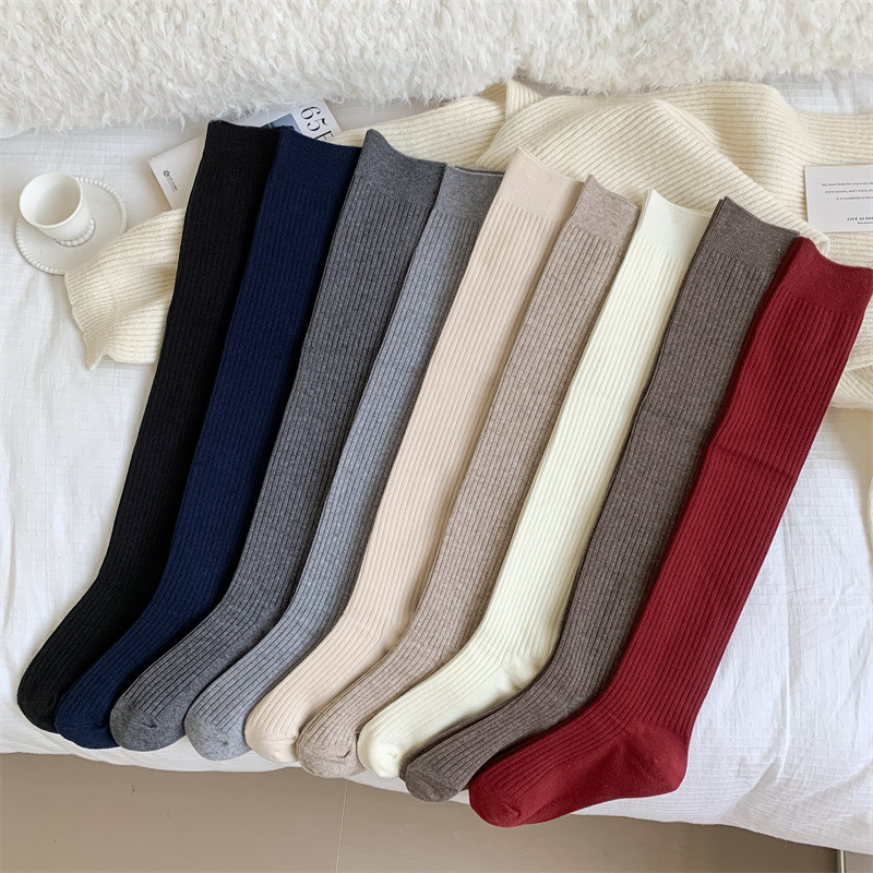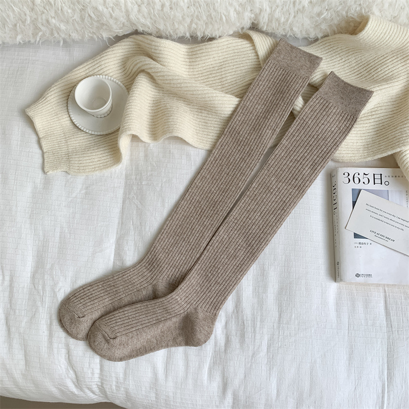 가을과 겨울 양모 오버 더 무릎 양말 여성용 더블 바늘 솔리드 컬러 수직 스트라이프 따뜻한 긴 배럴 스택 양말 Maillard 슬림 룩 스타킹스토어 가기