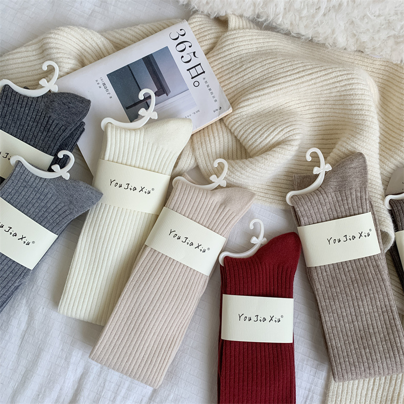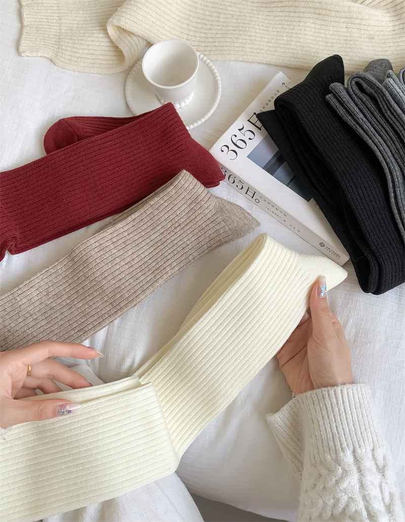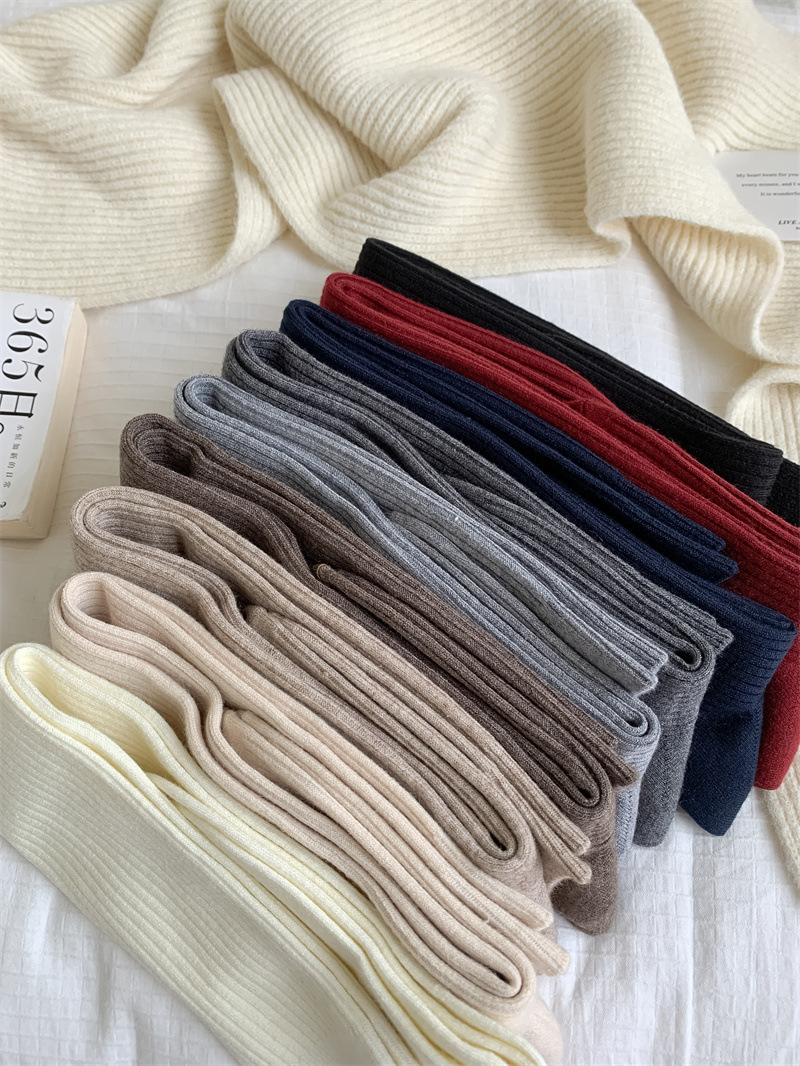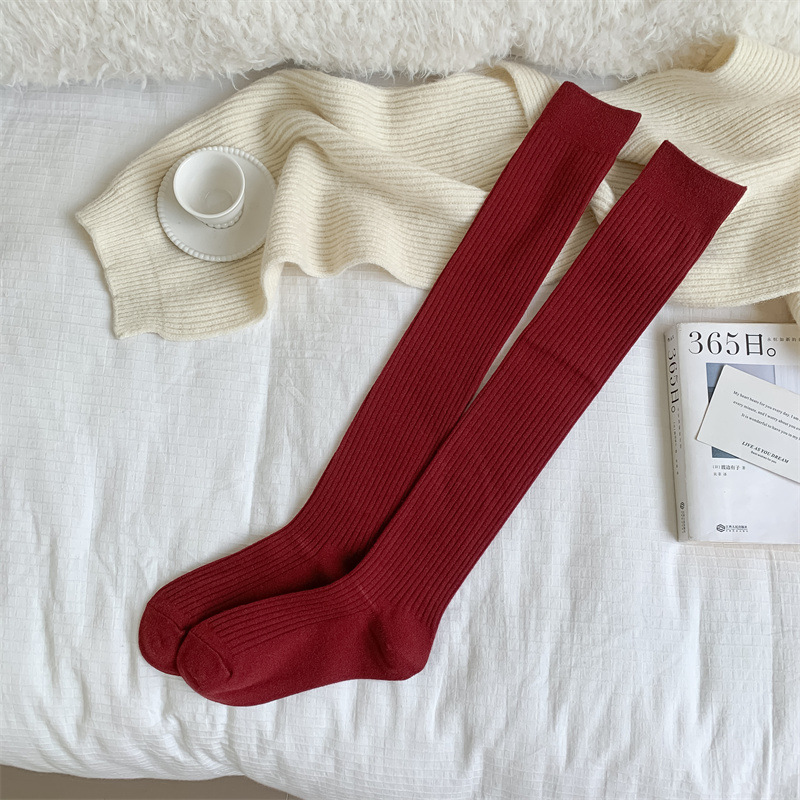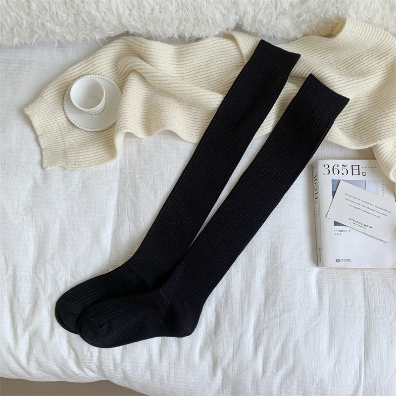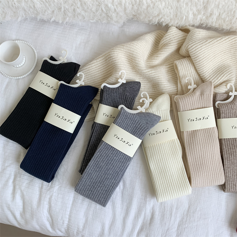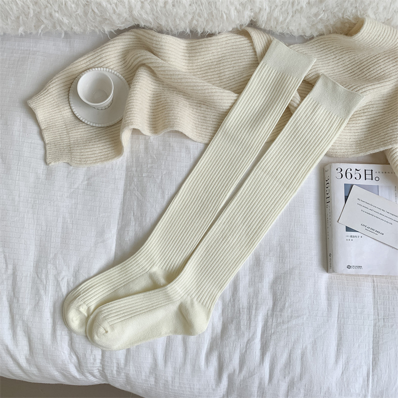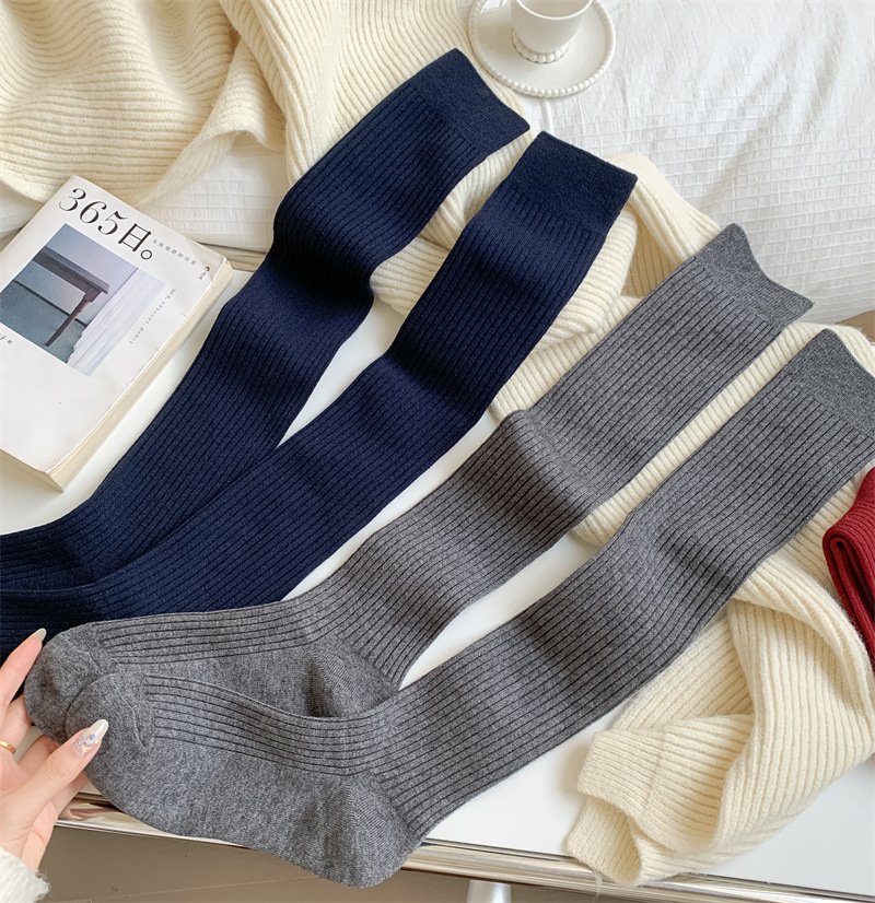 가을과 겨울 양모 오버 더 무릎 양말 여성용 더블 바늘 솔리드 컬러 수직 스트라이프 따뜻한 긴 배럴 스택 양말 Maillard 슬림 룩 스타킹스토어 가기