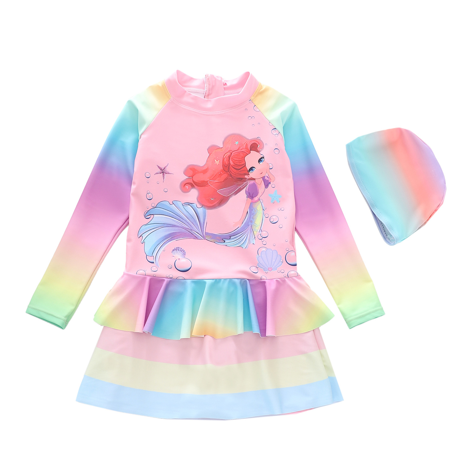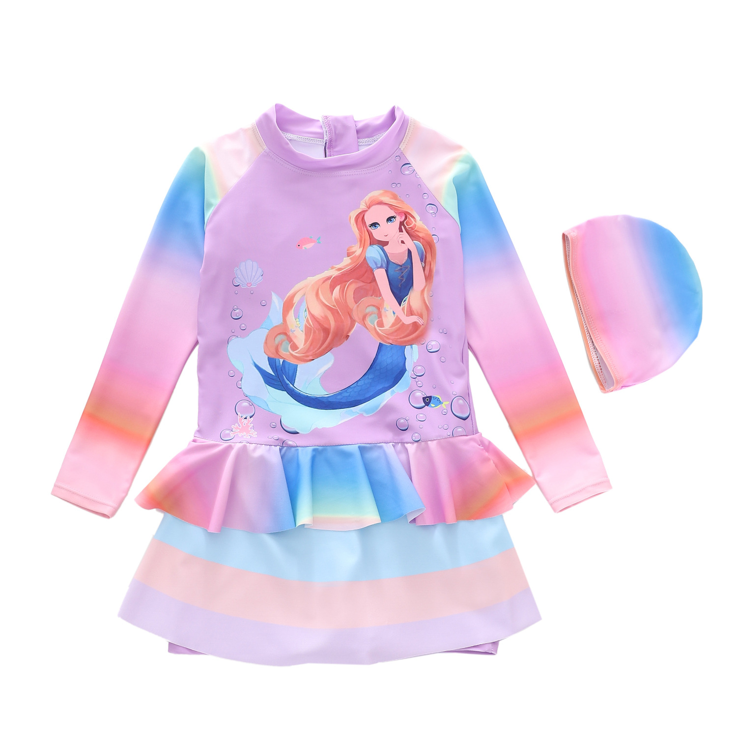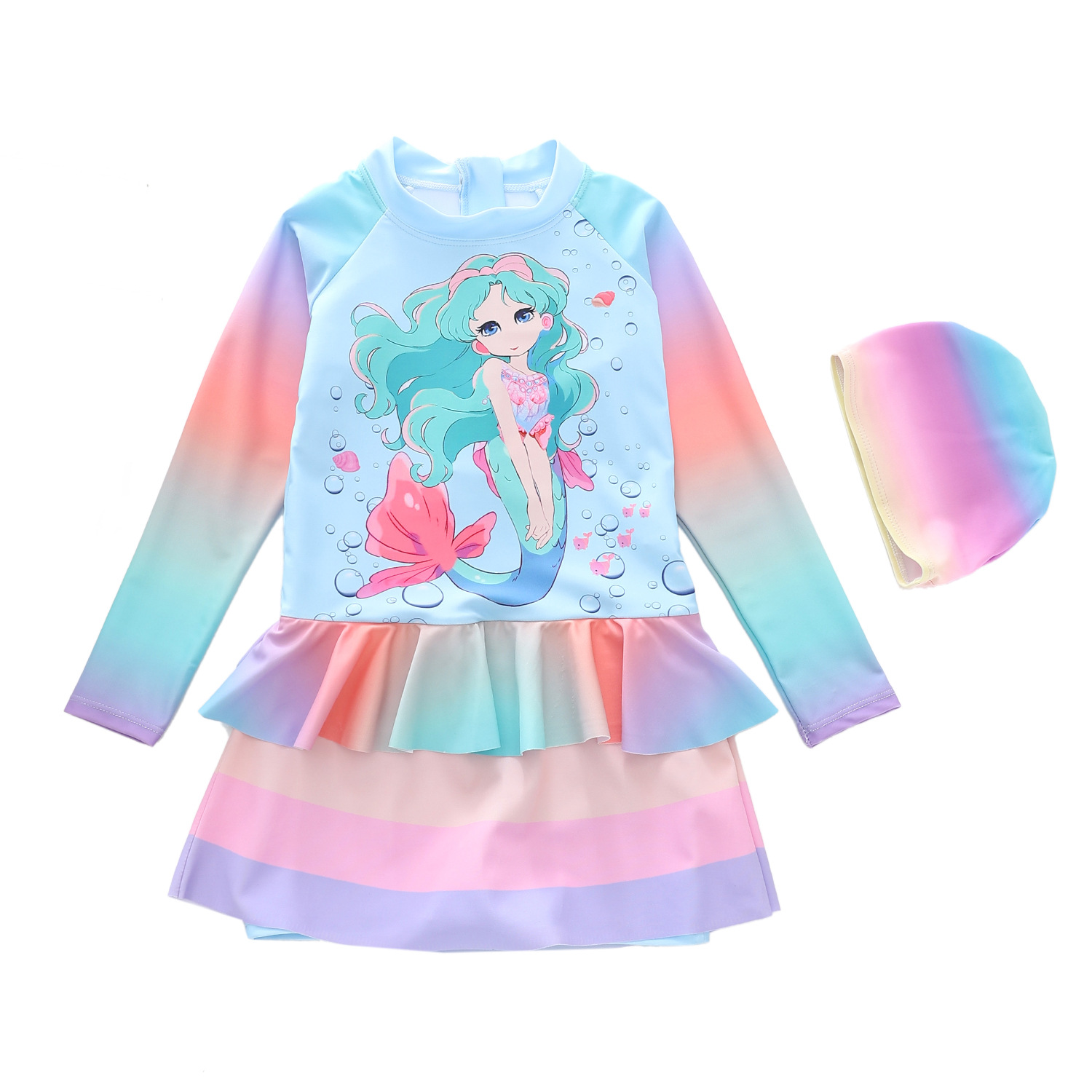2024 새로운 어린이 수영복 여자 수영복 한국 소녀 아기 학생 유행 3 색 원피스 수영복