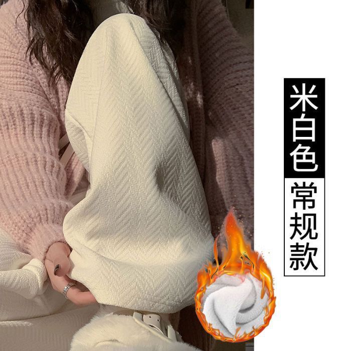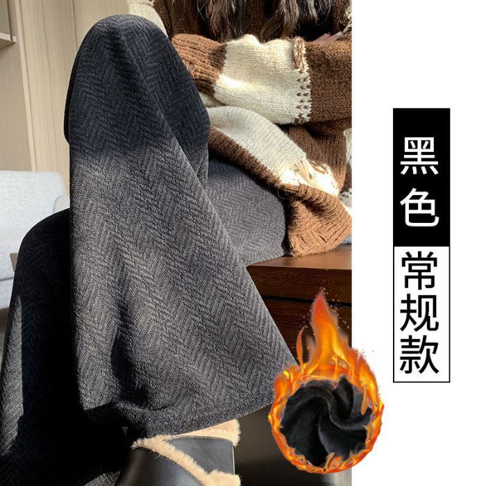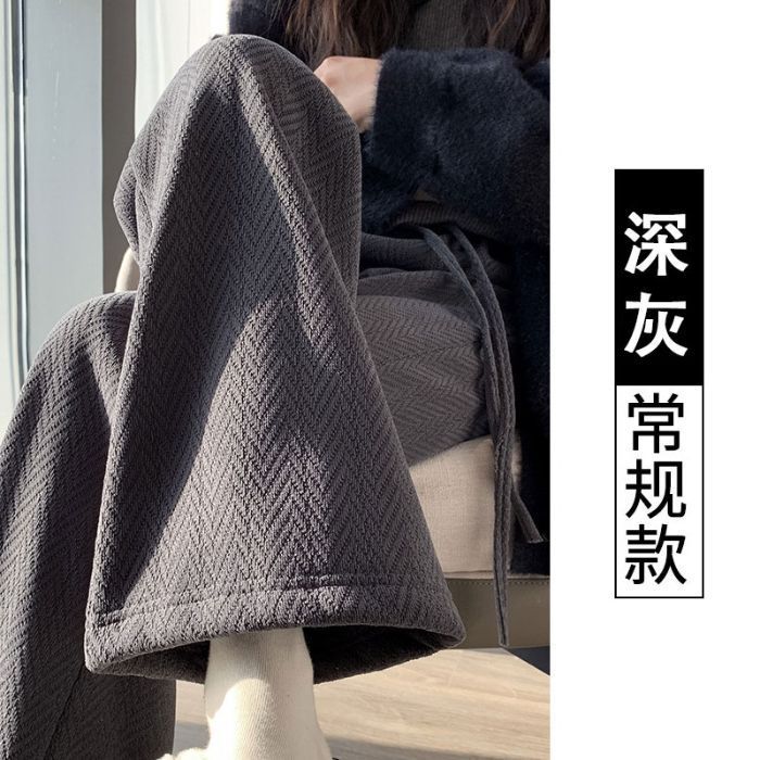 Chenille 바지 여성의 가을과 겨울 넓은 다리 새로운 도착 기모 느슨한 높은 허리 직선 캐주얼 헤링본 바지스토어 가기