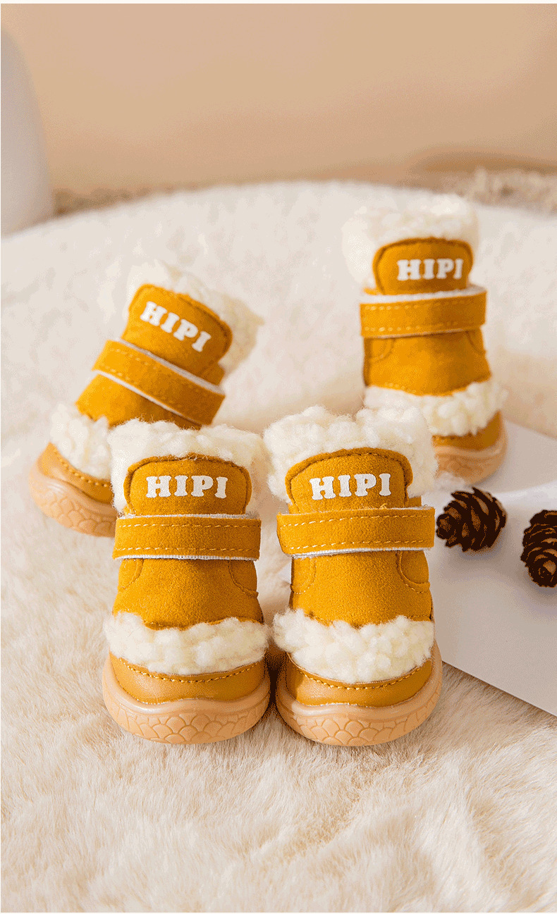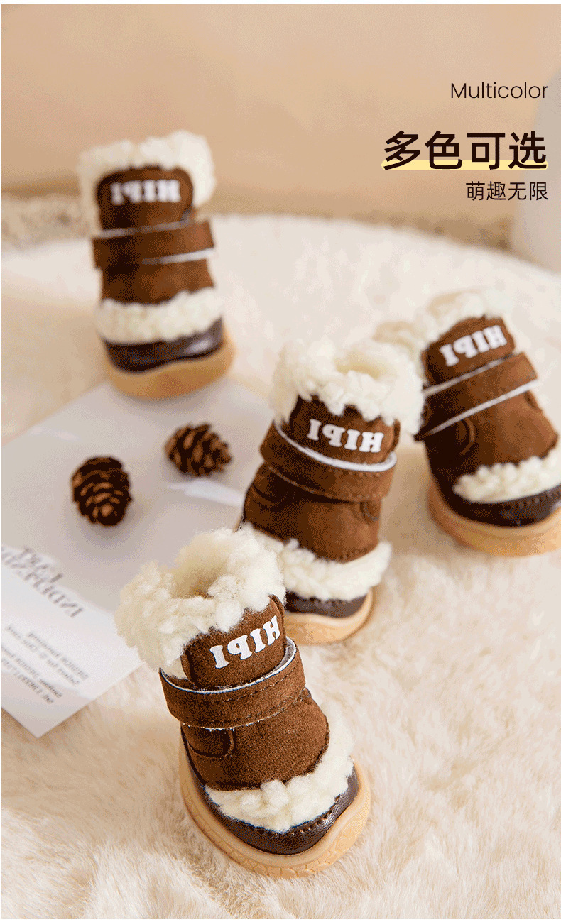 가을과 겨울 양가죽 개 신발 겨울 밖으로 면화 신발 작은 개 개 발 커버 따뜻한 신발 커버 미끄럼 방지 신발스토어 가기