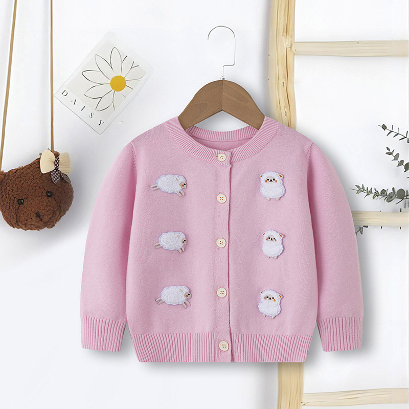 여자 스웨터 카디건 2024 아기 소녀를위한 새로운 어린이 봄과 가을 탑 면 얇은 니트 자켓