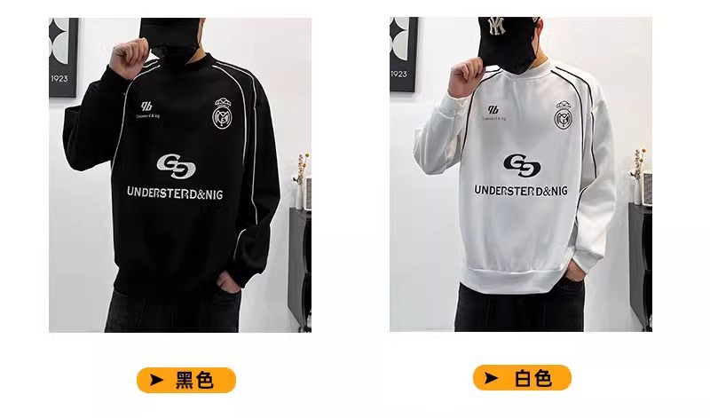 스웨트 셔츠 남자 2024 가을과 겨울 커플 미국식 하이 스트리트 강아지 잘 생긴 하이 엔드 센스 대비 무거운 느슨한 물집 코트스토어 가기