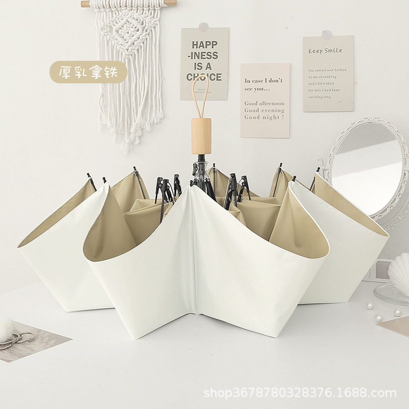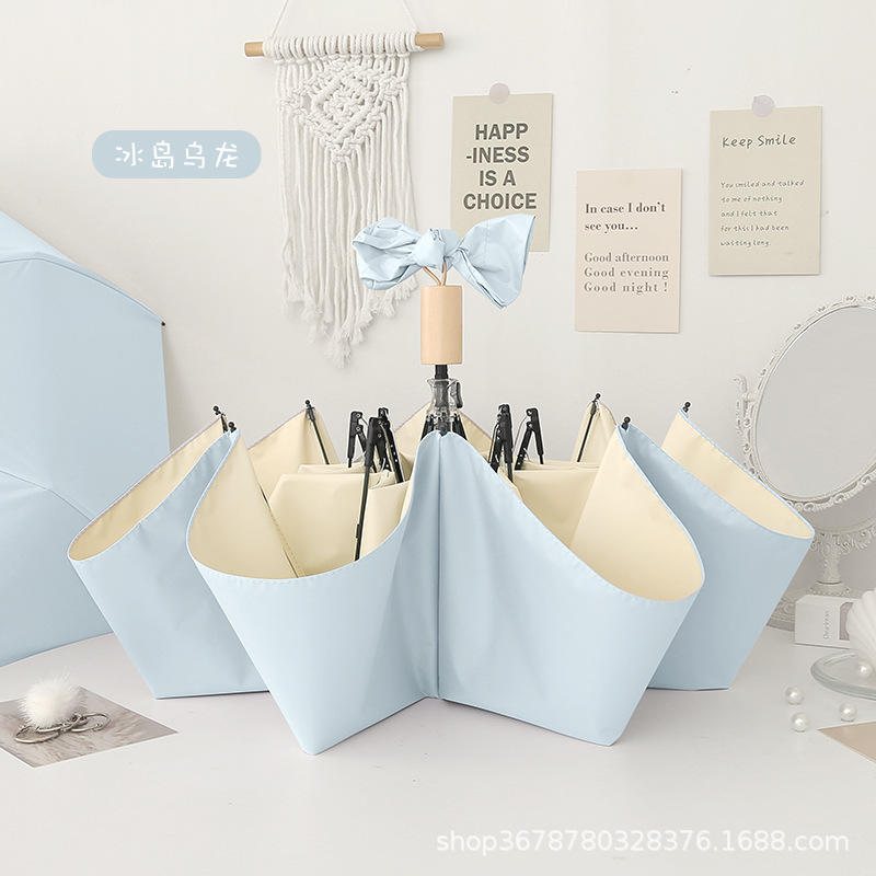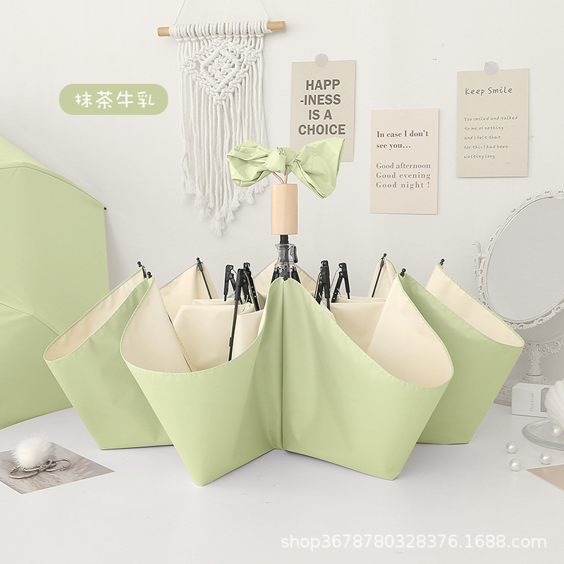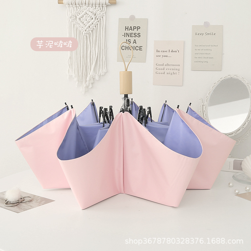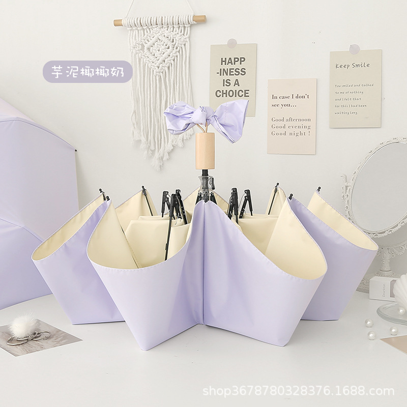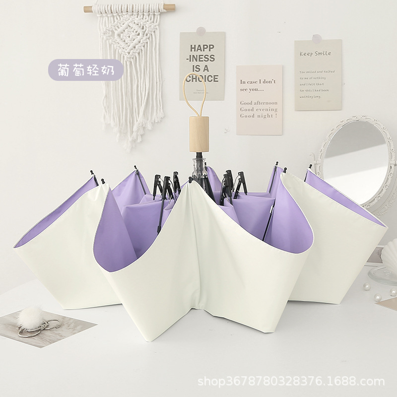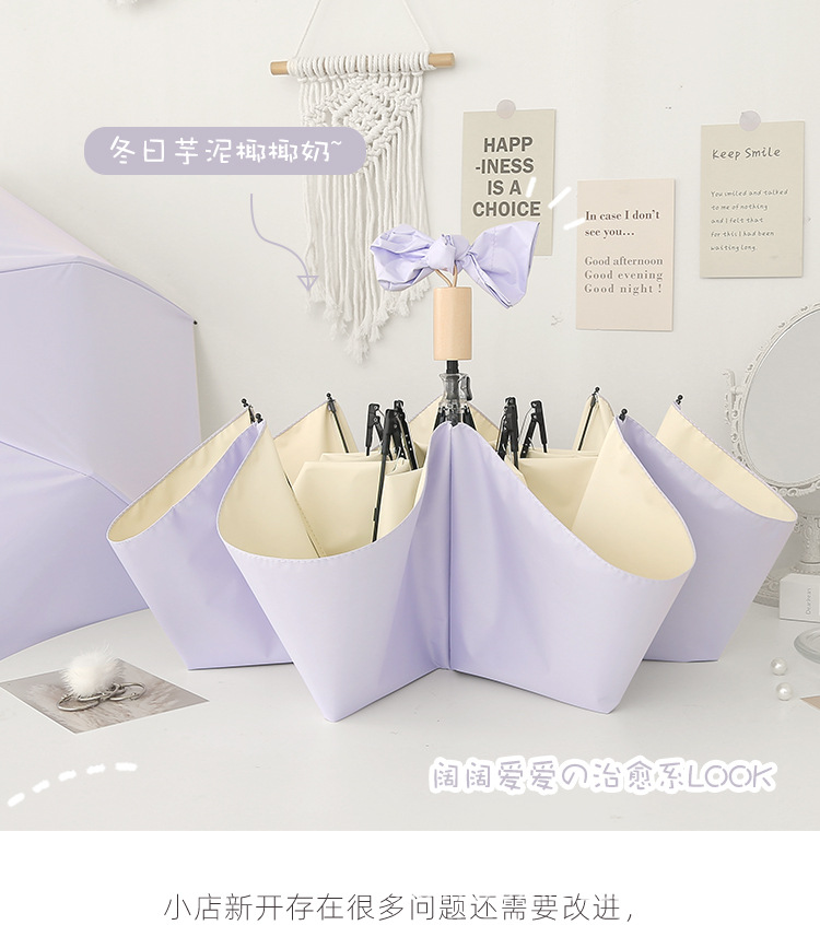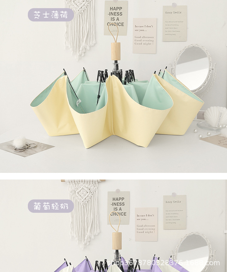 치유 치즈 우산 여성의 맑고 비오는 이중 사용 접는 Ins 바람 색 접착제 햇빛 태양 우산 선 스크린 UV 보호