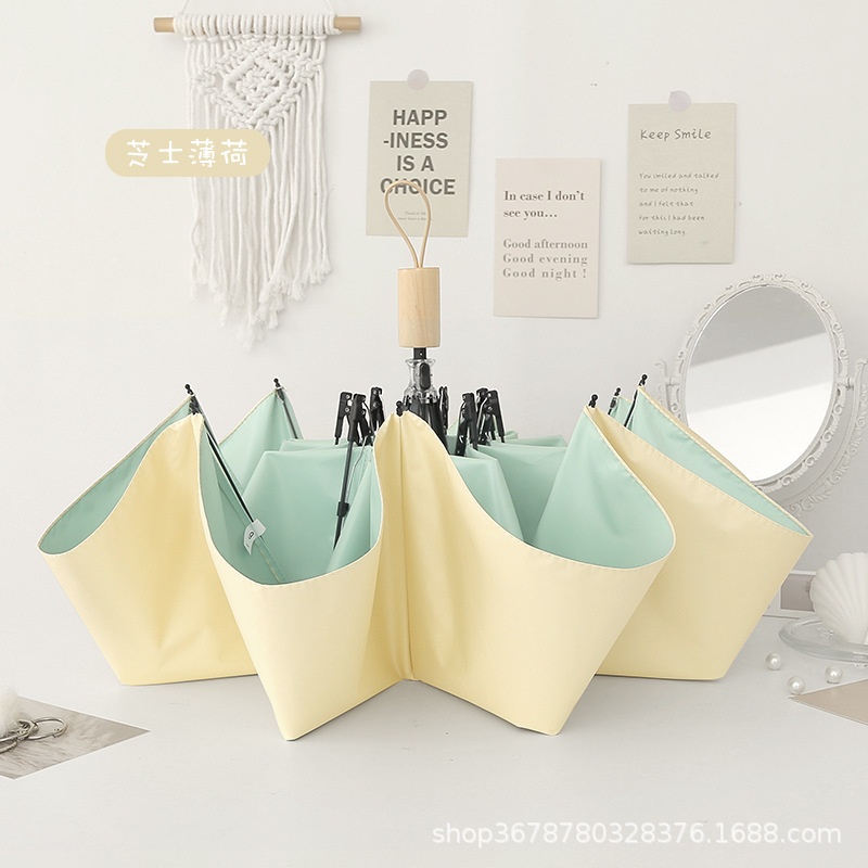 치유 치즈 우산 여성의 맑고 비오는 이중 사용 접는 Ins 바람 색 접착제 햇빛 태양 우산 선 스크린 UV 보호스토어 가기