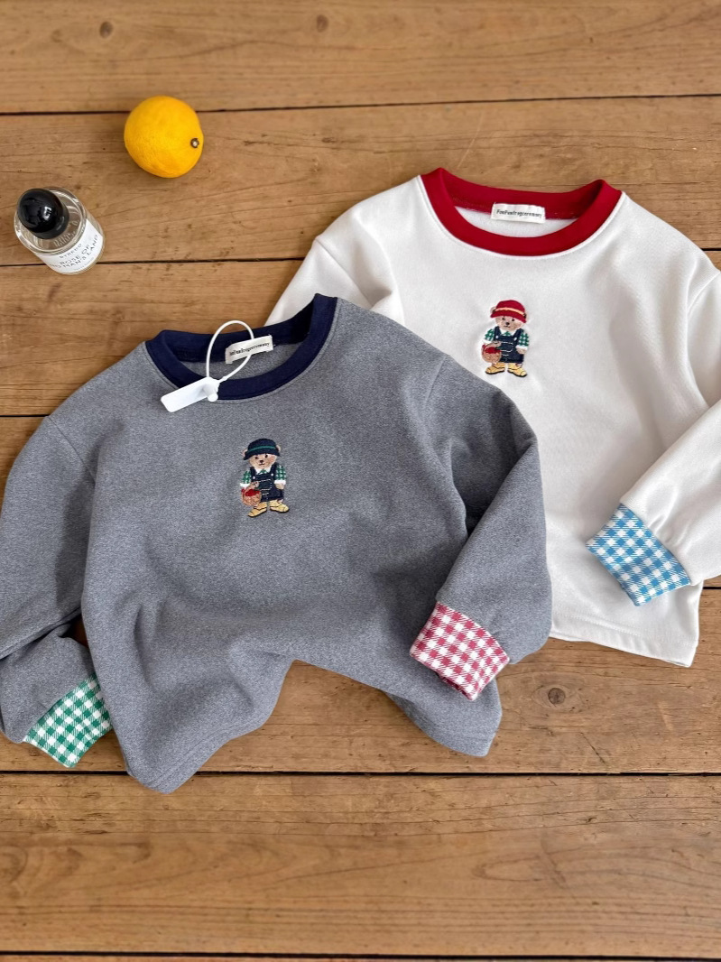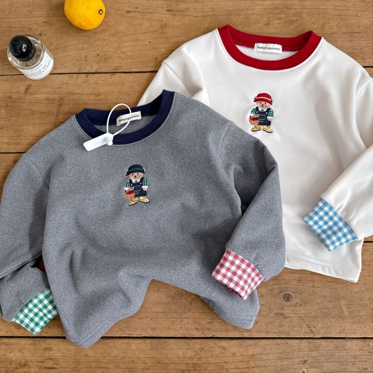 어린이 보토밍 셔츠 겨울 소년 두꺼운 자수 곰 유행 브랜드 긴팔 티셔츠 베이비 컬러 매칭 기모스토어 가기