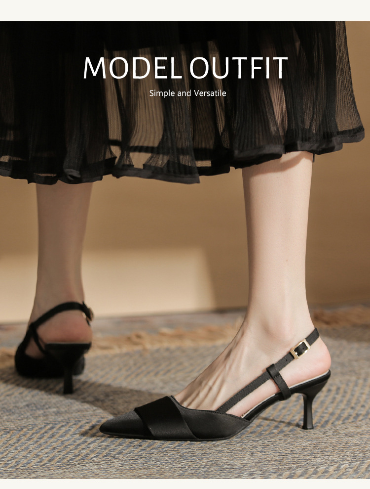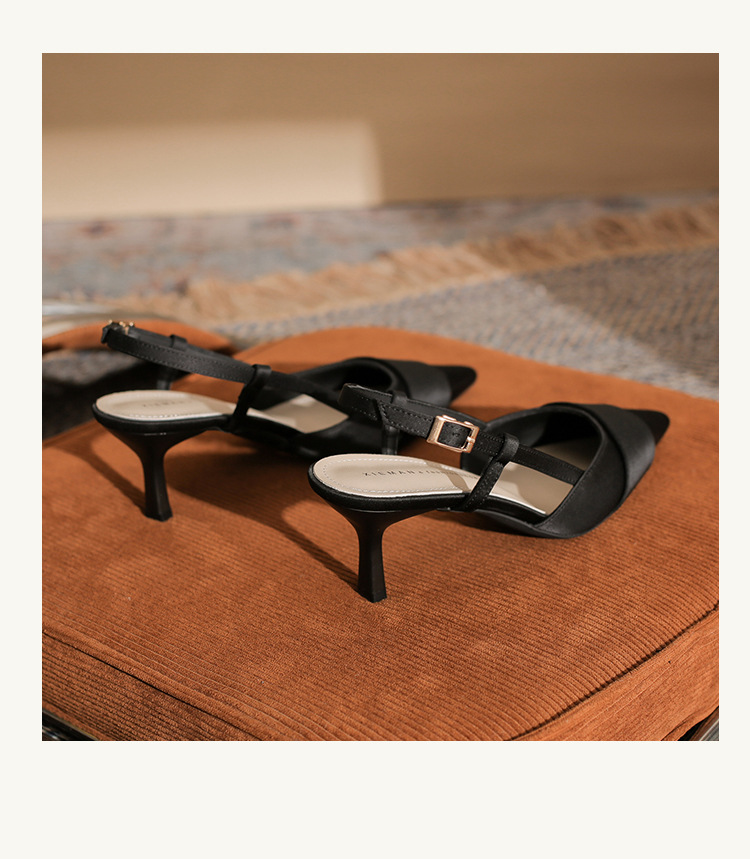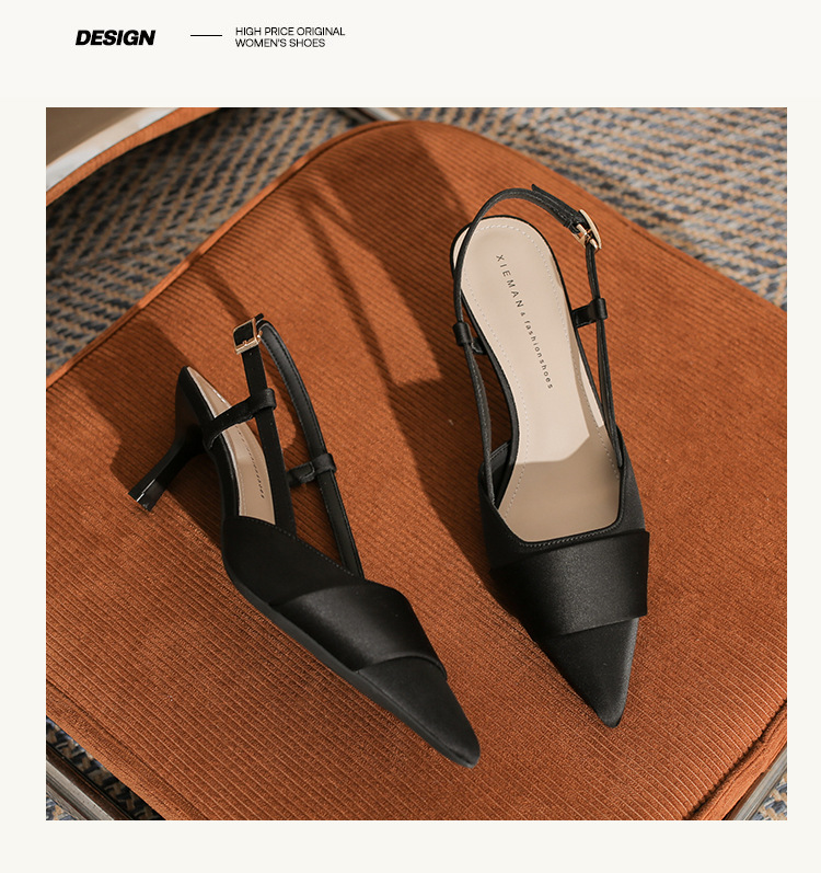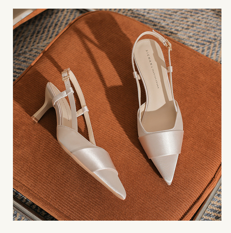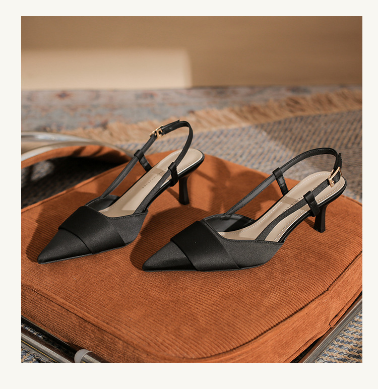 [펑통] 6708 소시알라이트 C 새틴 프랑스 연회화 원피스 신발 미세하게 굽은 발가락 바오터우 하이힐샌들