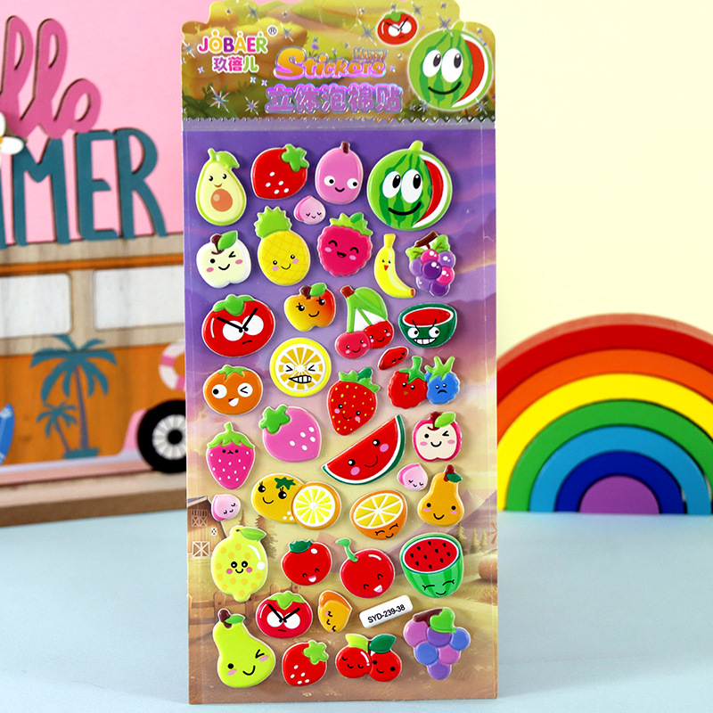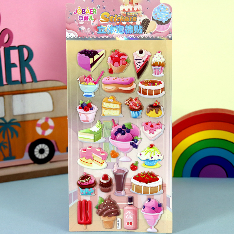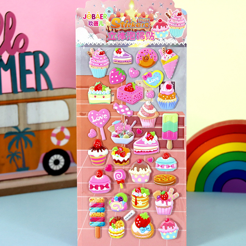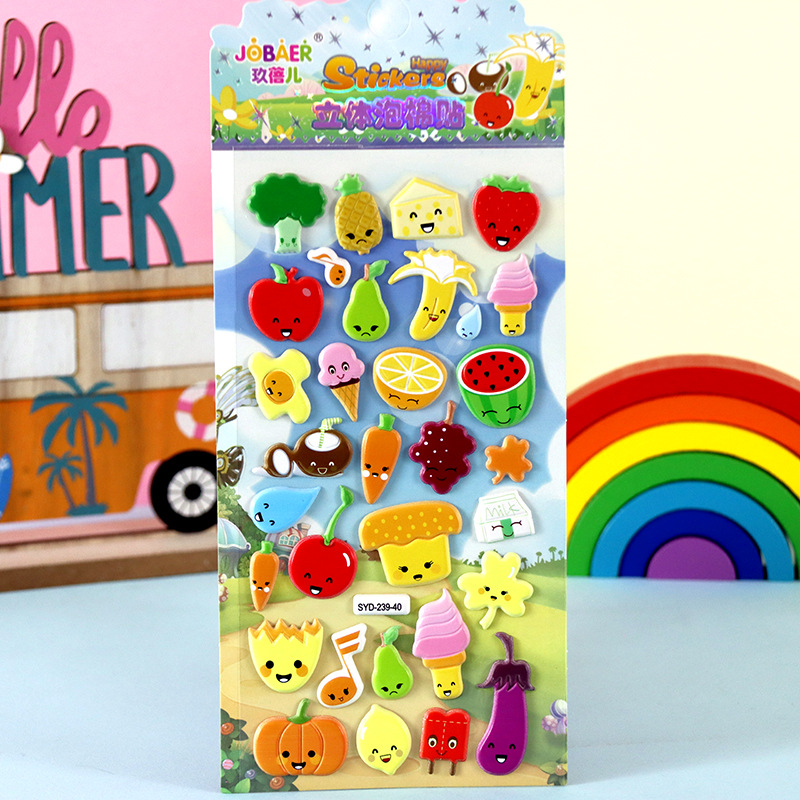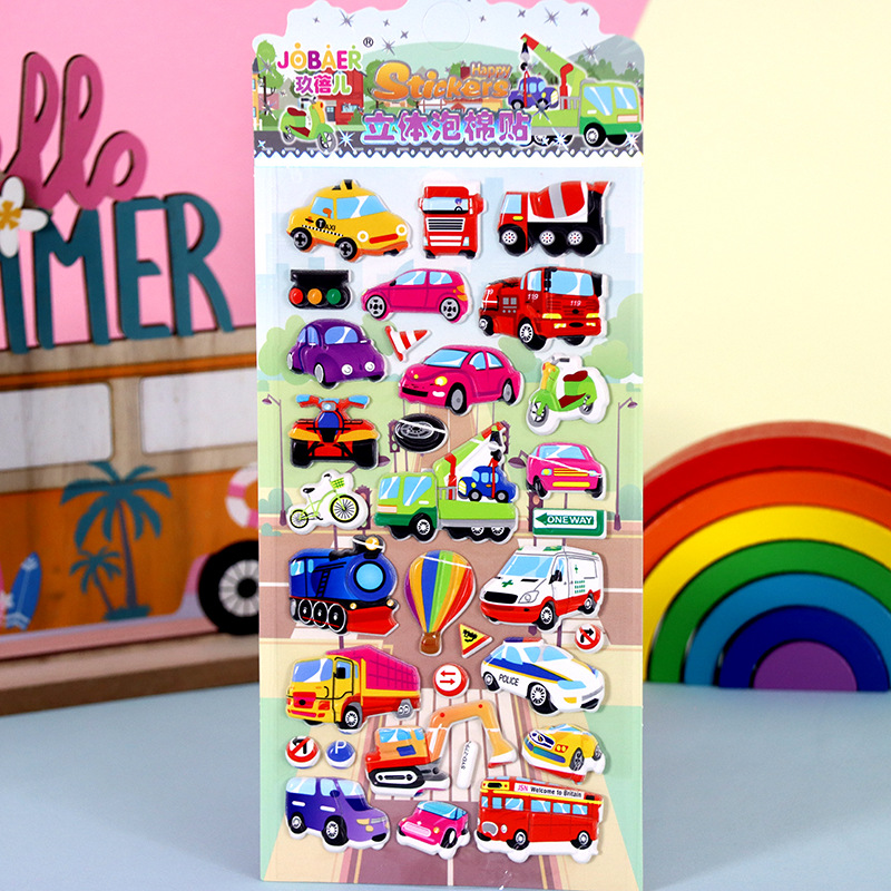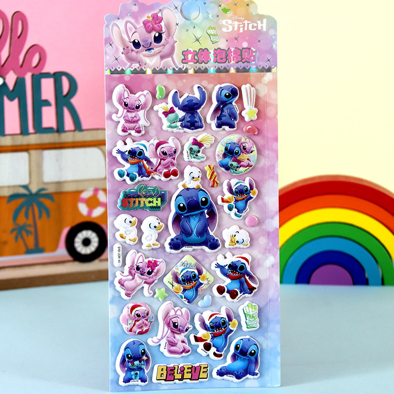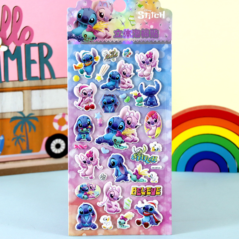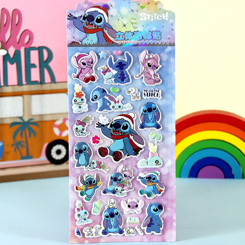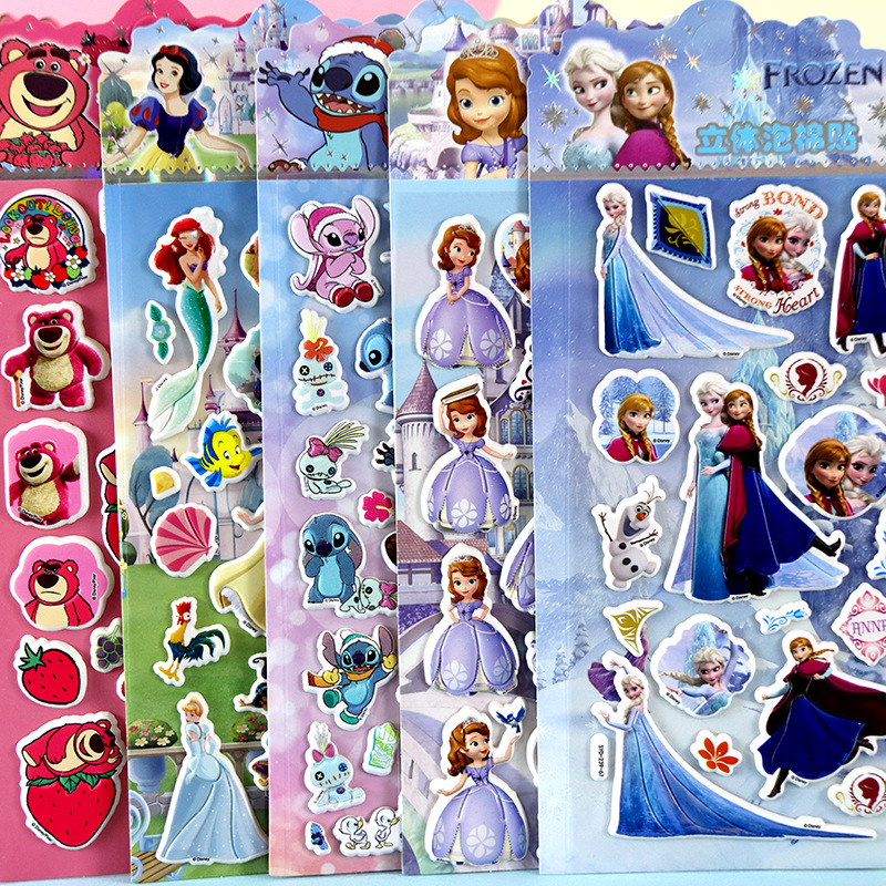 어린이 만화 스티커 얼음과 눈의 딸기곰 스티치 자동차 공룡 동물 3D 입체 버블 코튼 스티커