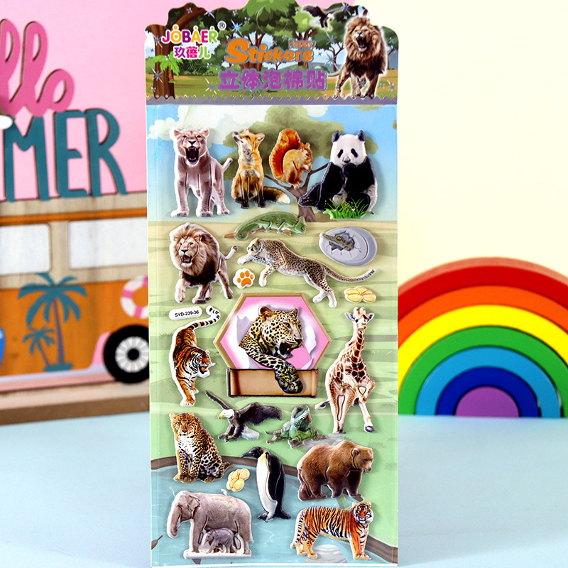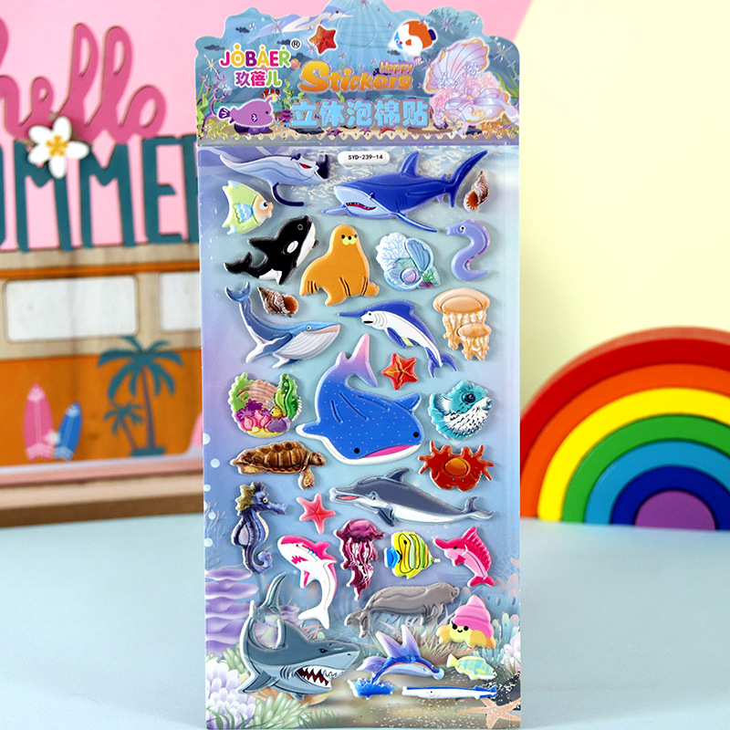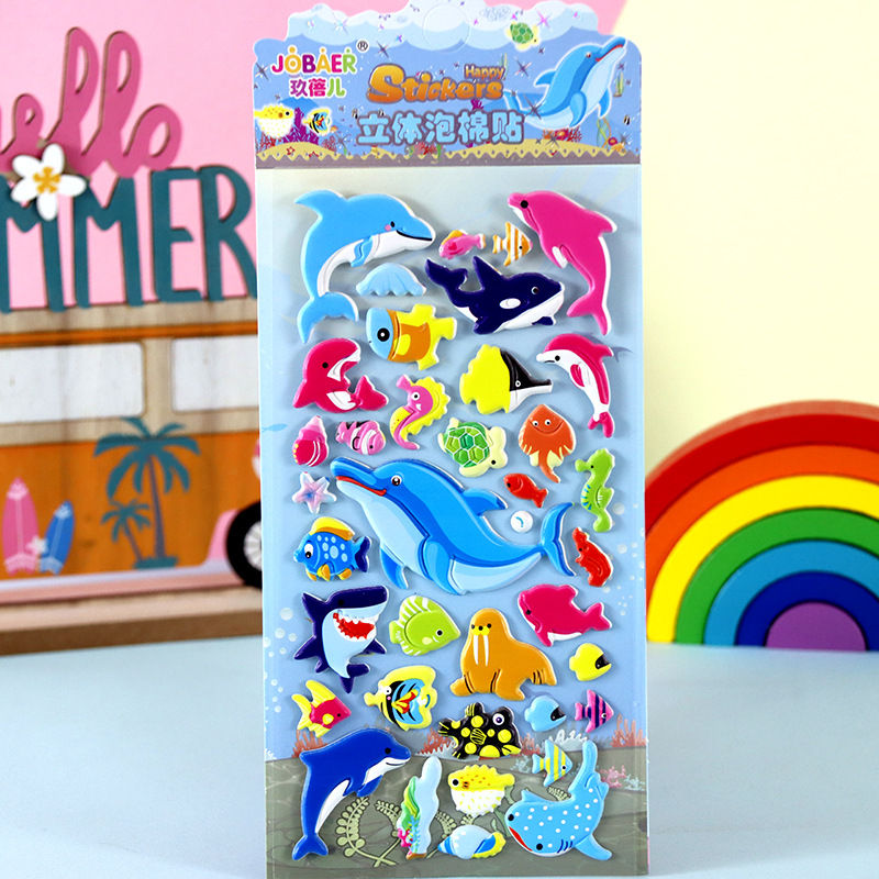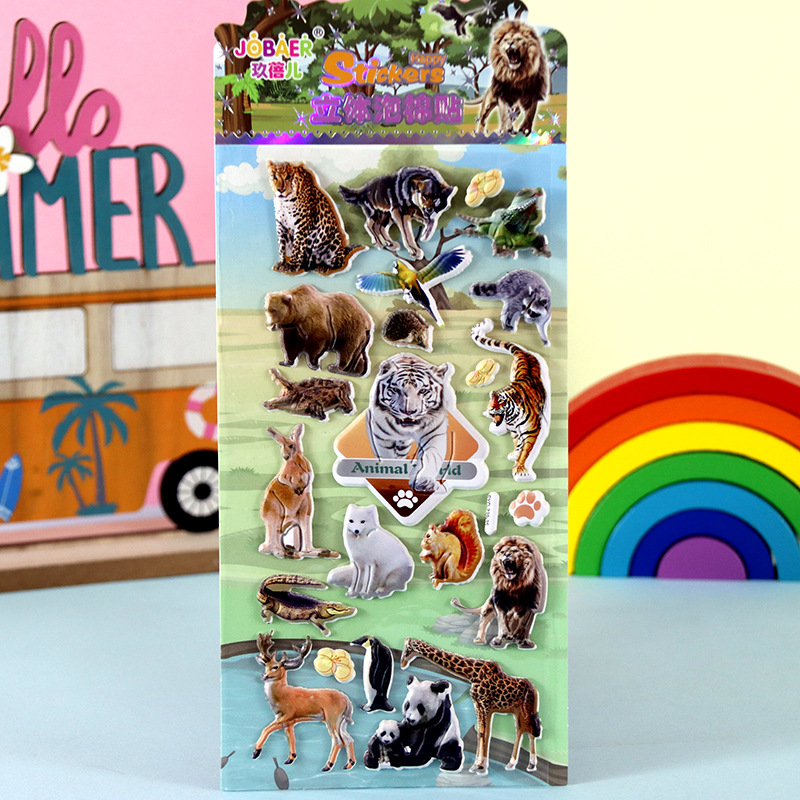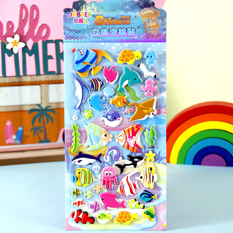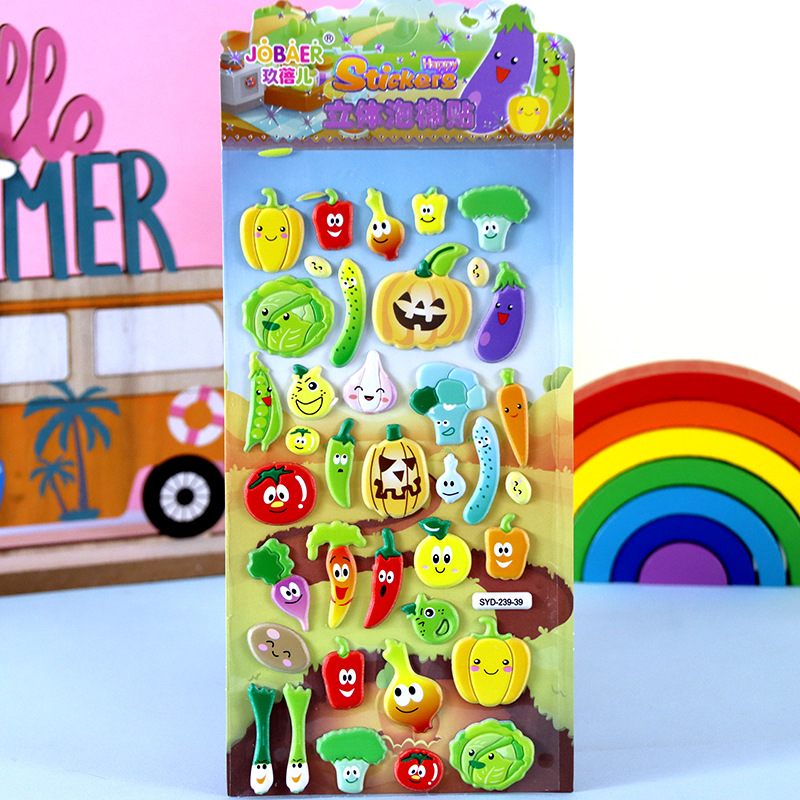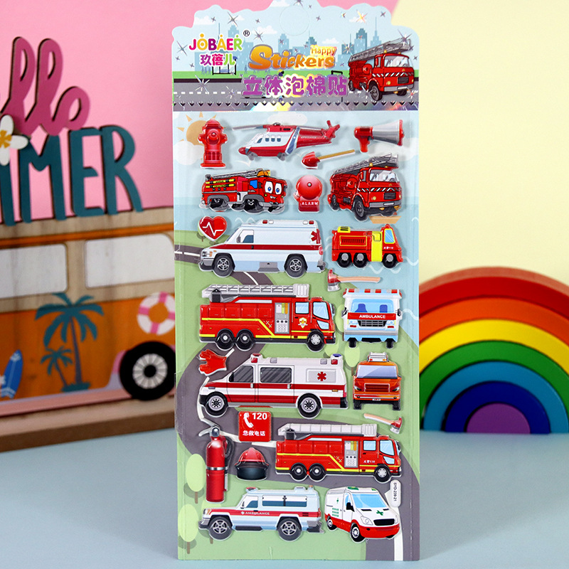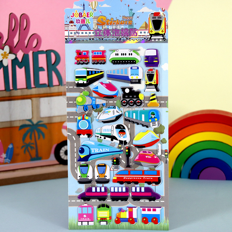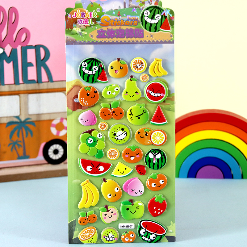 어린이 만화 스티커 얼음과 눈의 딸기곰 스티치 자동차 공룡 동물 3D 입체 버블 코튼 스티커