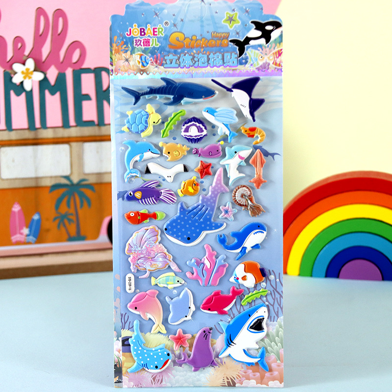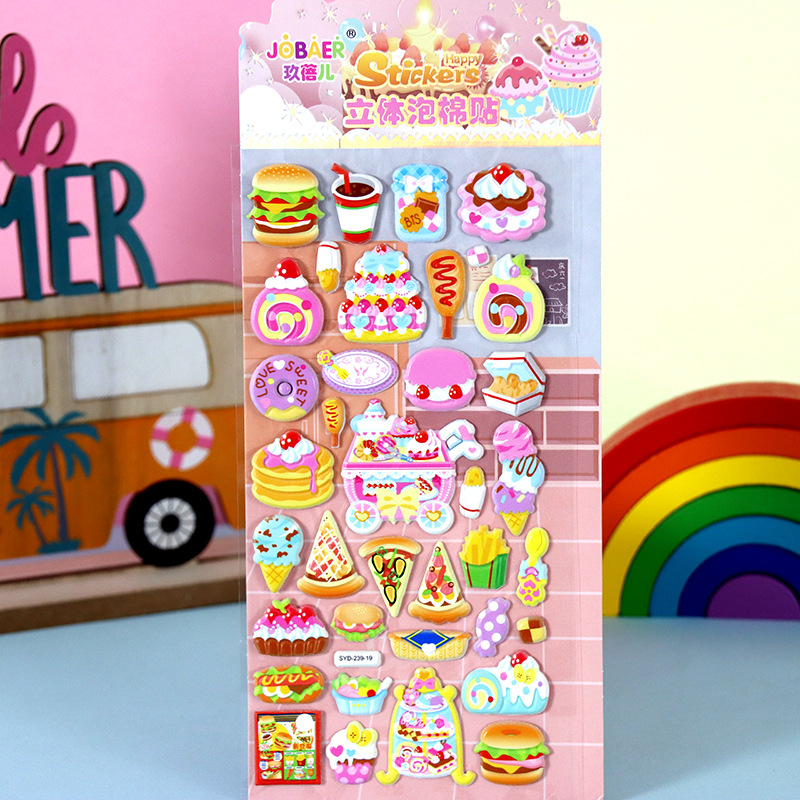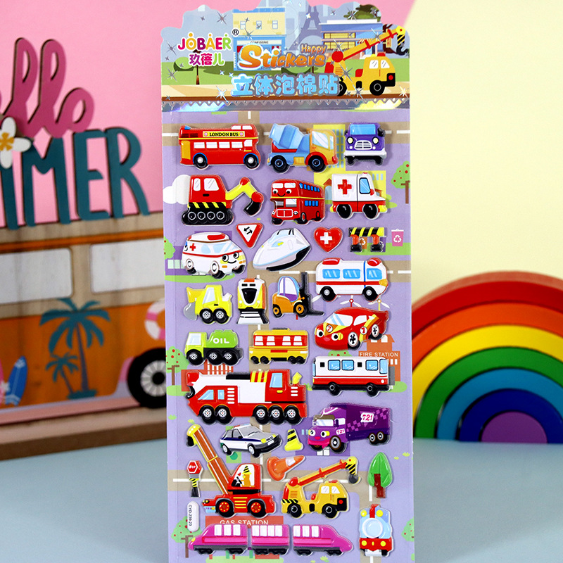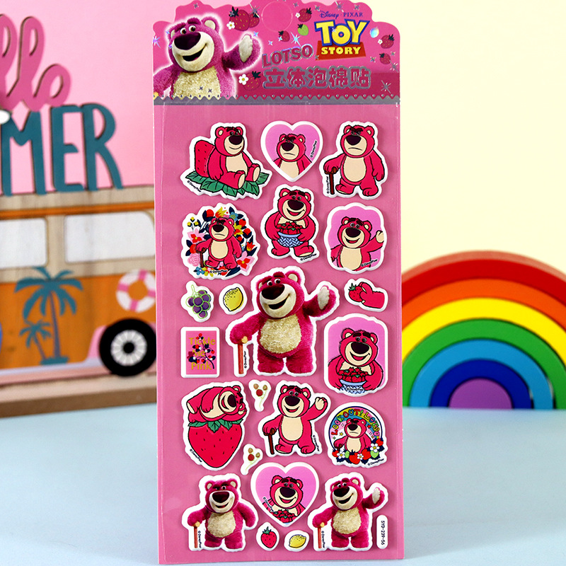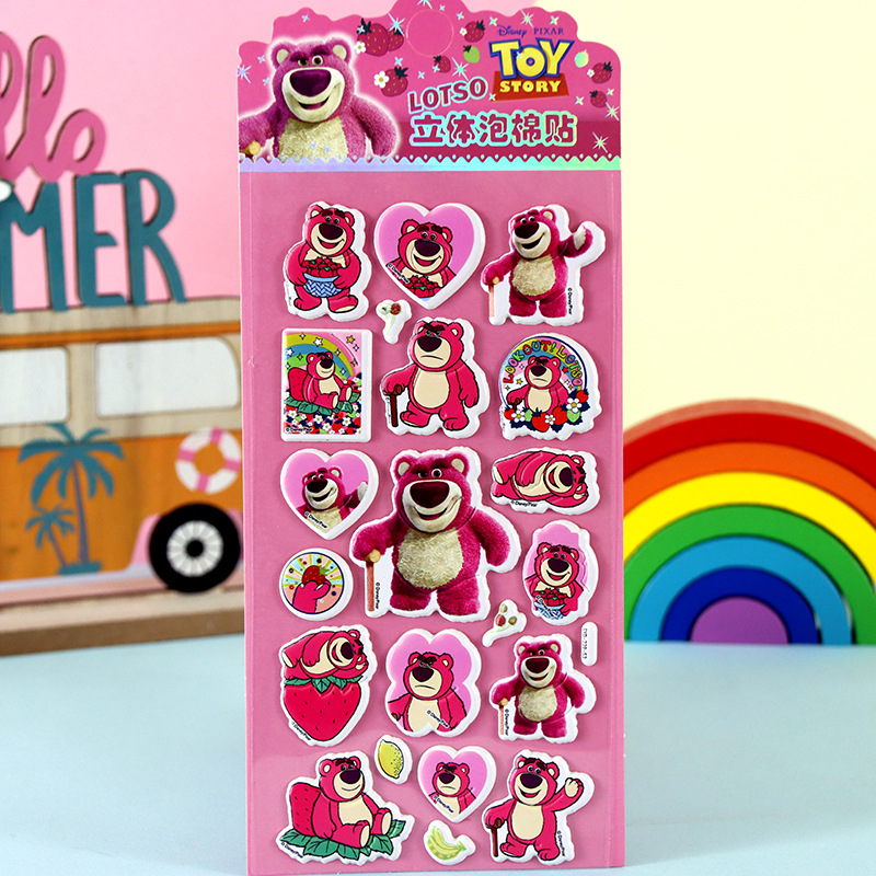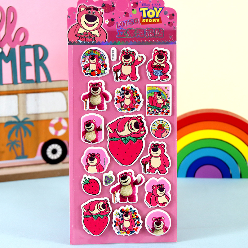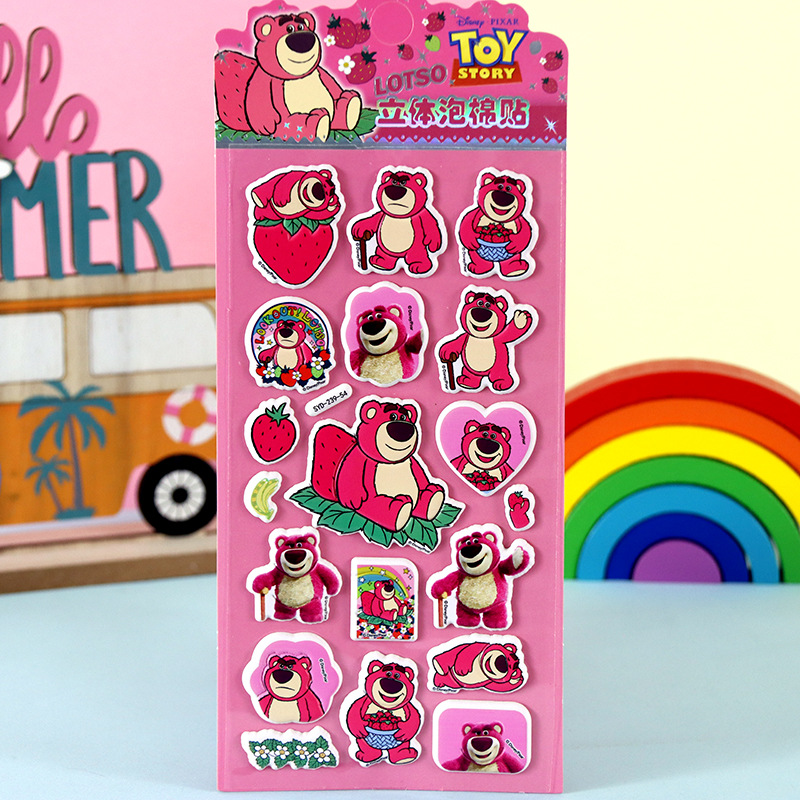 어린이 만화 스티커 얼음과 눈의 딸기곰 스티치 자동차 공룡 동물 3D 입체 버블 코튼 스티커스토어 가기
