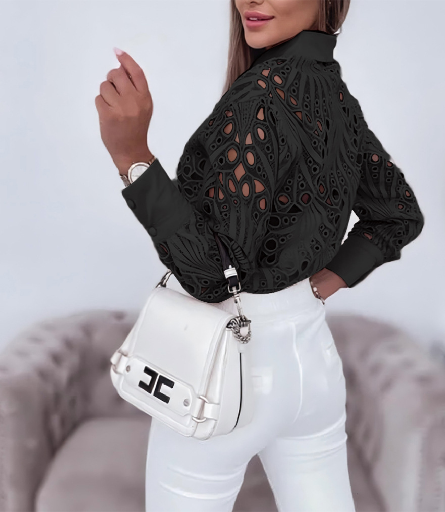 2024 독립 역 소원 아마존 폭발 봄과 가을 조커 통근 패션 레이스 할로우 긴 소매 셔츠 여성