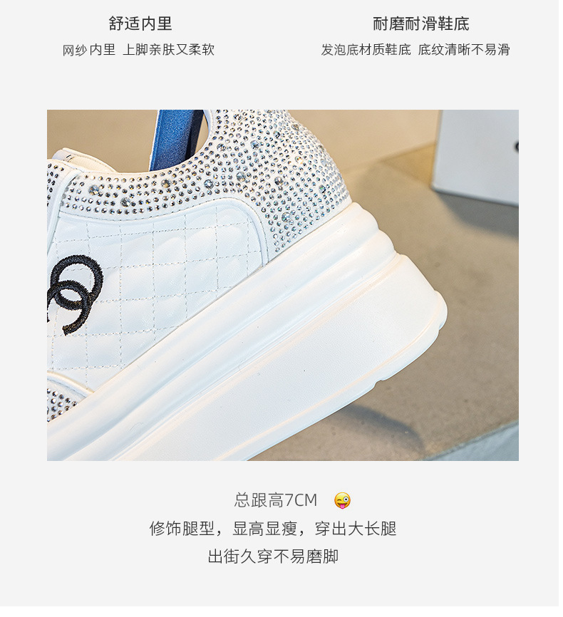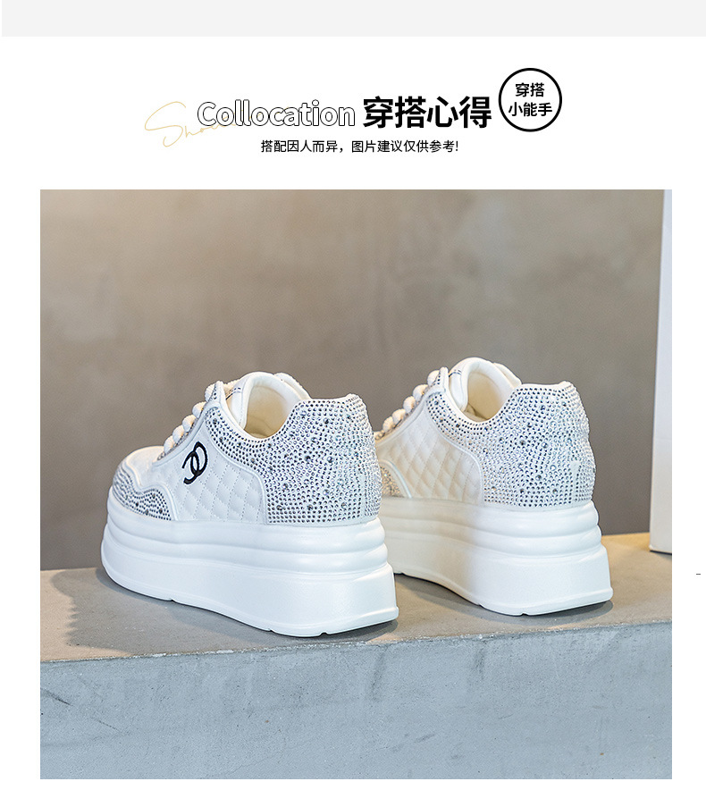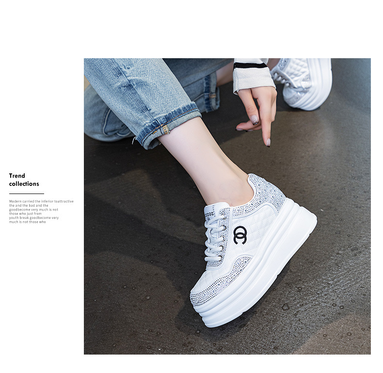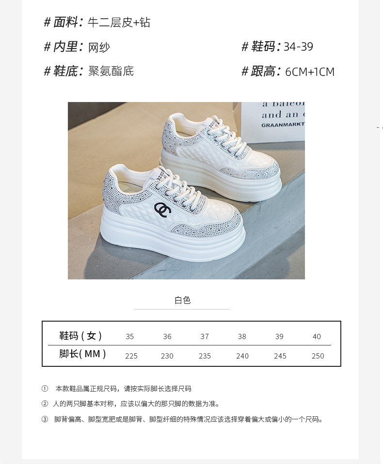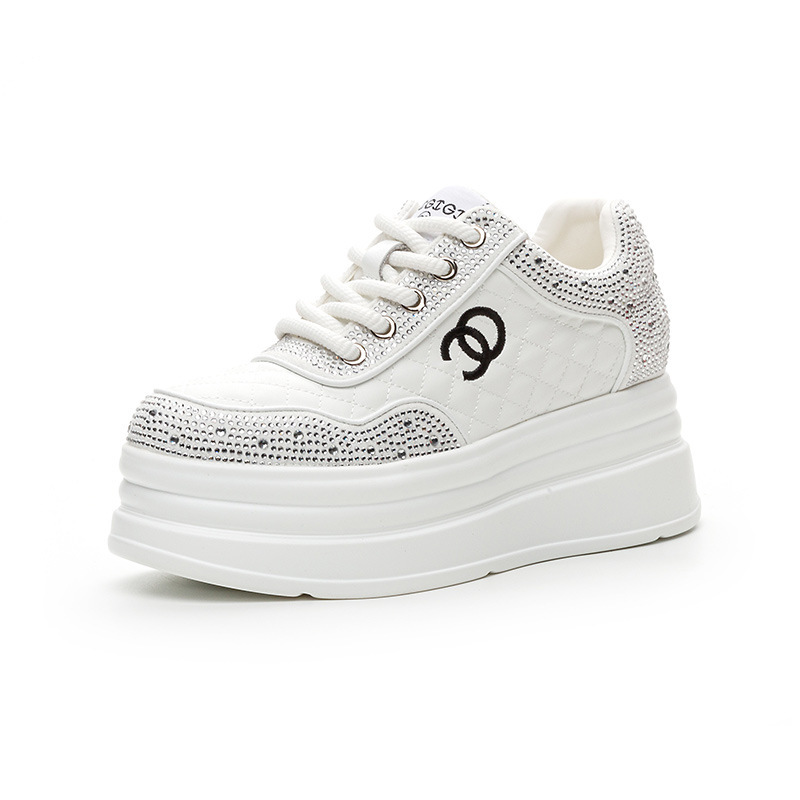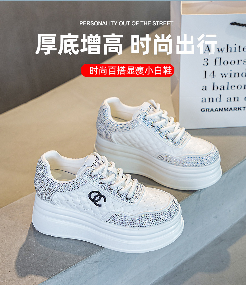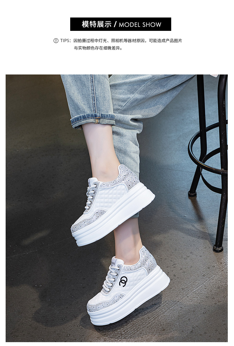 신발 가을 새로운 7CM 증가 두꺼운 단독 발 긴 올 매치 여성 신발 가죽 라인 스톤 인터넷 축하 핫 화이트 신발