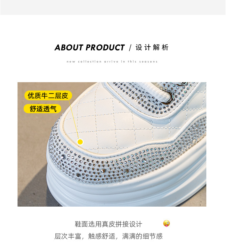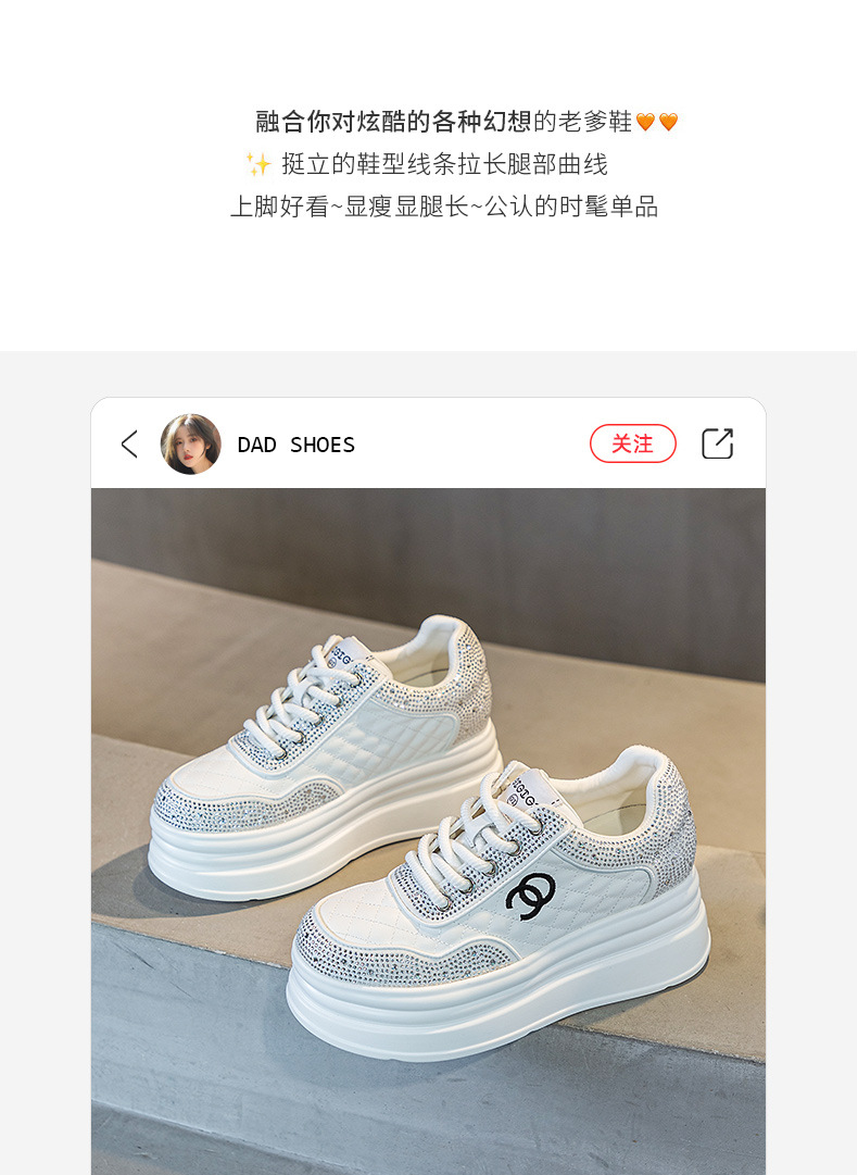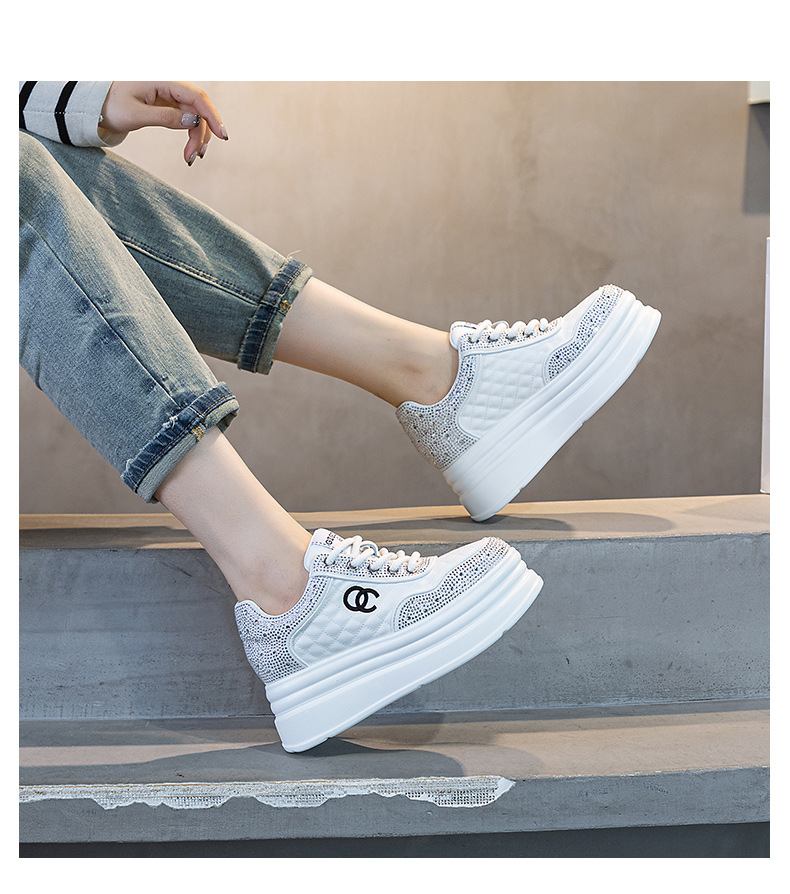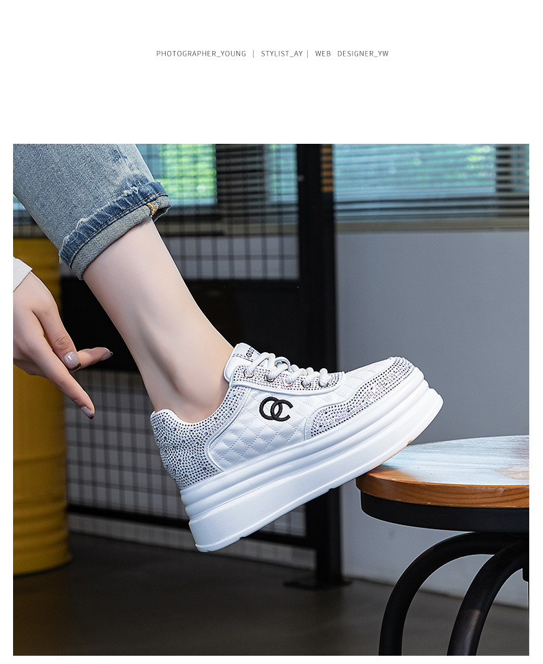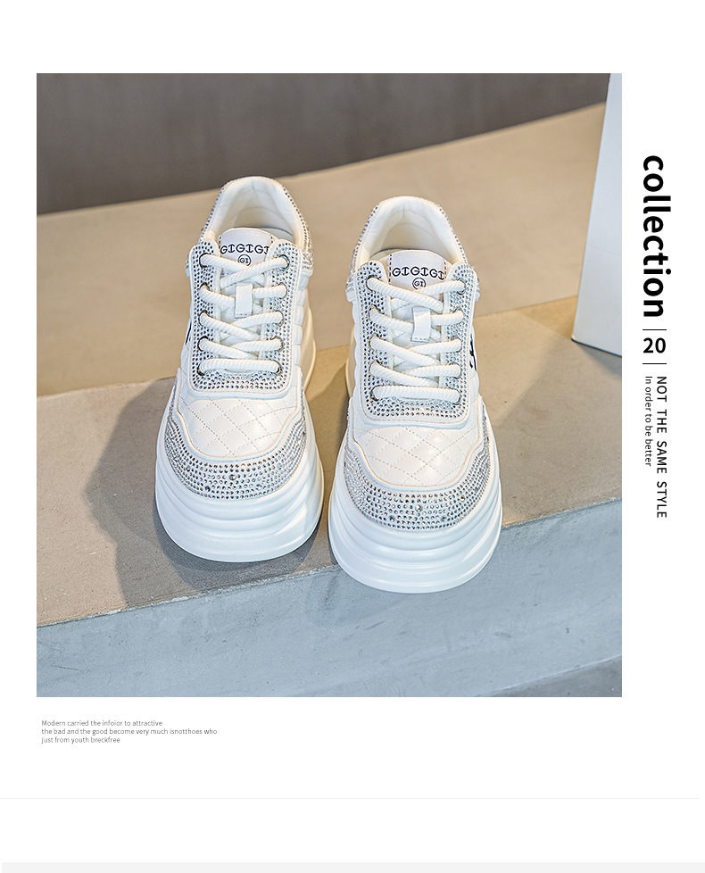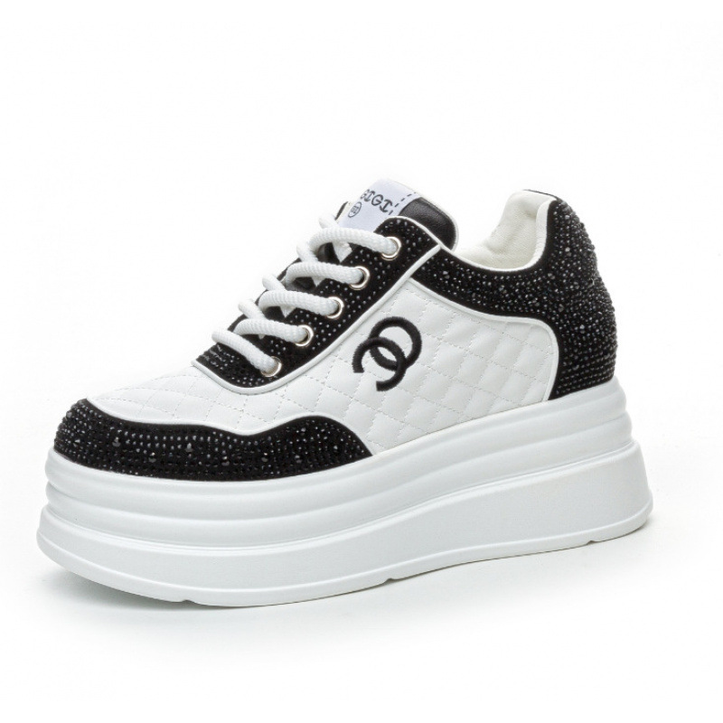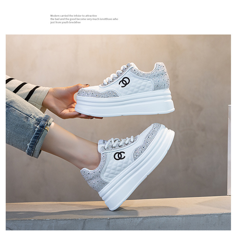 신발 가을 새로운 7CM 증가 두꺼운 단독 발 긴 올 매치 여성 신발 가죽 라인 스톤 인터넷 축하 핫 화이트 신발