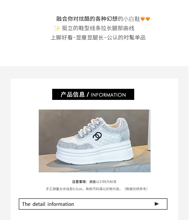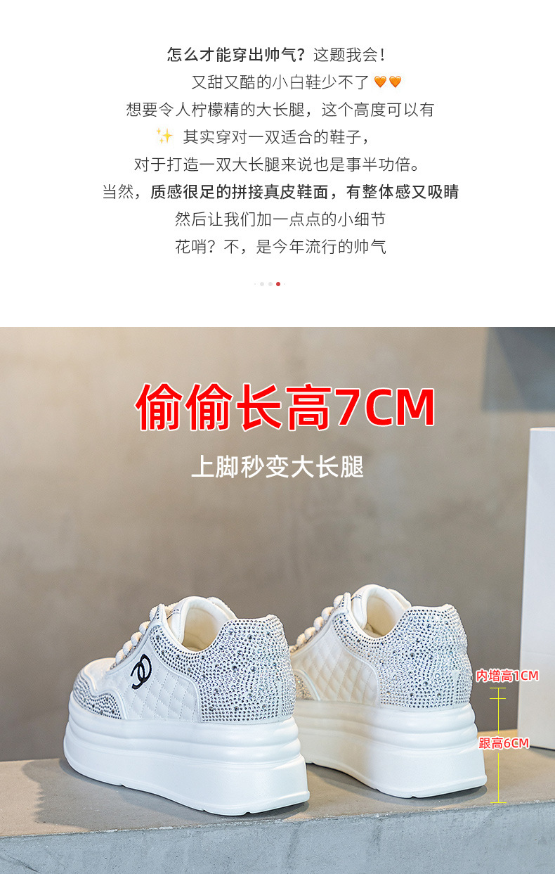 신발 가을 새로운 7CM 증가 두꺼운 단독 발 긴 올 매치 여성 신발 가죽 라인 스톤 인터넷 축하 핫 화이트 신발스토어 가기