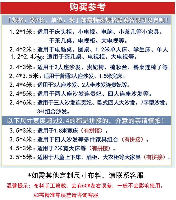 • 2.4X 3m 2인용 소파, 작은 식탁 등에 적합합니다.