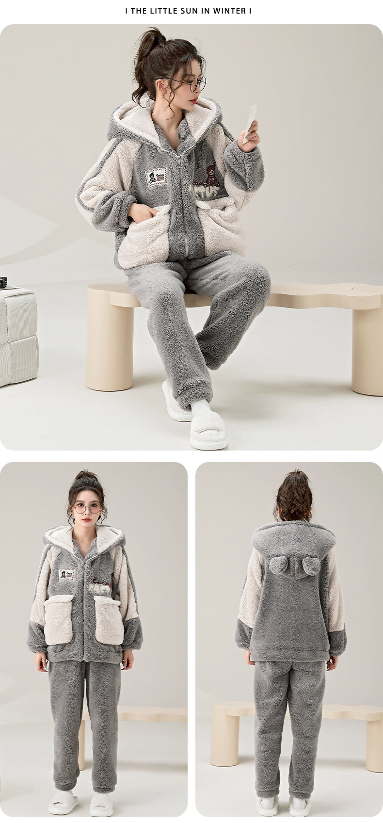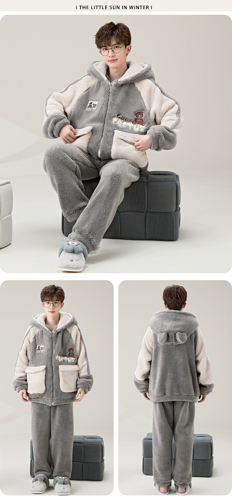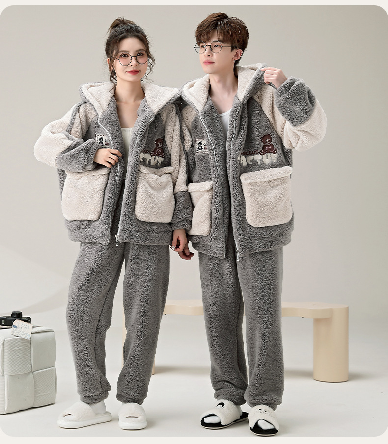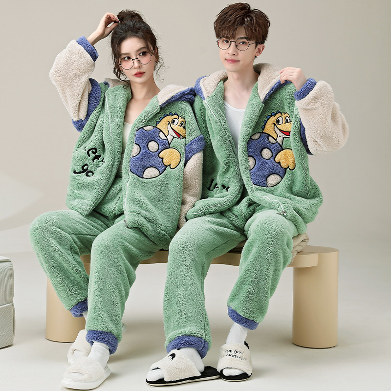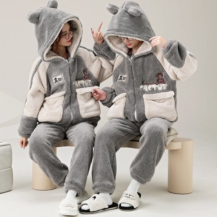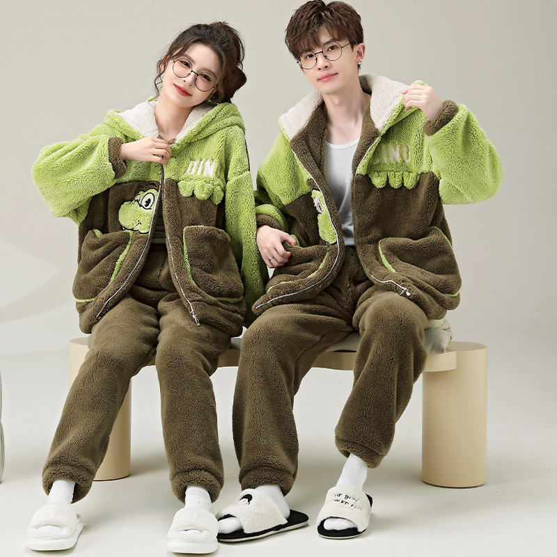 커플 잠옷 여성의 가을과 겨울 두꺼운 산호 양털 2024 새로운 남성 잠옷은 외부 홈 옷을 입을 수 세트
