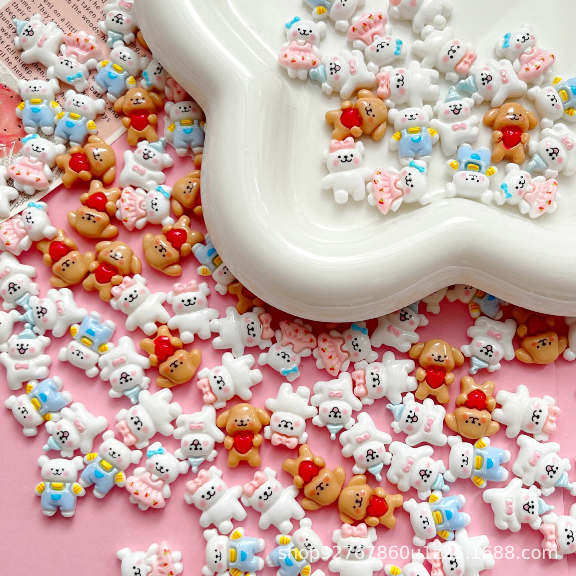 만화 강아지 레진 액세서리 DIY 크림 글루 핸드폰 케이스 머리핀 물컵 신발 꽃 네일아트 강아지 장식품 헤어 액세서리