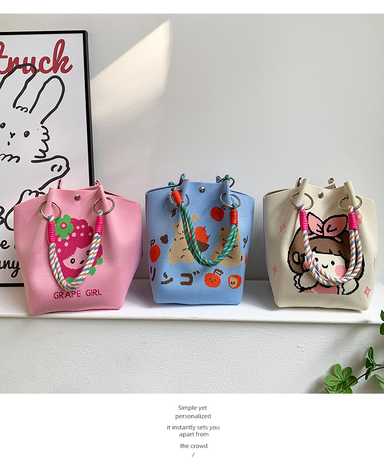 핸드백 여성의 새로운 패션 귀여운 만화 동물 대용량 휴대용 저장 가방 통근 어깨 가방 짠 가방스토어 가기