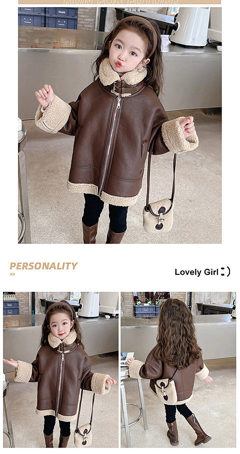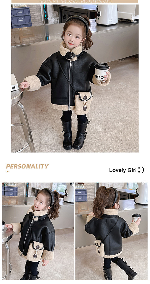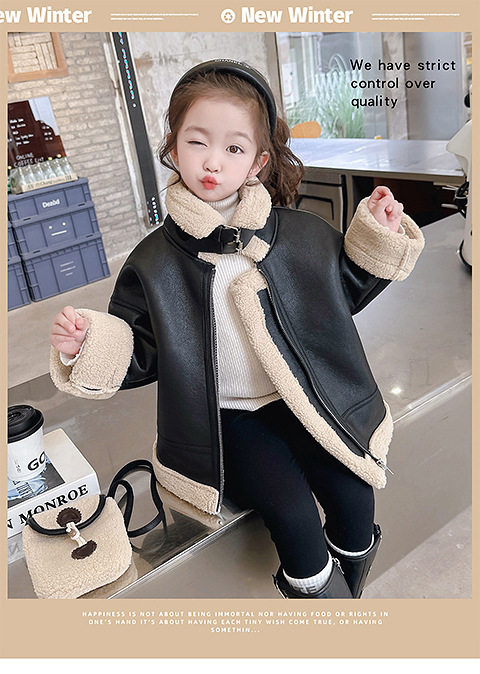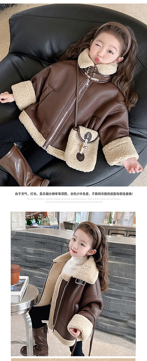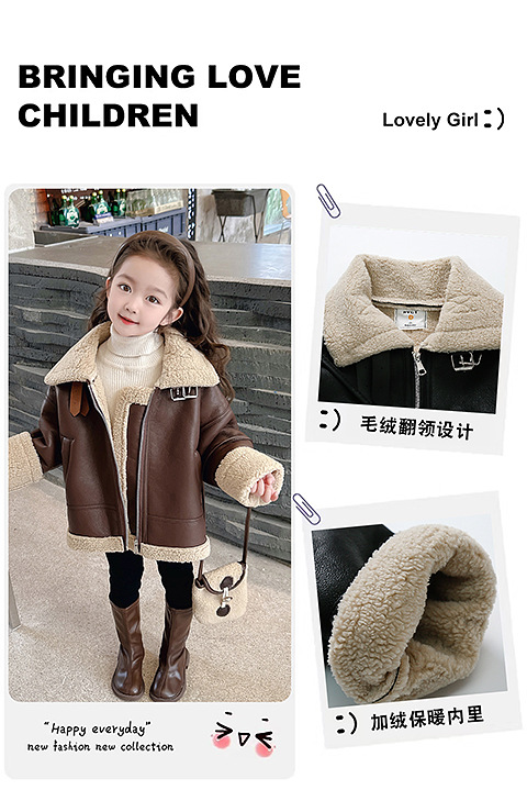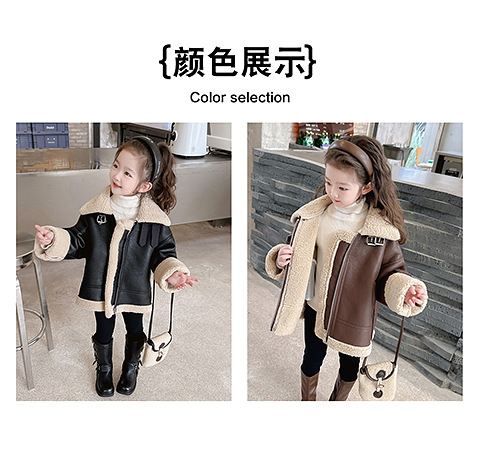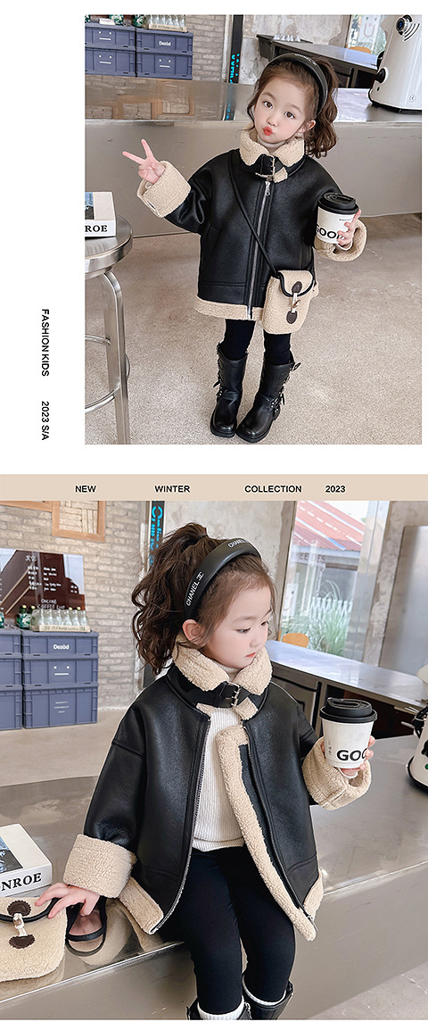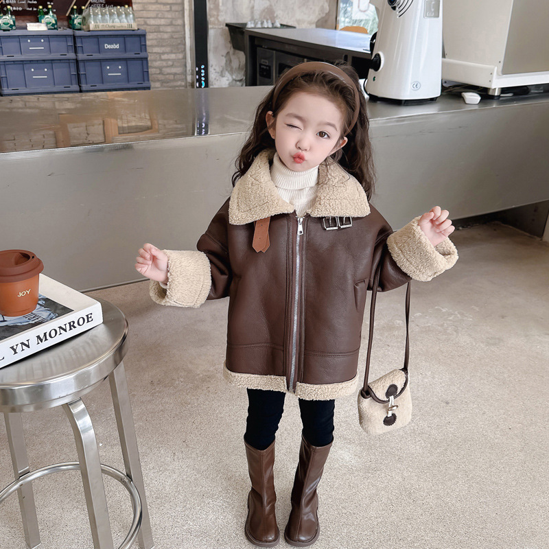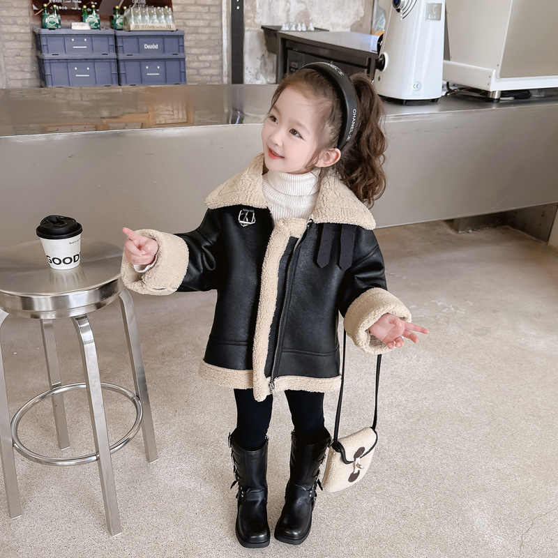 2024 가을과 겨울 세련된 가죽 코트 두꺼운 따뜻한 아기 소녀 유행 오토바이 스타일 마오 마오 라펠 가죽 자켓스토어 가기