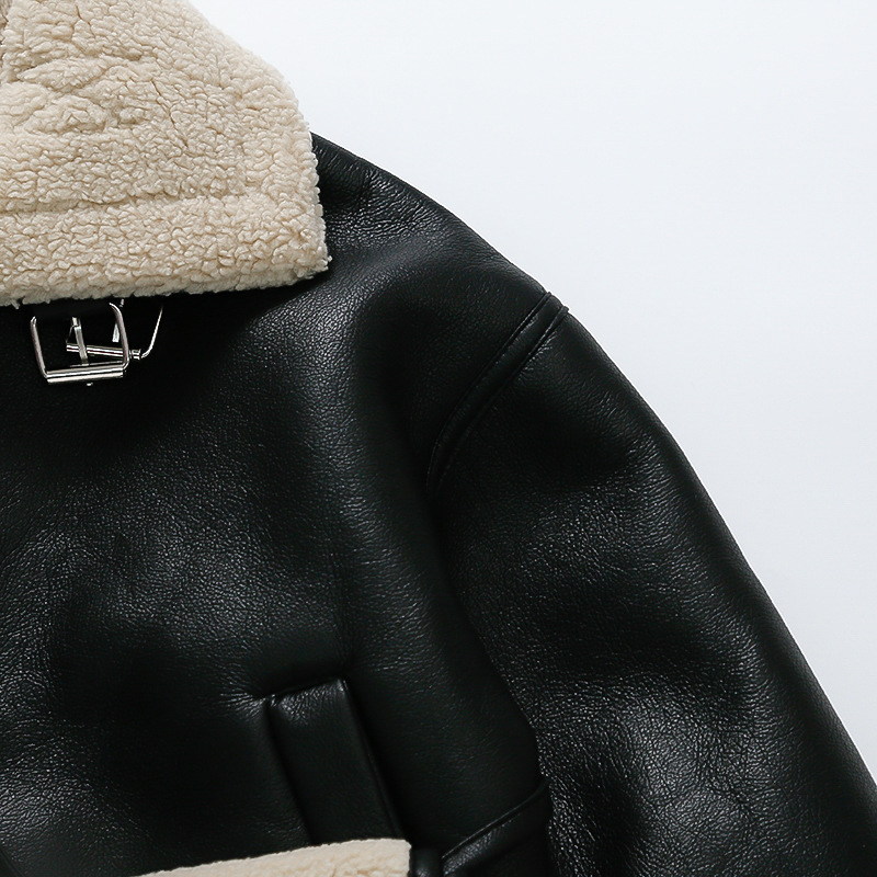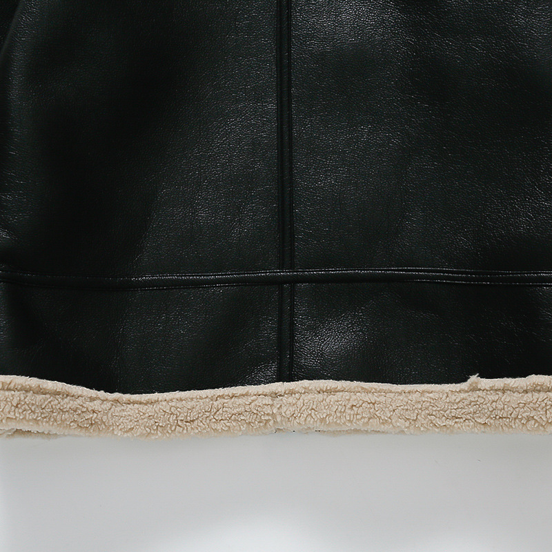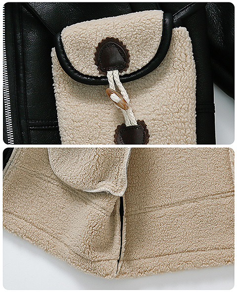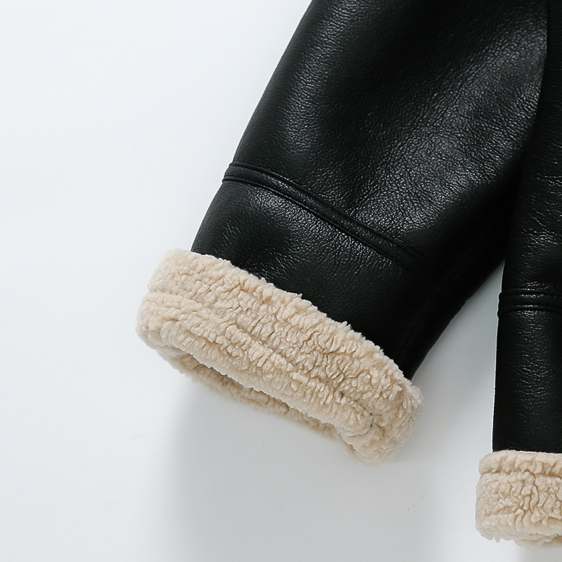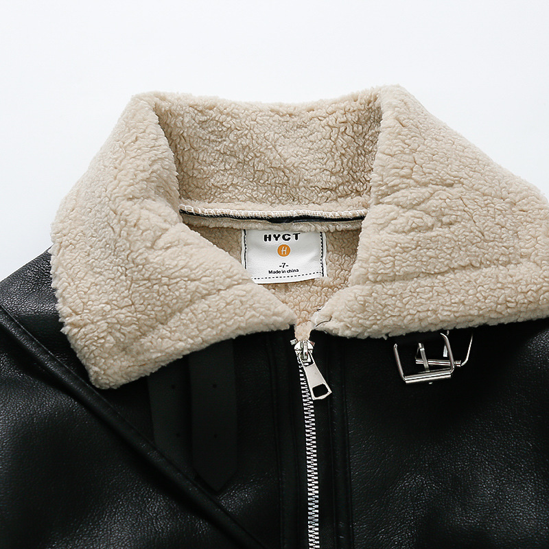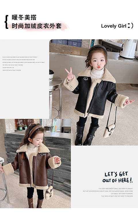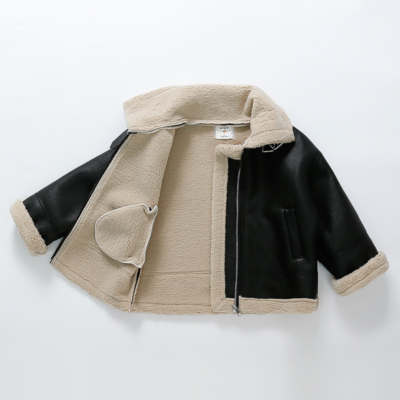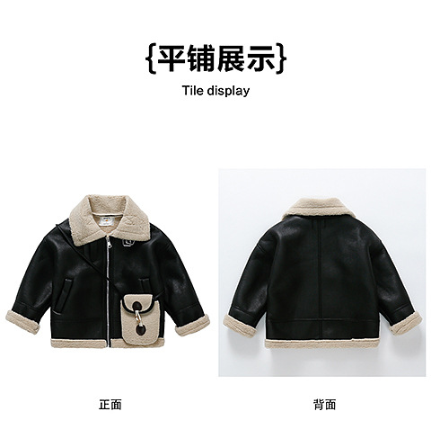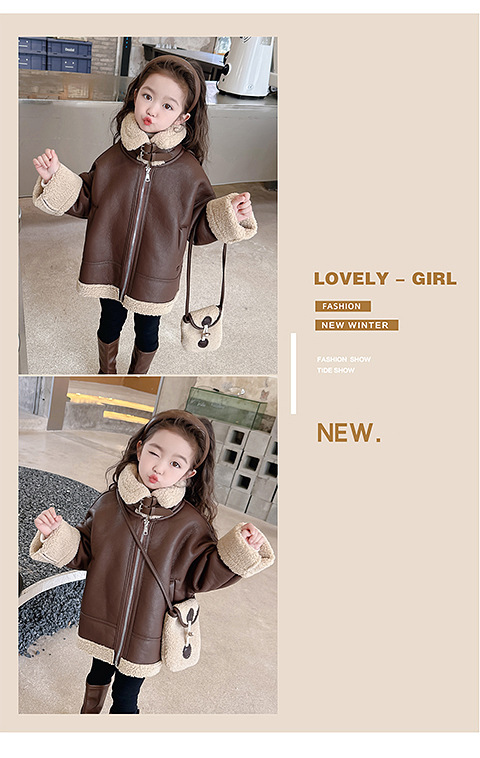 2024 가을과 겨울 세련된 가죽 코트 두꺼운 따뜻한 아기 소녀 유행 오토바이 스타일 마오 마오 라펠 가죽 자켓스토어 가기