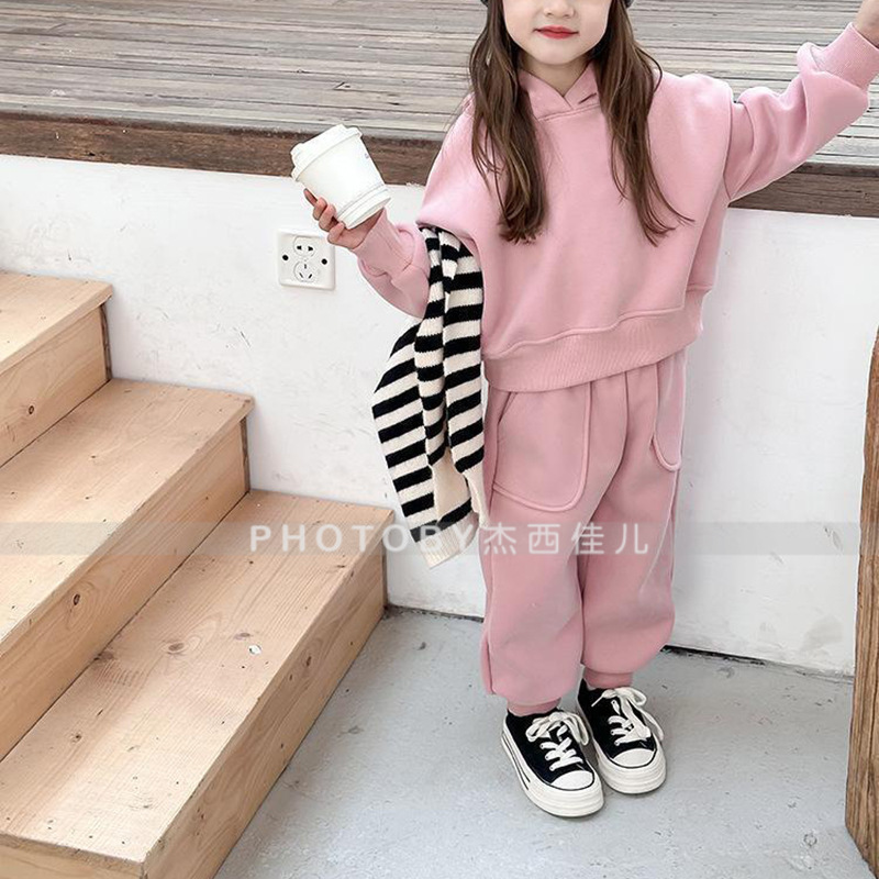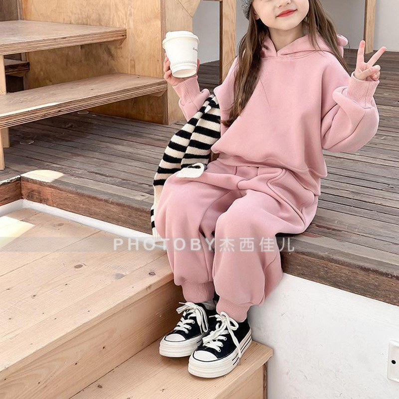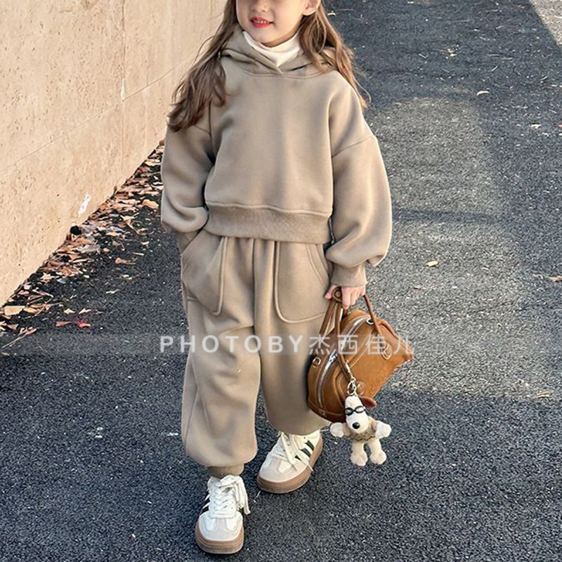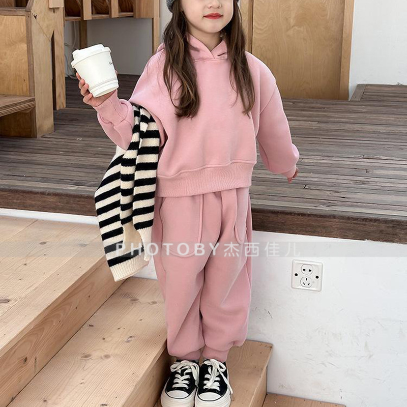 소년 소녀 가을과 겨울 기모 패딩 조끼 세트 2024 새로운 어린이 스포츠 서양식 레저 투피스 세트스토어 가기