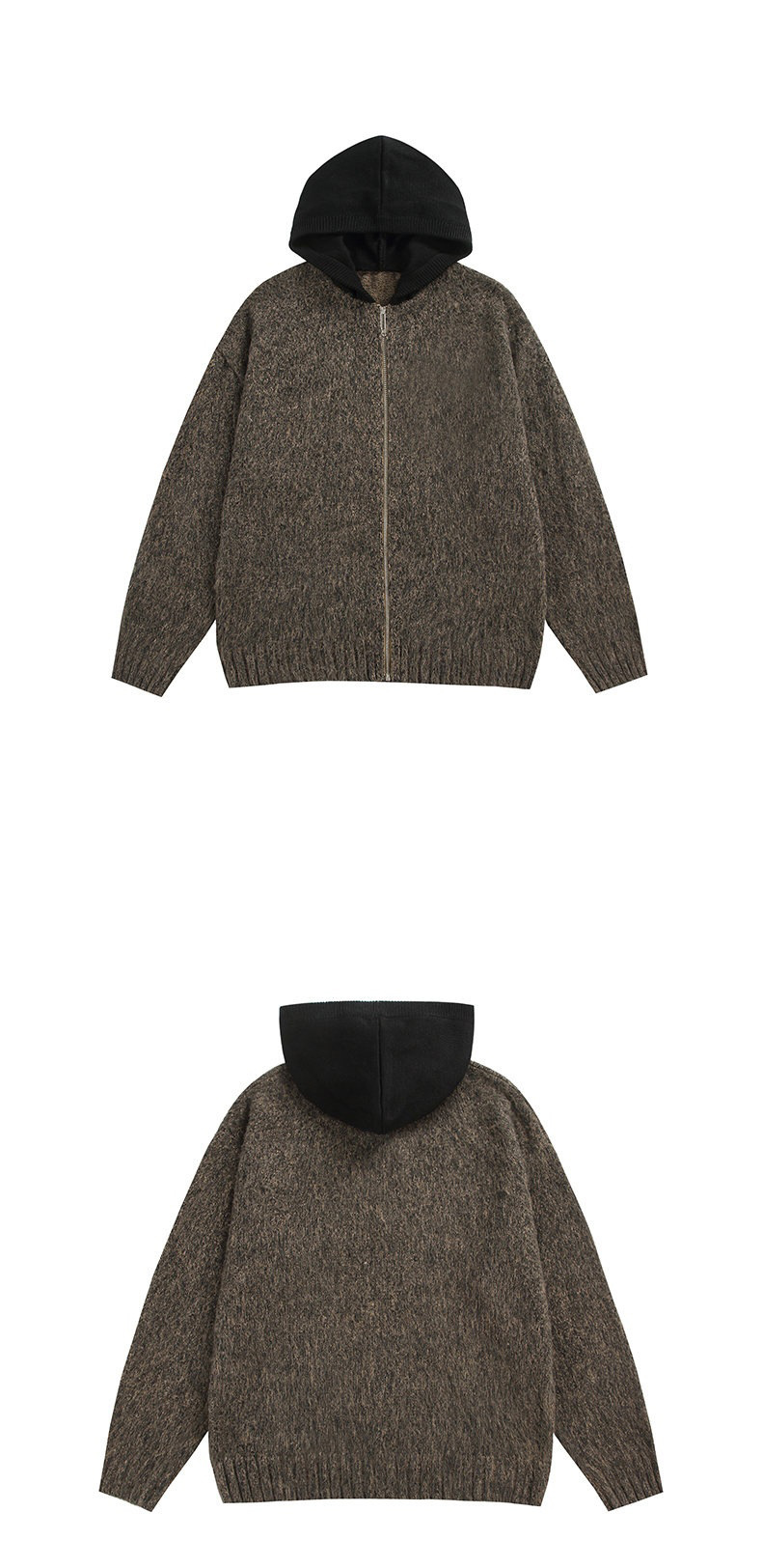 아메리칸 스타일 레트로 콘트라스트 컬러 후드 스웨터 남성 가을 겨울 패션 브랜드 게으른 하이 엔드 클린 핏 스웨터 재킷스토어 가기