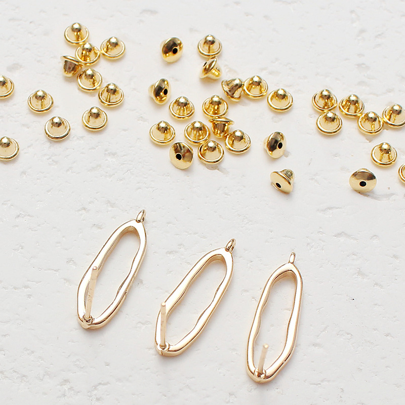 14K 골드 컬러 실버 타원형 귀걸이 이어 플러그 총알 작은 귀마개 DIY 팔찌 목걸이 수제 보석