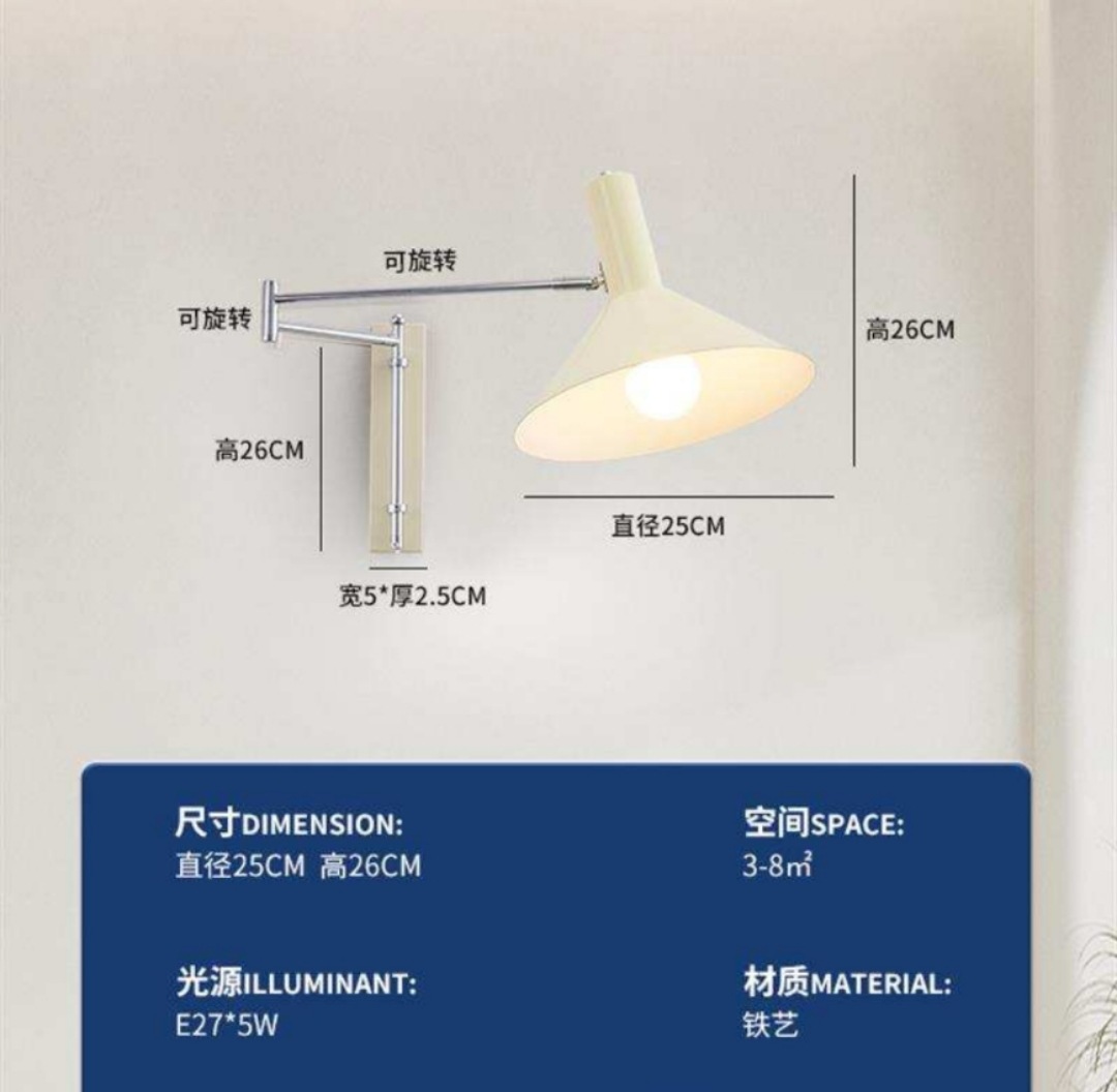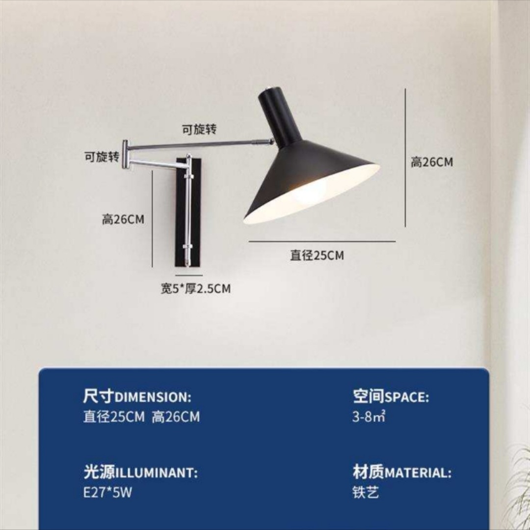 북유럽 모던 바우하우스 침대 옆 접이식 벽등 중세풍 심플 침실 바 카운터 확장형 로커스 벽등