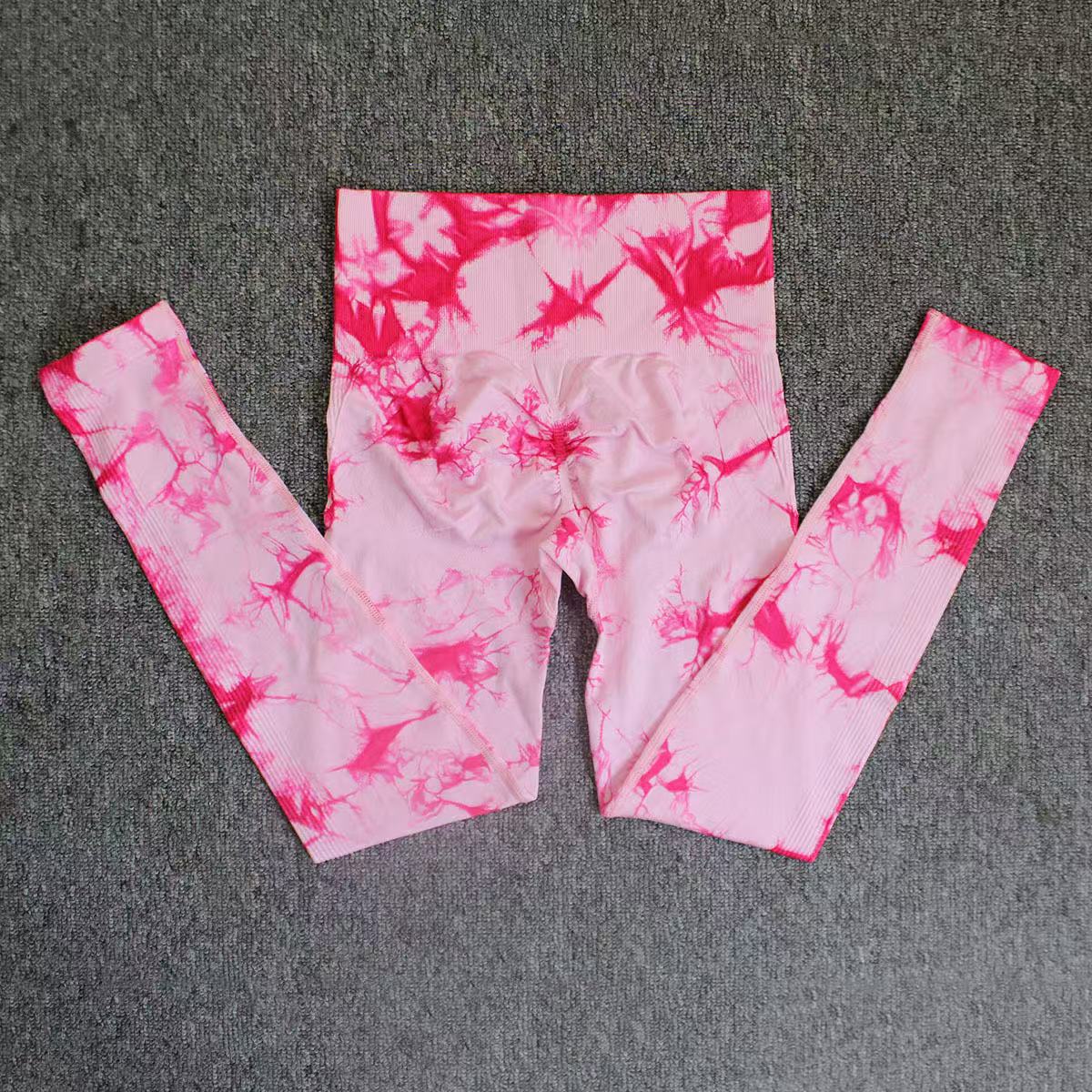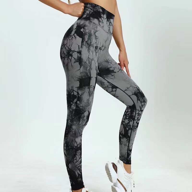 유럽 및 미국 대형 사이즈 타이다이 스포츠 피트니스 여성용 하이웨이스트 복숭아힙업 외출용 자카드 러닝 요가 팬츠 슬림핏