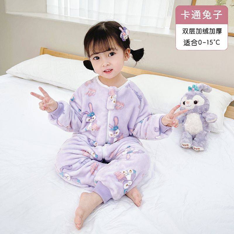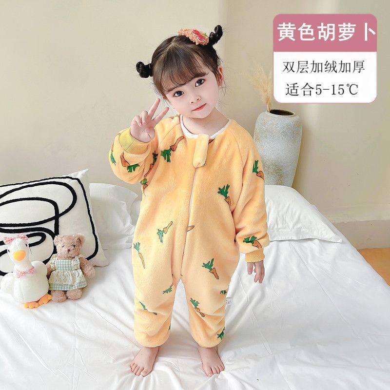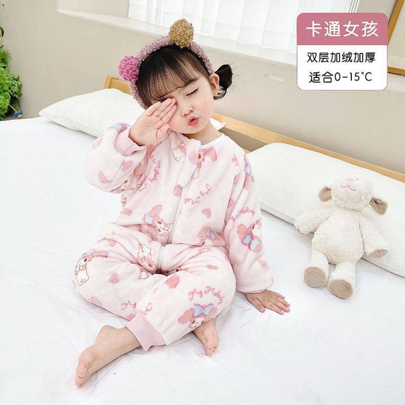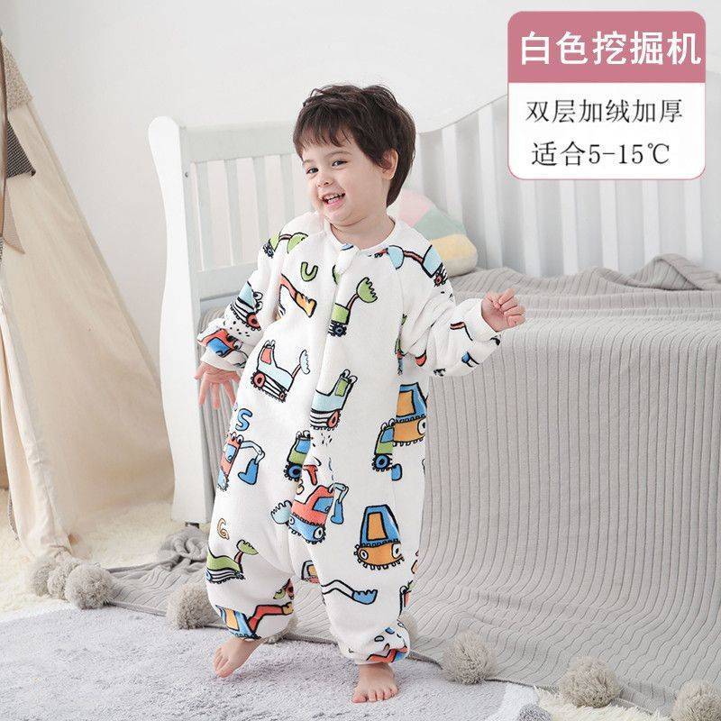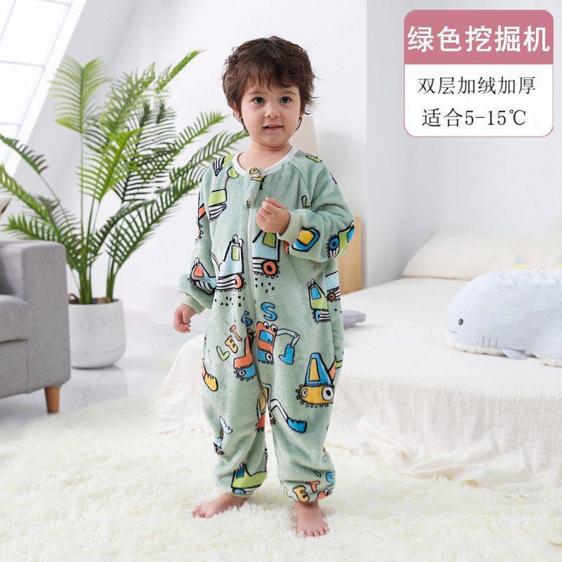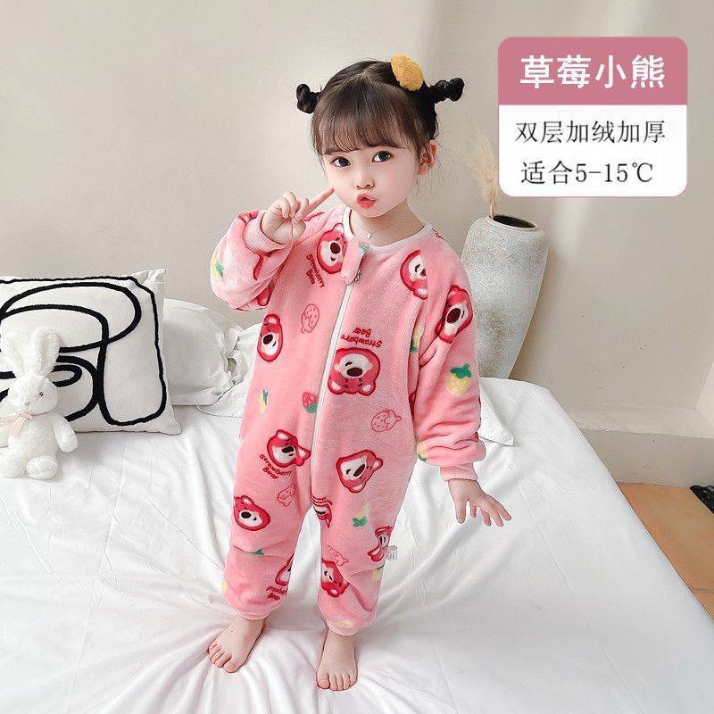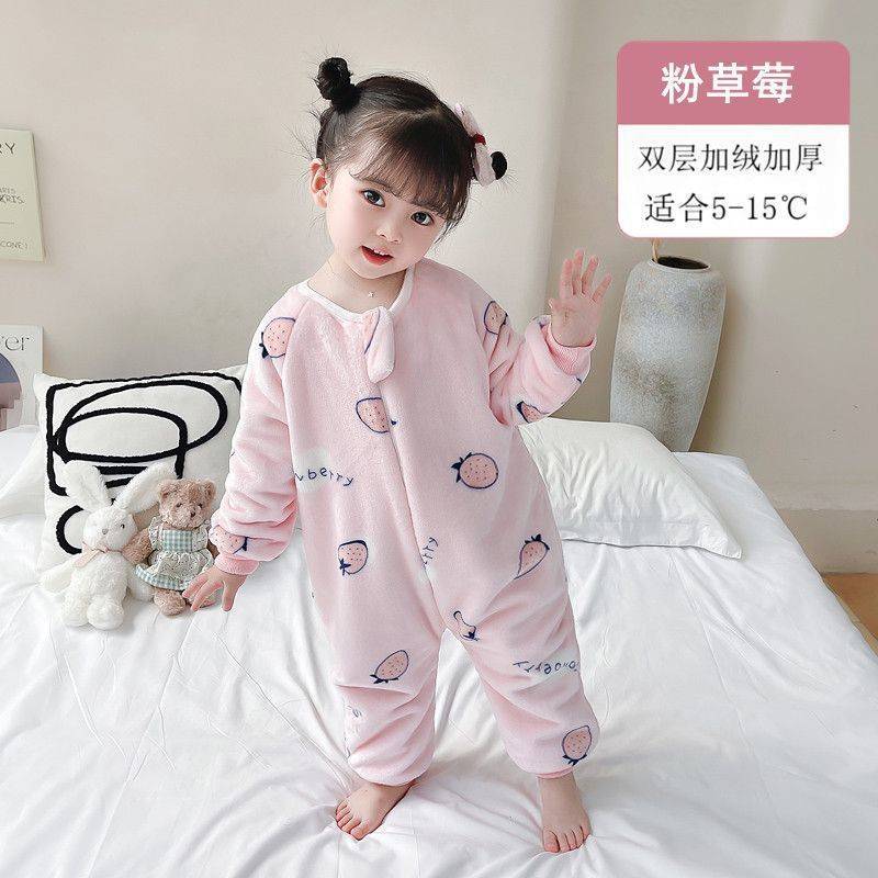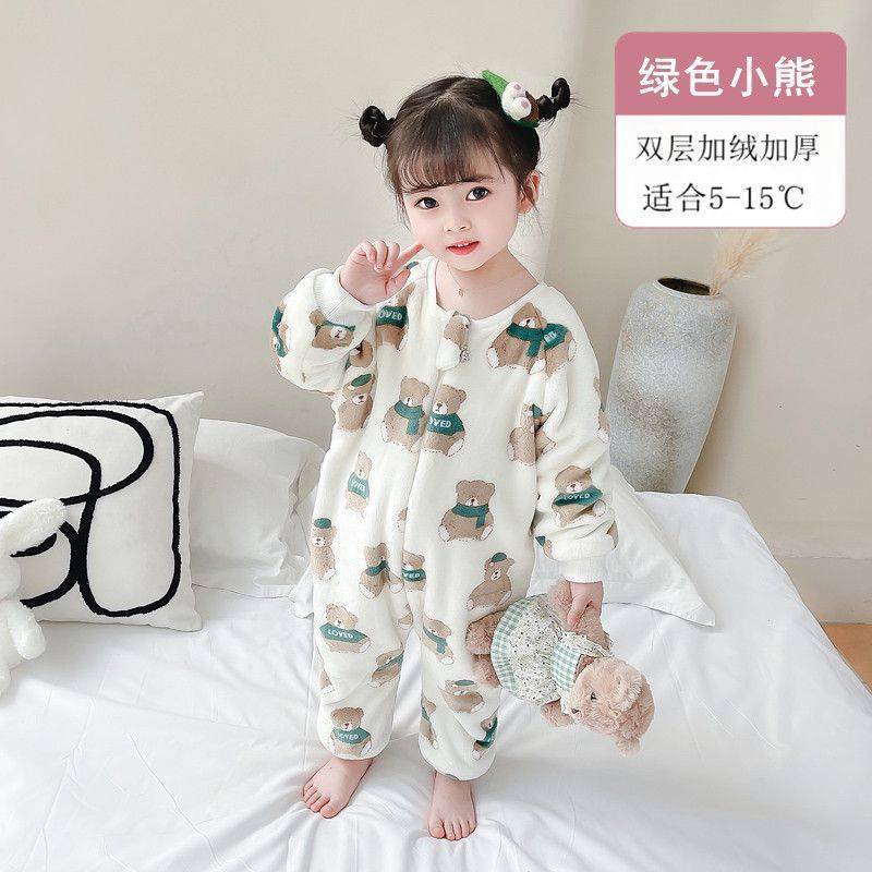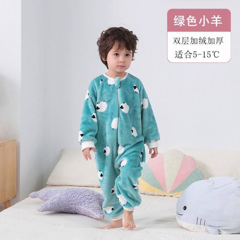아기 슬리핑 백 가을과 겨울 산호 양털 어린이 다리 분할 킥 방지 아티팩트 겨울 두꺼운 플란넬 아기 잠옷스토어 가기