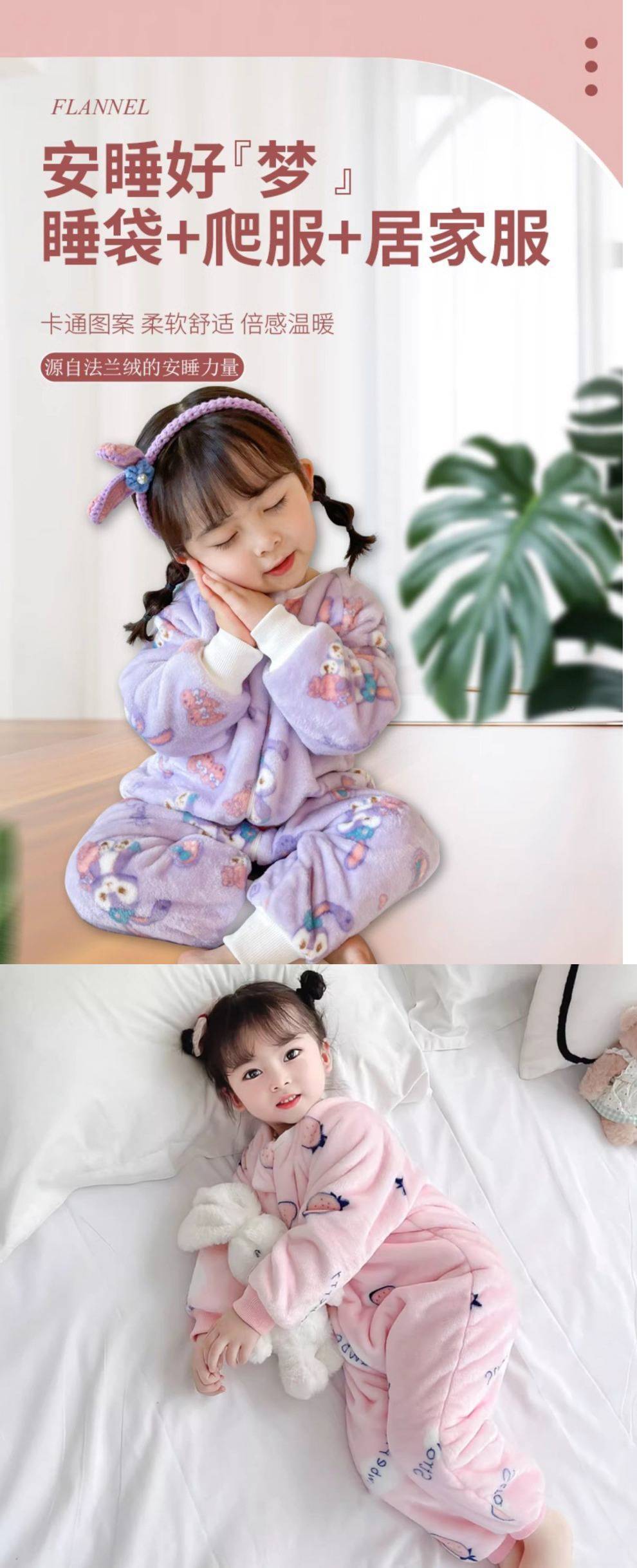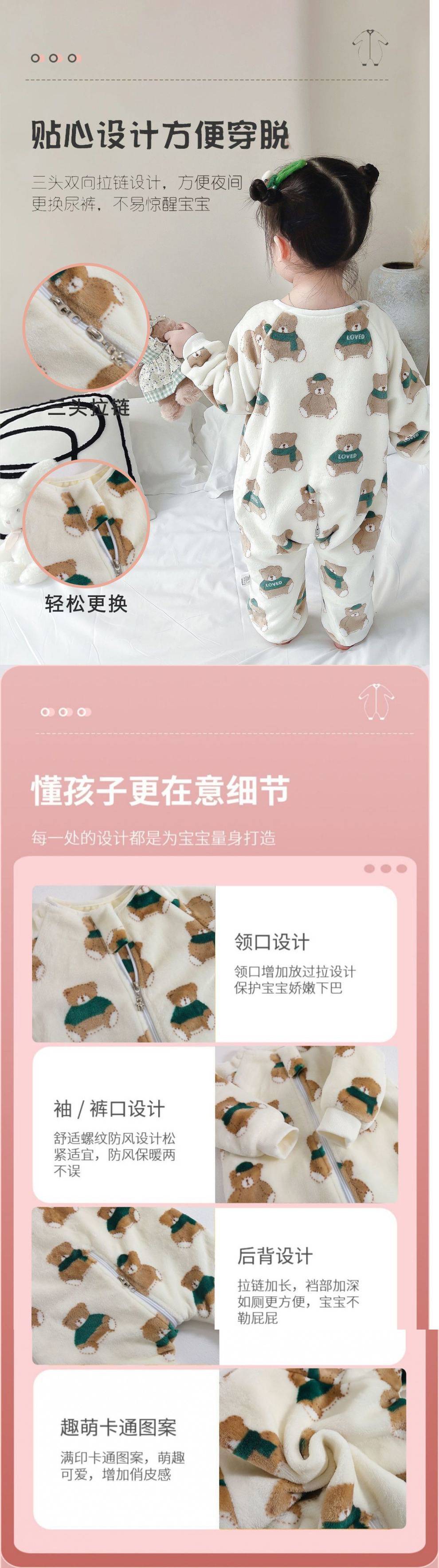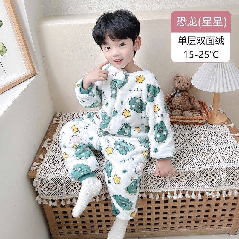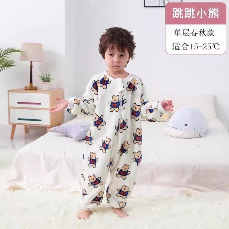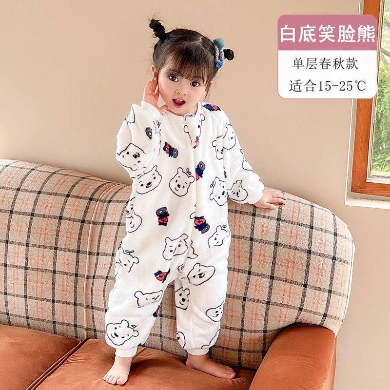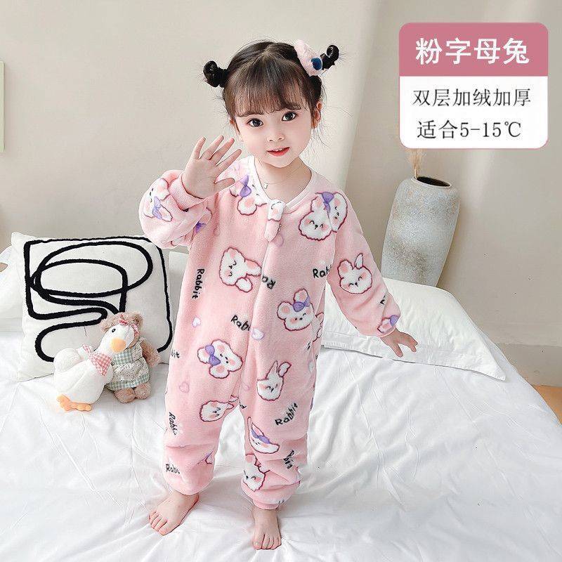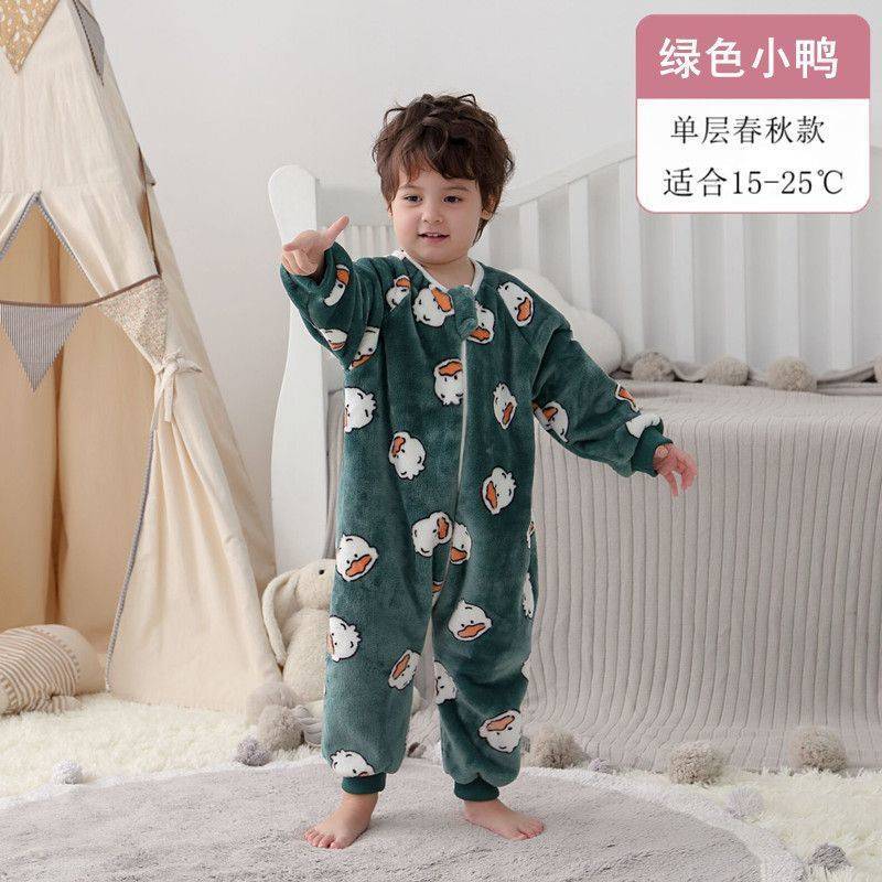 아기 슬리핑 백 가을과 겨울 산호 양털 어린이 다리 분할 킥 방지 아티팩트 겨울 두꺼운 플란넬 아기 잠옷스토어 가기