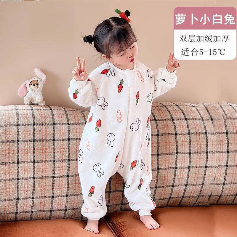 아기 슬리핑 백 가을과 겨울 산호 양털 어린이 다리 분할 킥 방지 아티팩트 겨울 두꺼운 플란넬 아기 잠옷