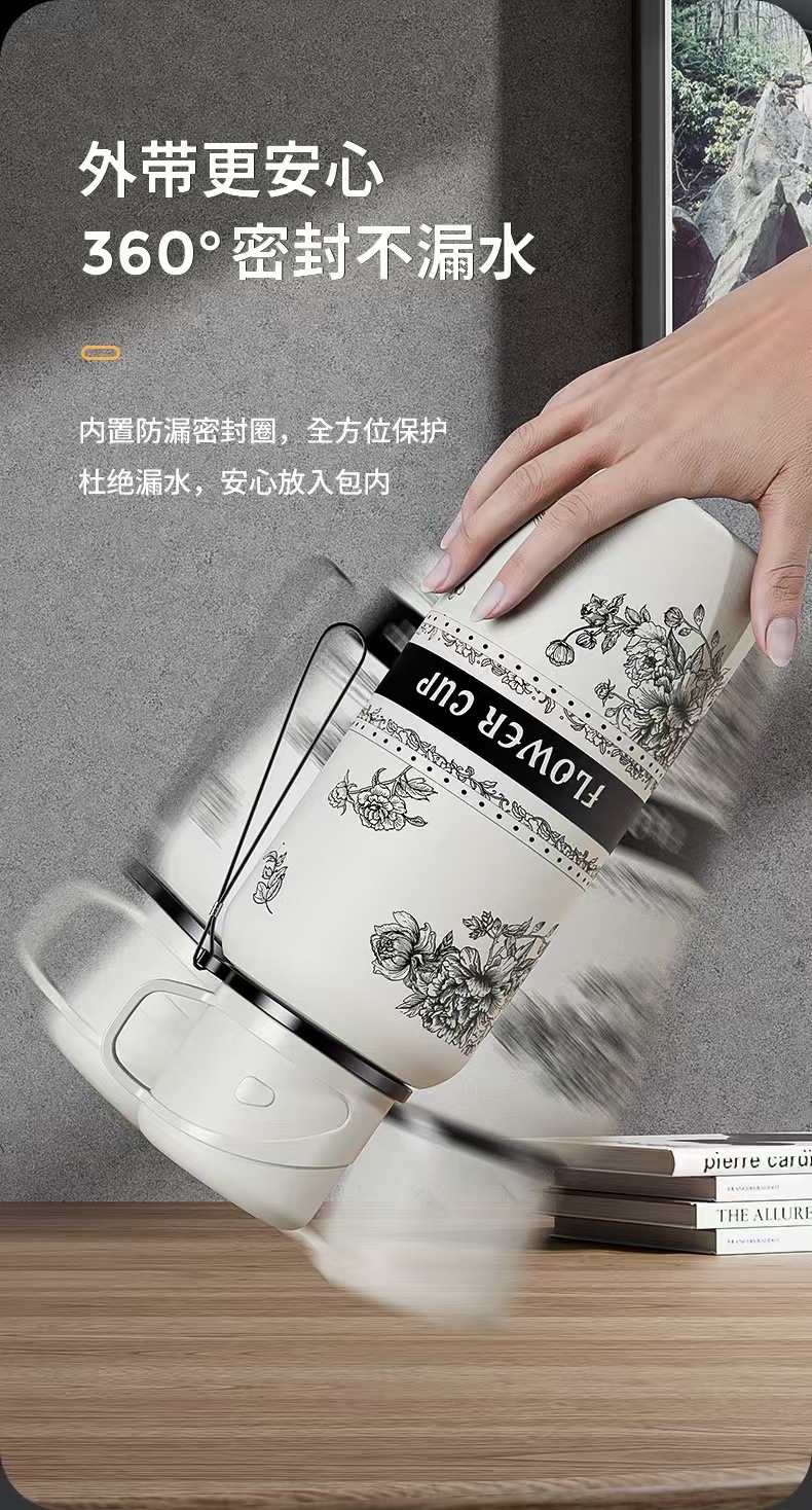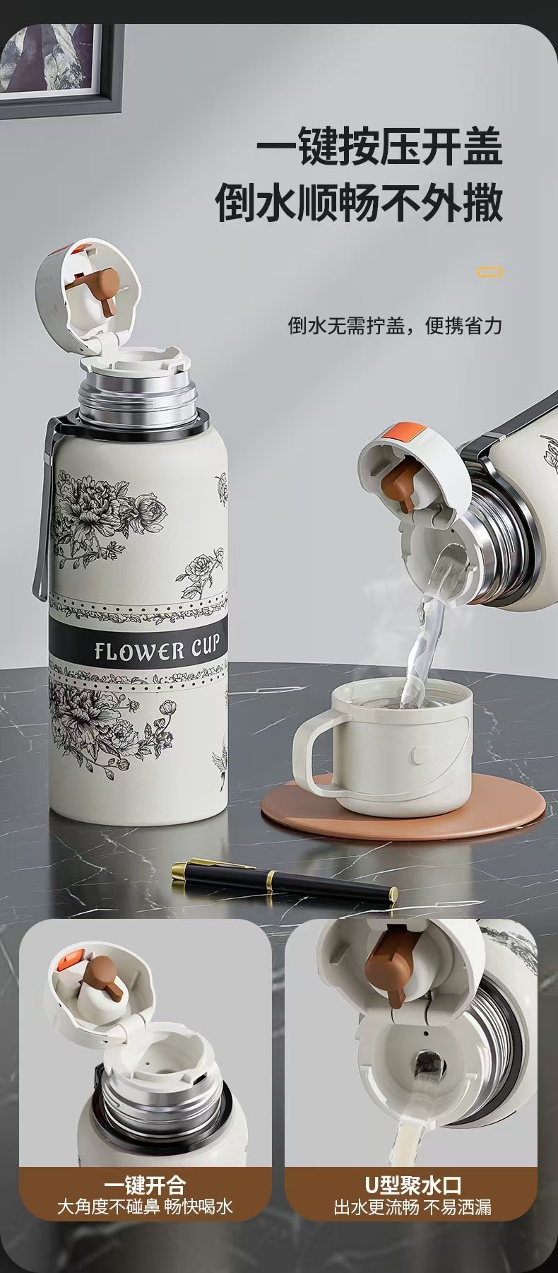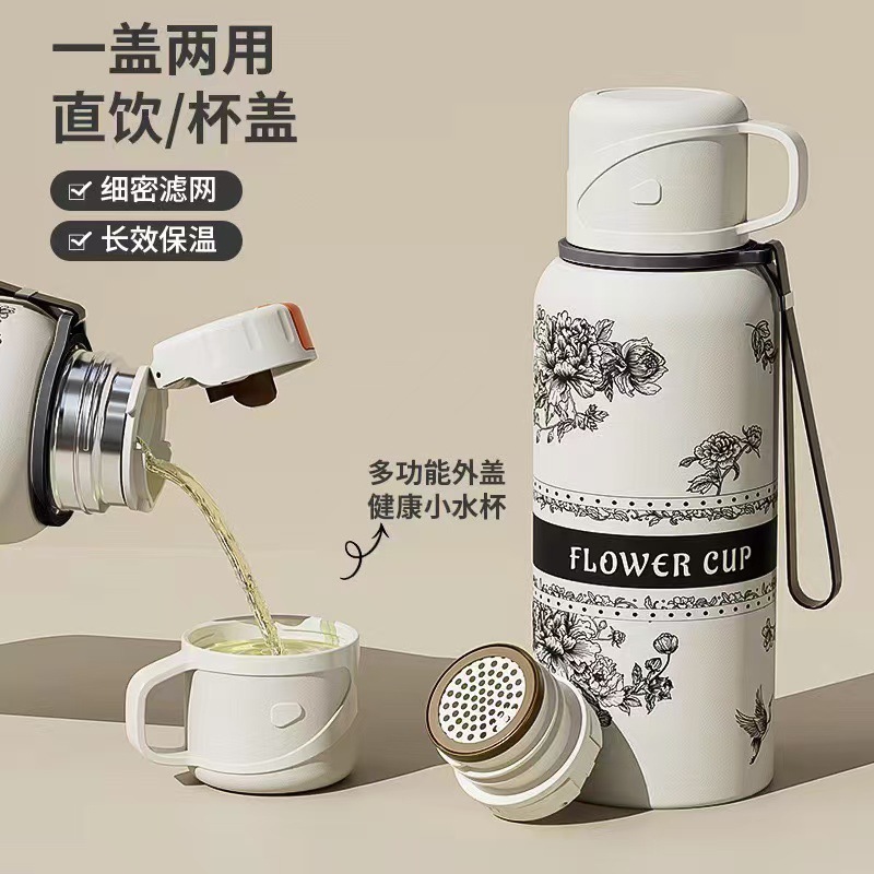 Gardenia Thermos Cup 여자 2024 새로운 높은 색상 가치 학생 물 컵 가을과 겨울 대용량 316 스테인레스 스틸