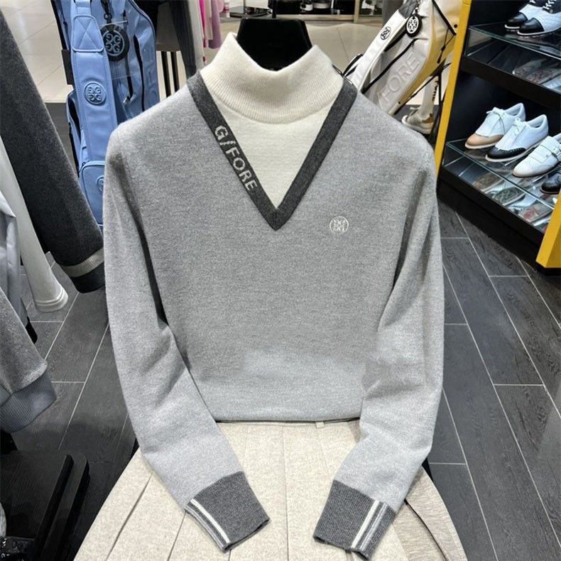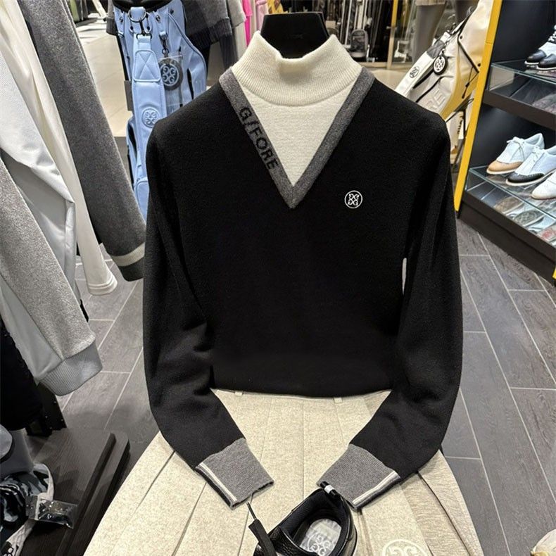 골프 의류 가을과 겨울 여성의 따뜻한 두꺼운 베이스 터틀넥 스웨터 패션 올 매치 컬러 매칭 니트 탑스토어 가기