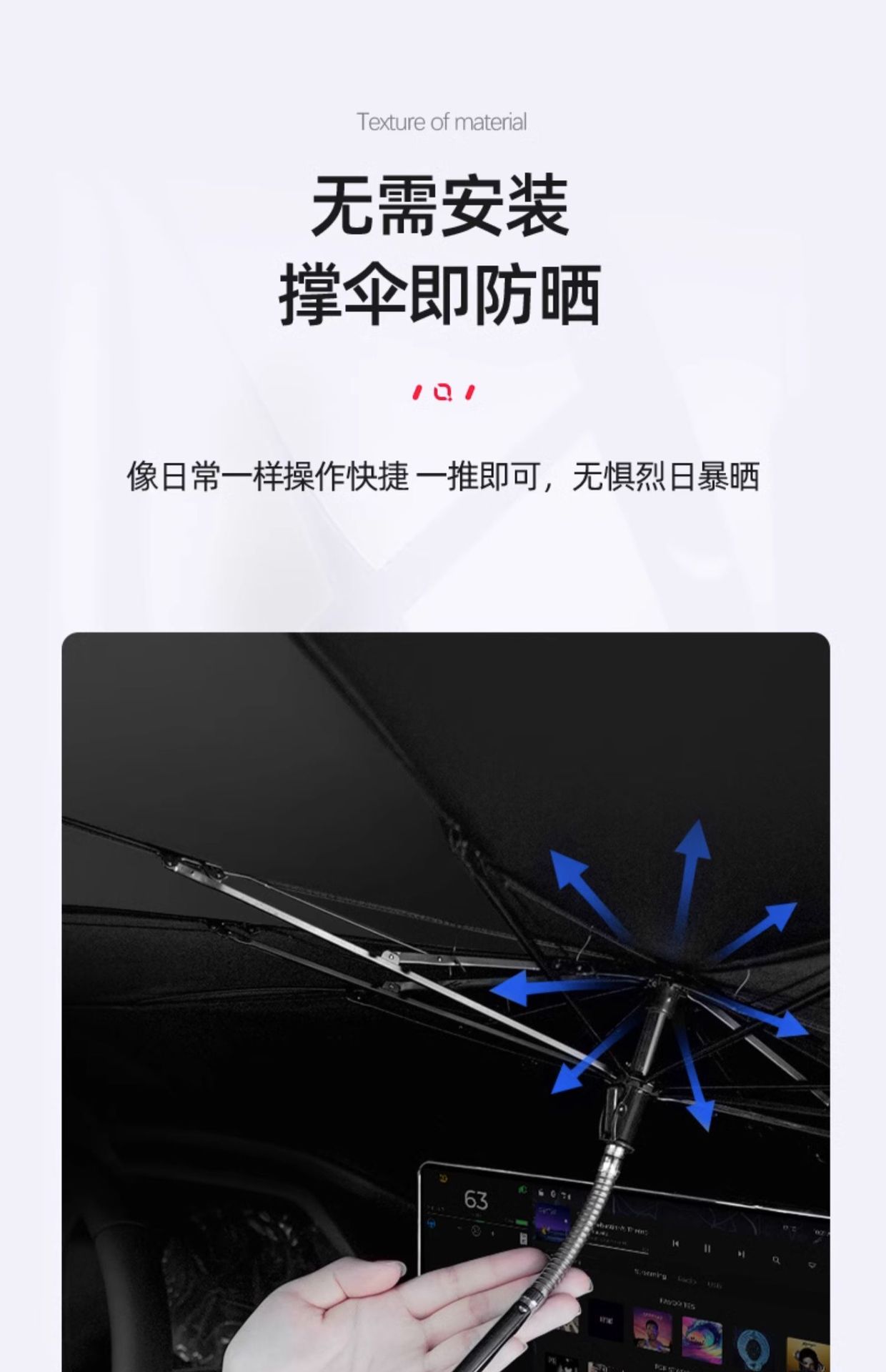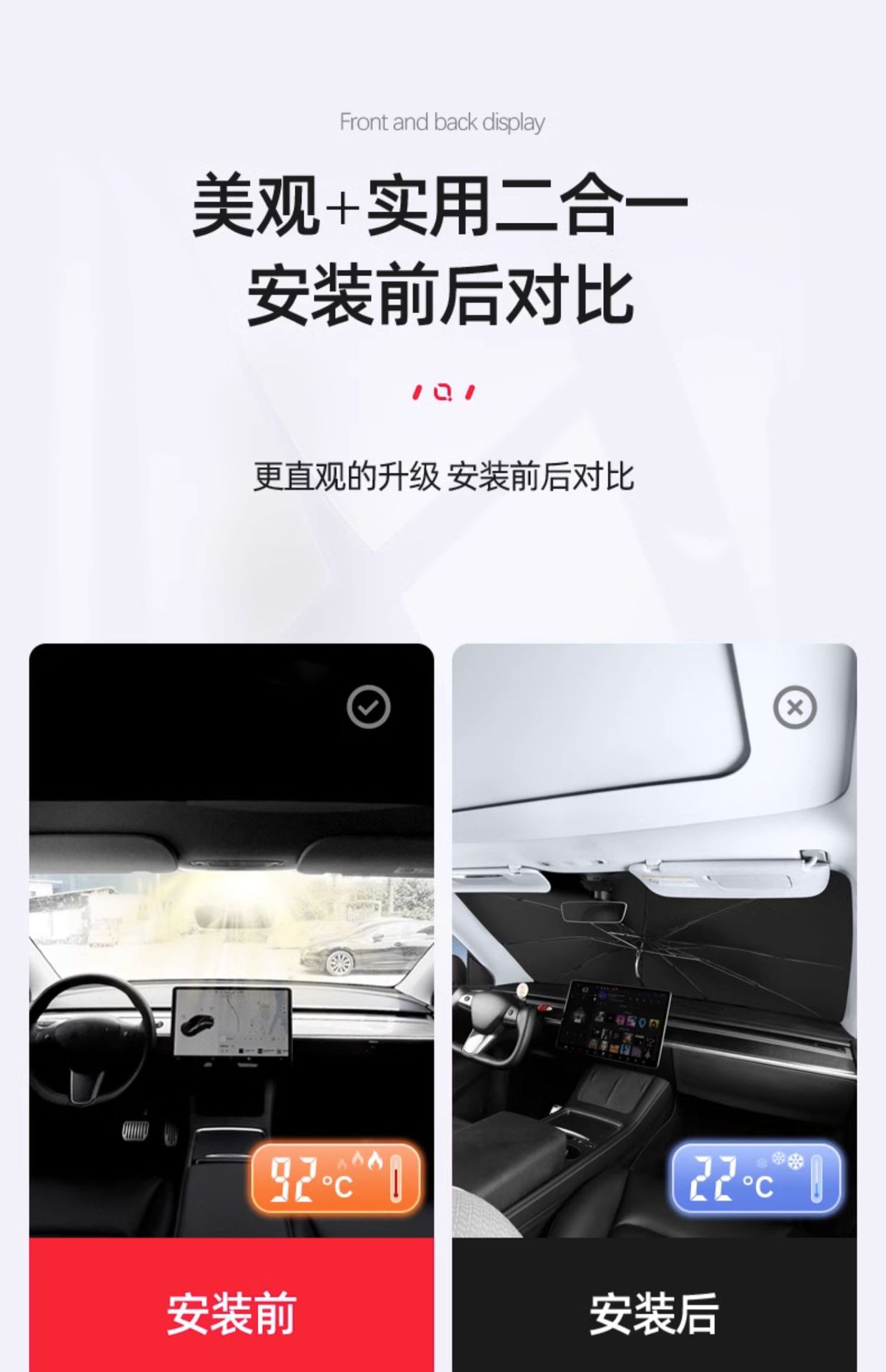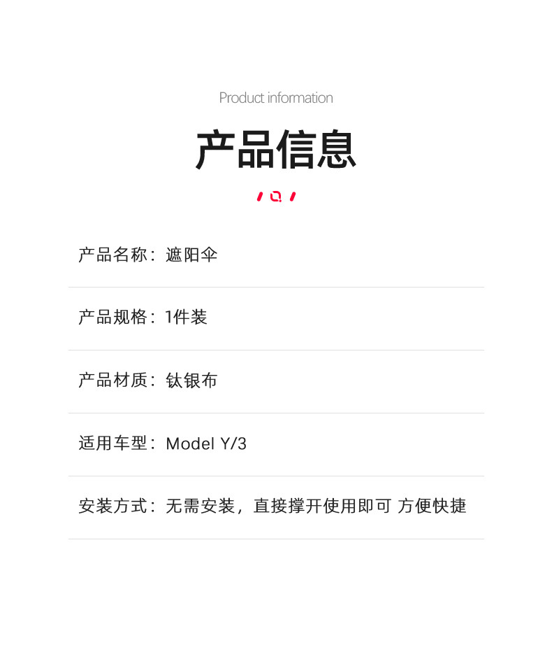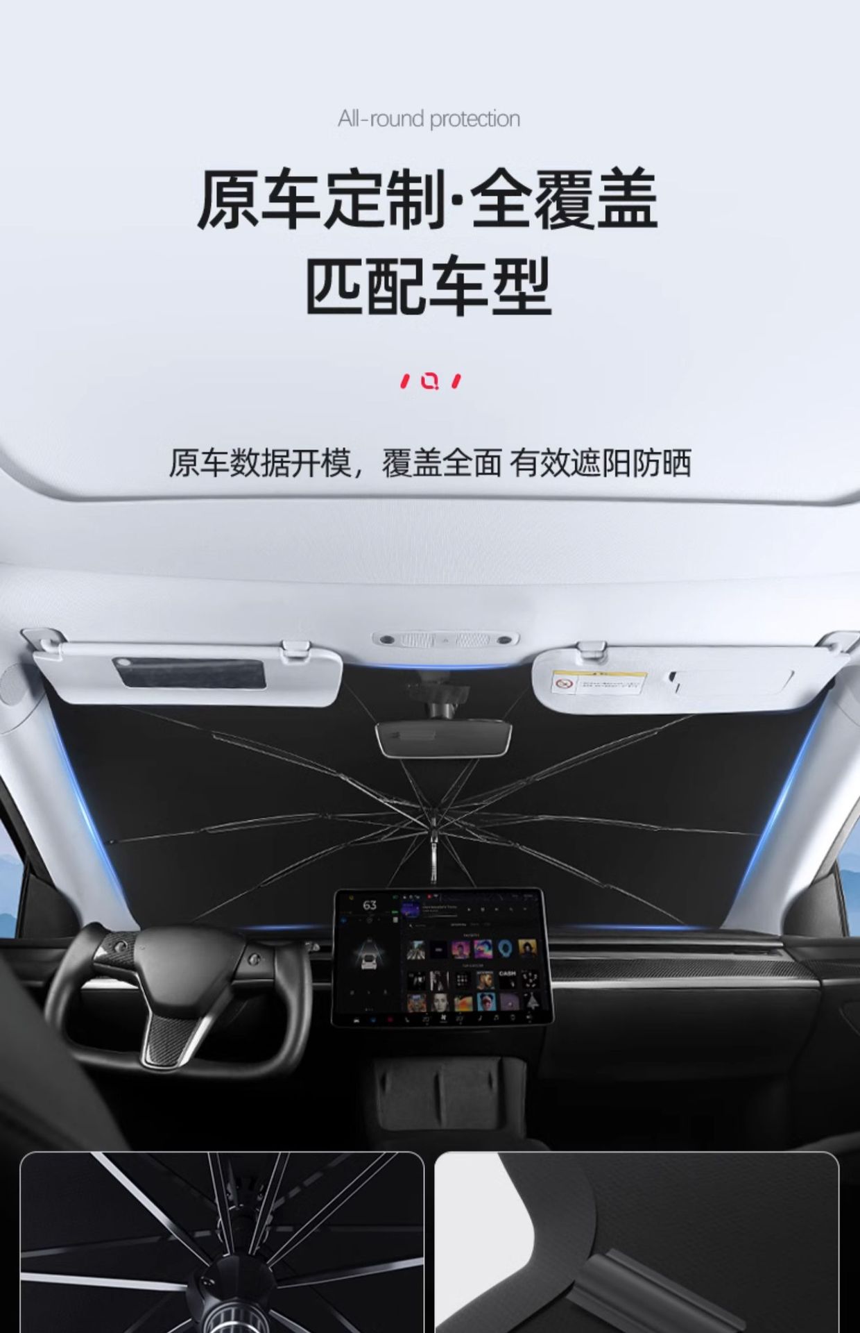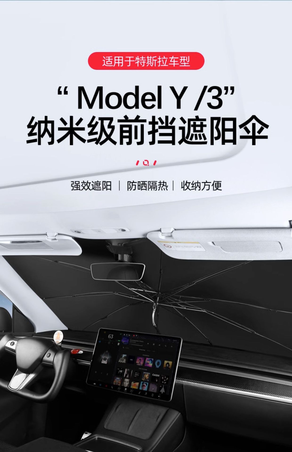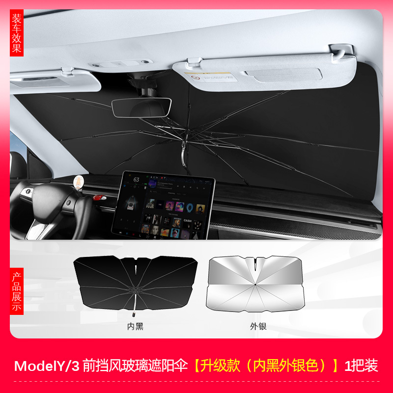 • Model Y/3 앞유리 파라솔 [(업그레이드 모델) 외부는 실버, 내부는 블랙 모델] 1개