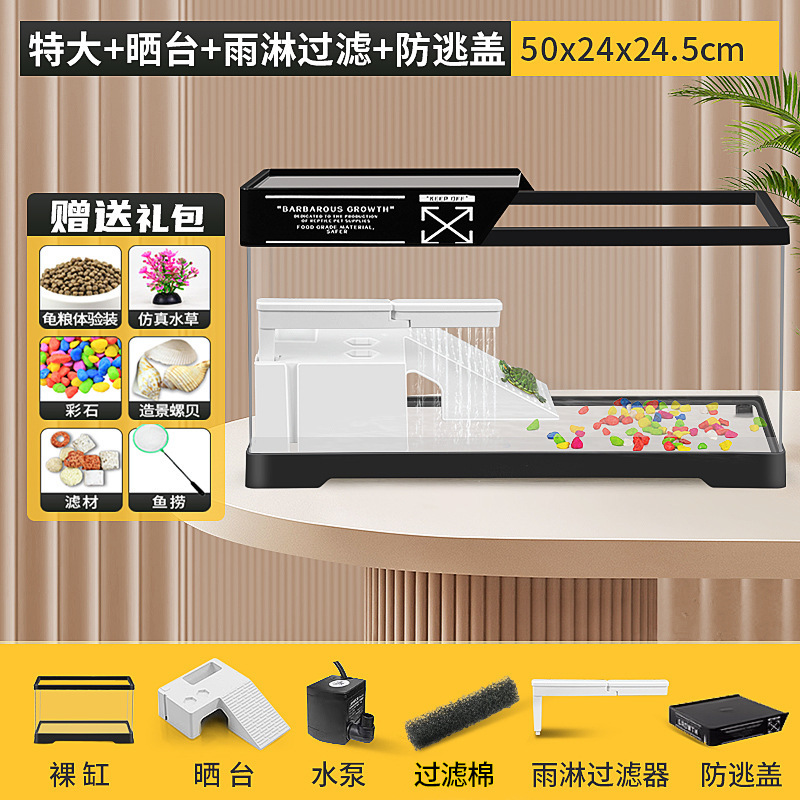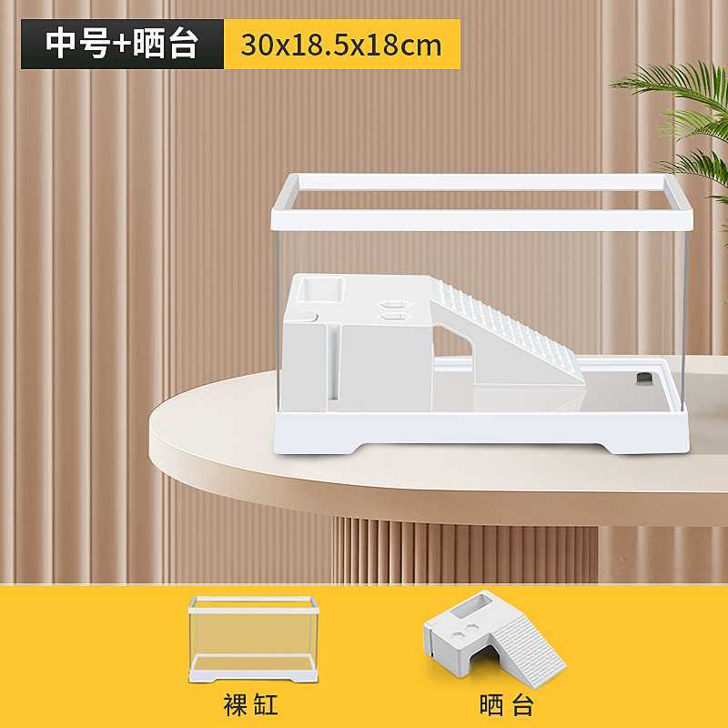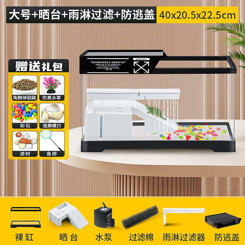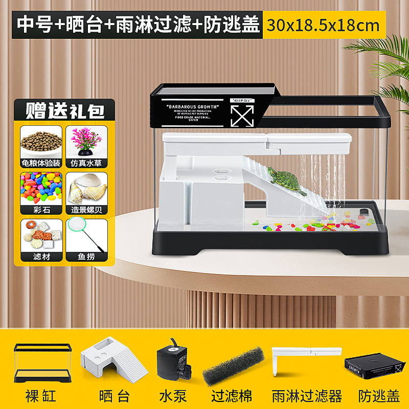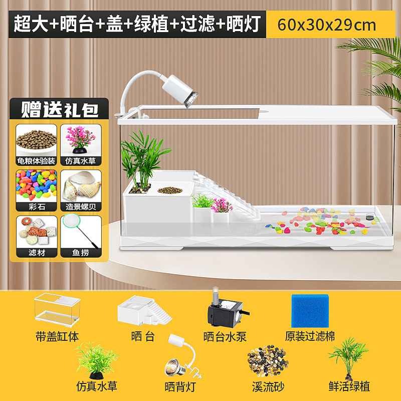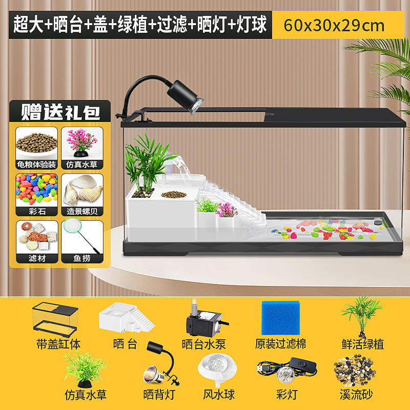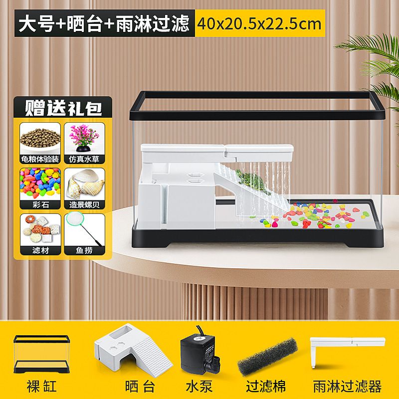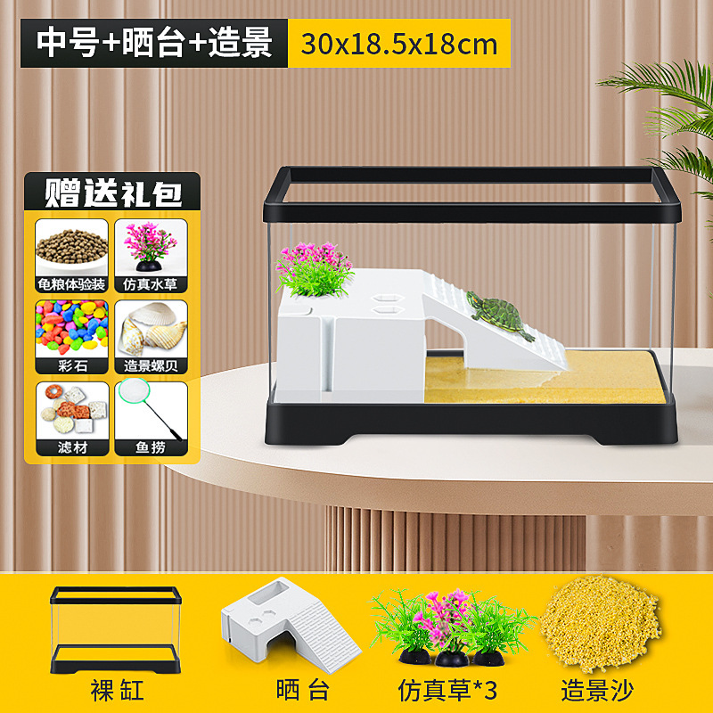 커버 탱크가있는 풍경 작은 물고기 탱크 빌라 거북이 탱크 플라스틱 바구니 테이블 거북이 등반 테이블 작은 생태 수유 상자 먹이스토어 가기