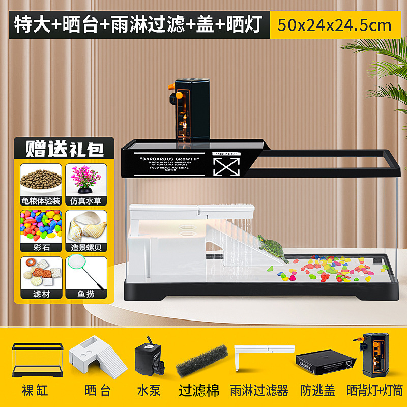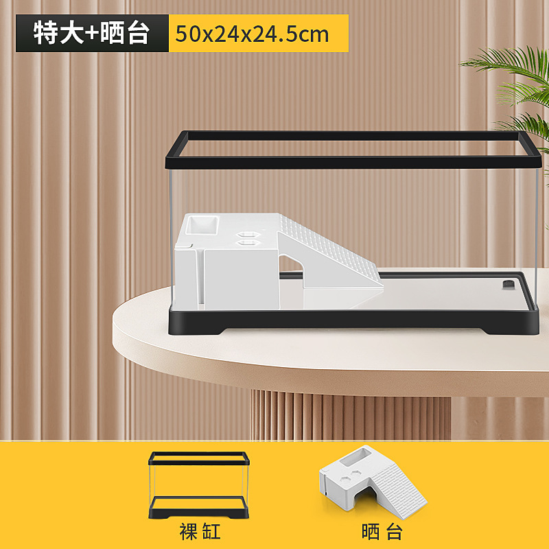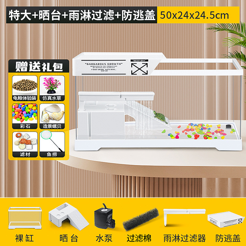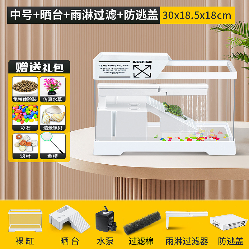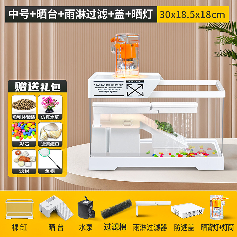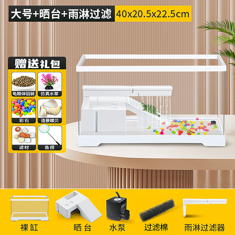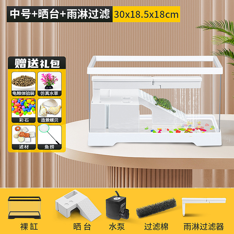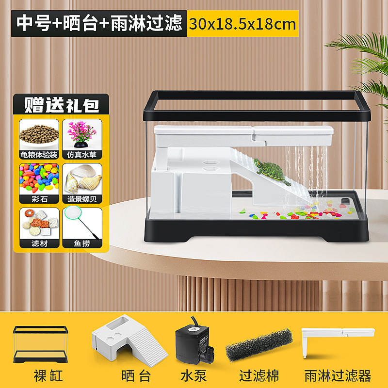 커버 탱크가있는 풍경 작은 물고기 탱크 빌라 거북이 탱크 플라스틱 바구니 테이블 거북이 등반 테이블 작은 생태 수유 상자 먹이스토어 가기