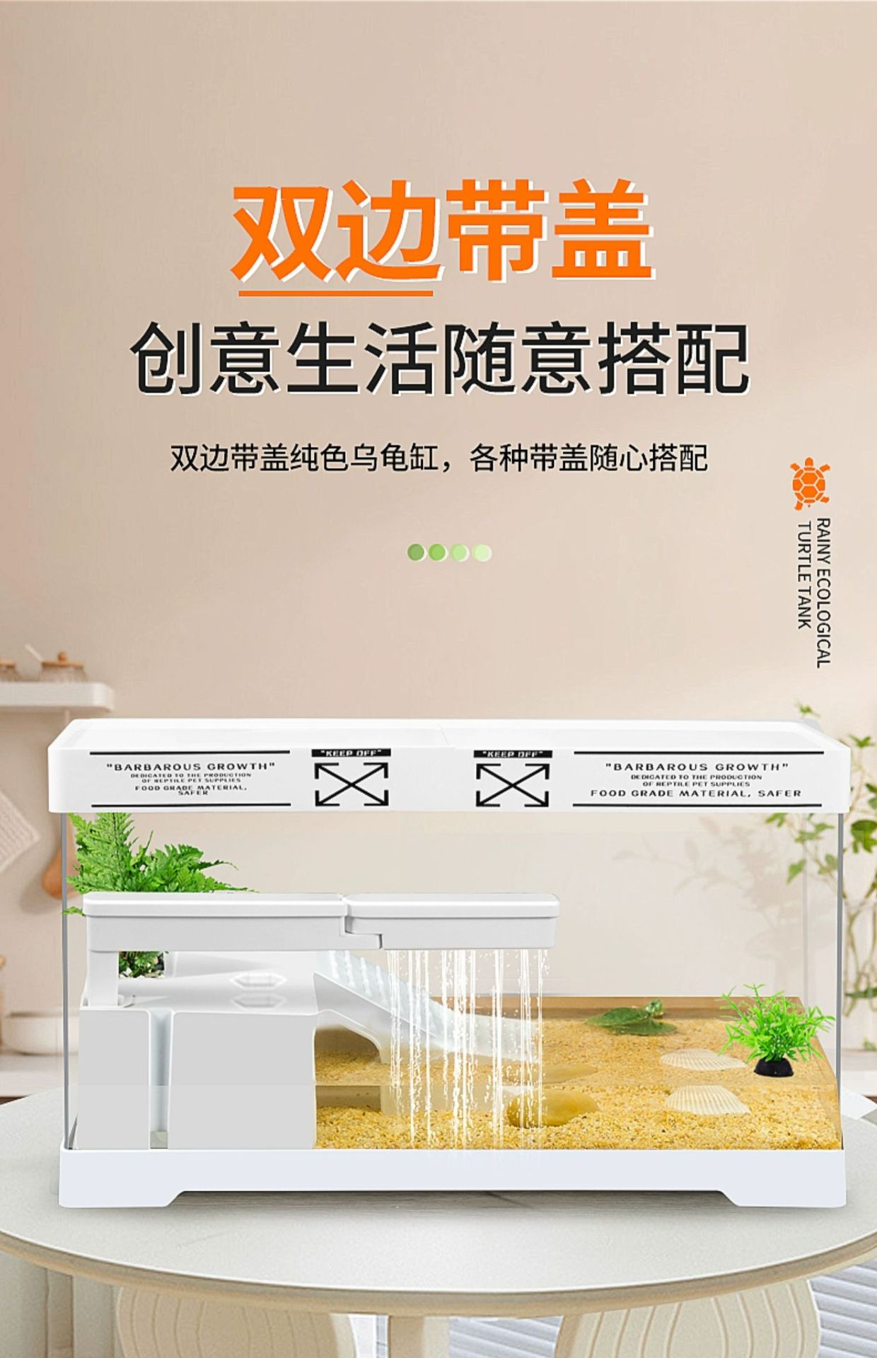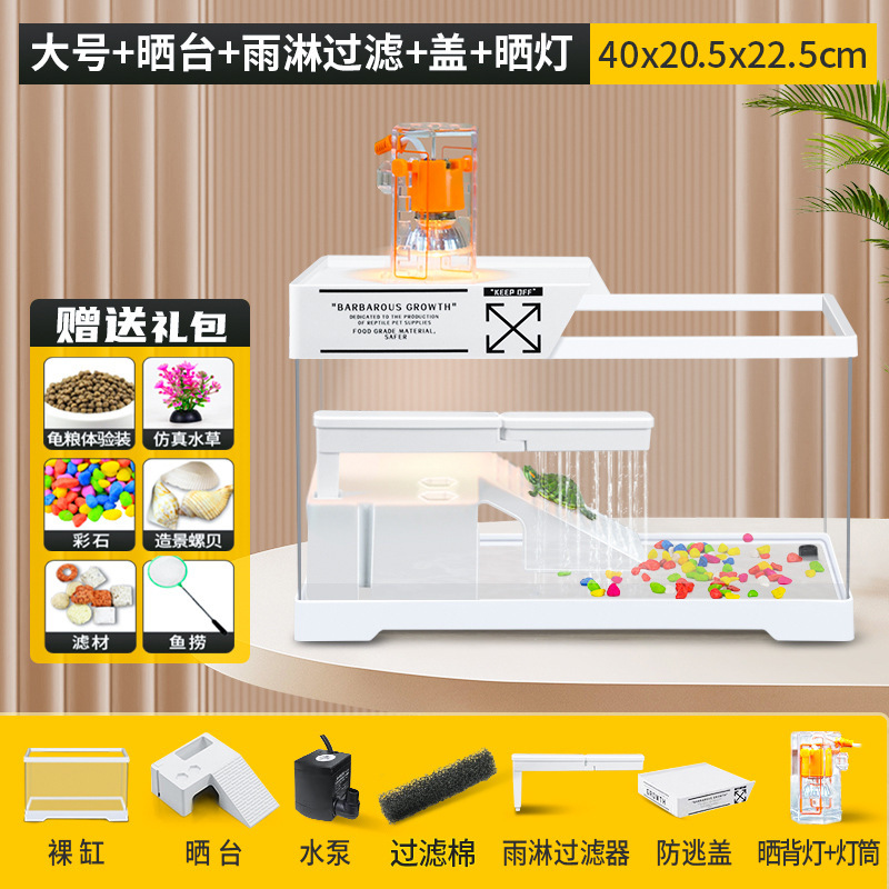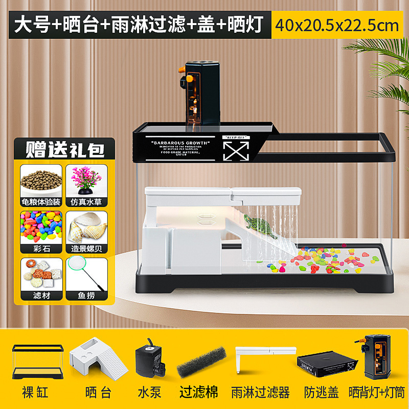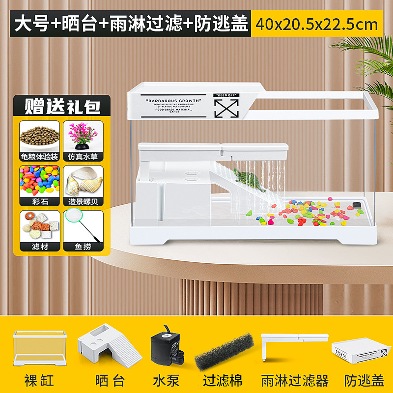 커버 탱크가있는 풍경 작은 물고기 탱크 빌라 거북이 탱크 플라스틱 바구니 테이블 거북이 등반 테이블 작은 생태 수유 상자 먹이