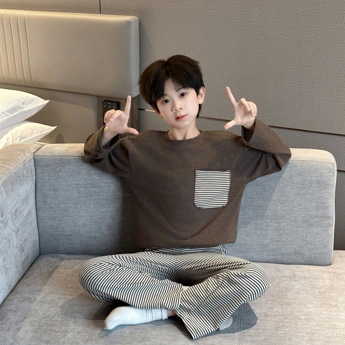 어린이 소년 소녀 잠옷 가을과 겨울 부모-자식 새 집 옷 긴팔 소년 가을 옷 긴 바지 세트스토어 가기