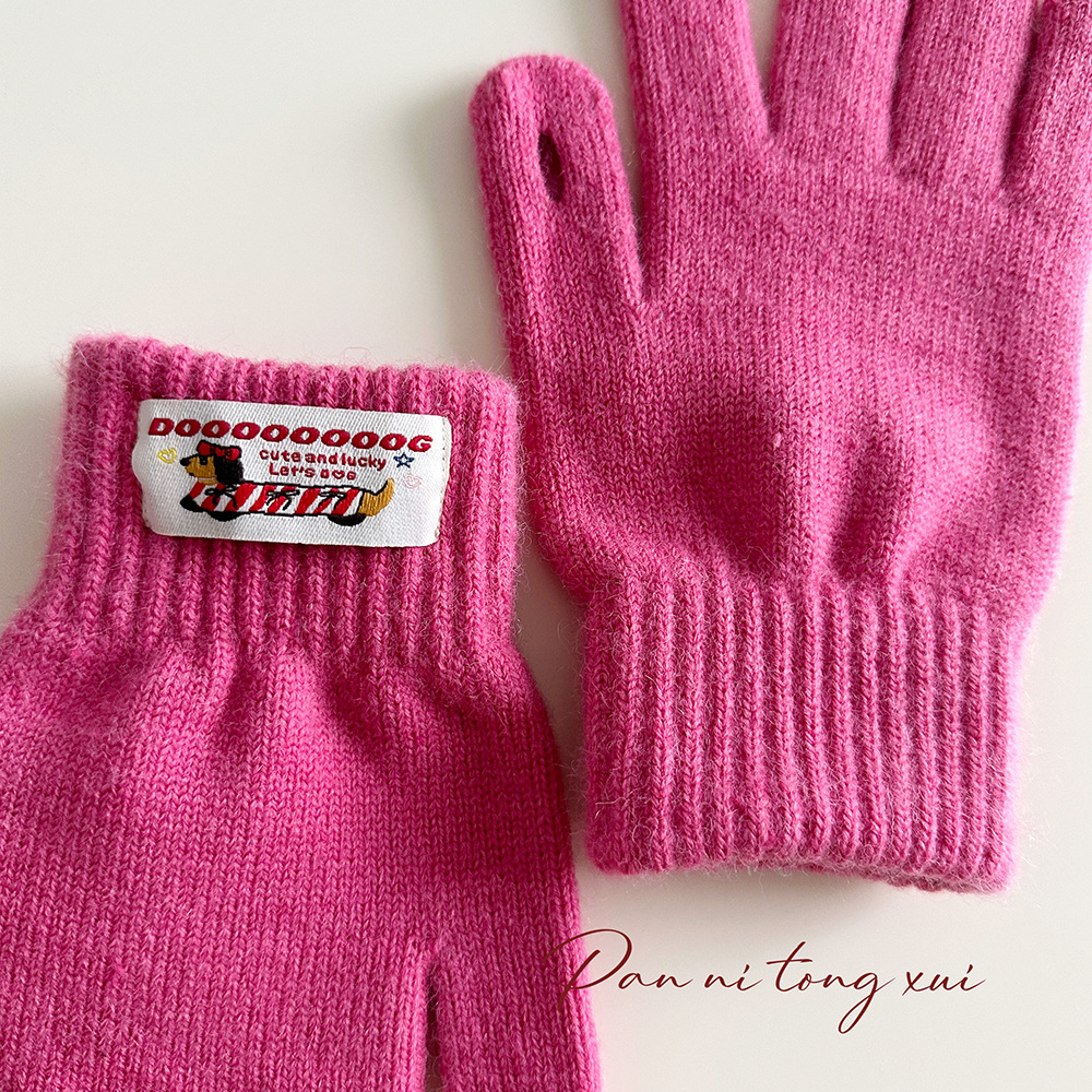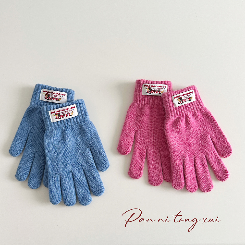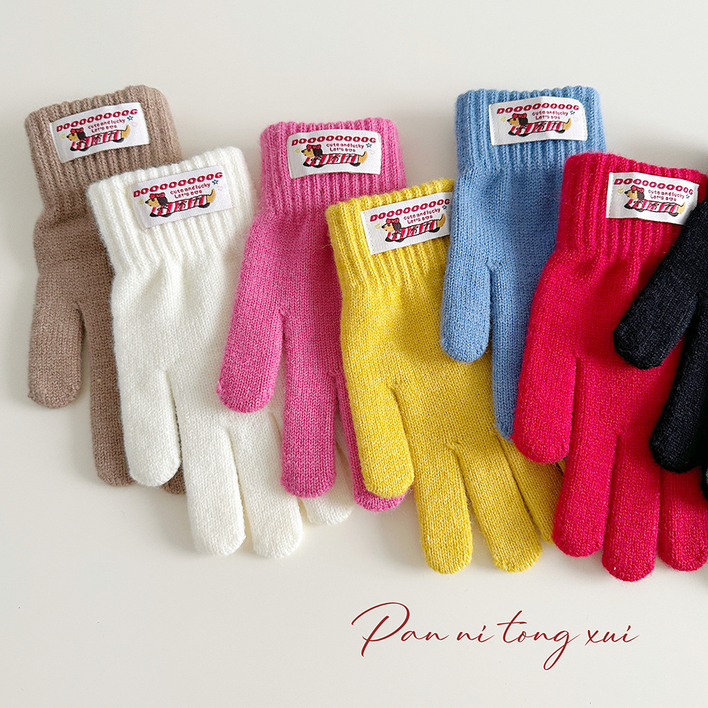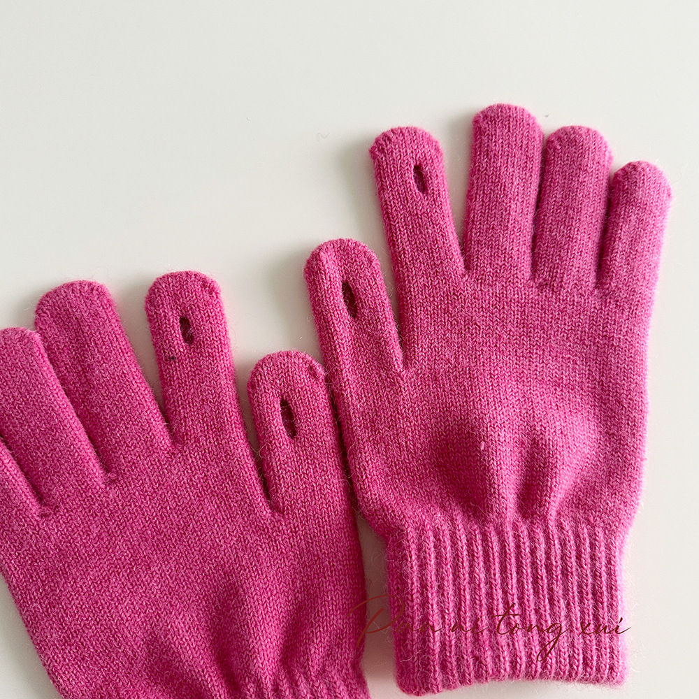 한국 따뜻한 장갑 여성의 겨울 다섯 손가락 터치 스크린 중대형 어린이를위한 니트 울 장갑 솔리드 컬러 학생 손가락 장갑스토어 가기