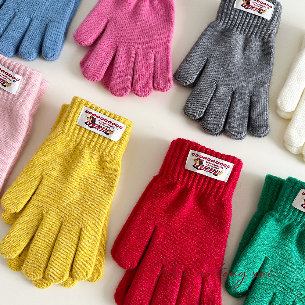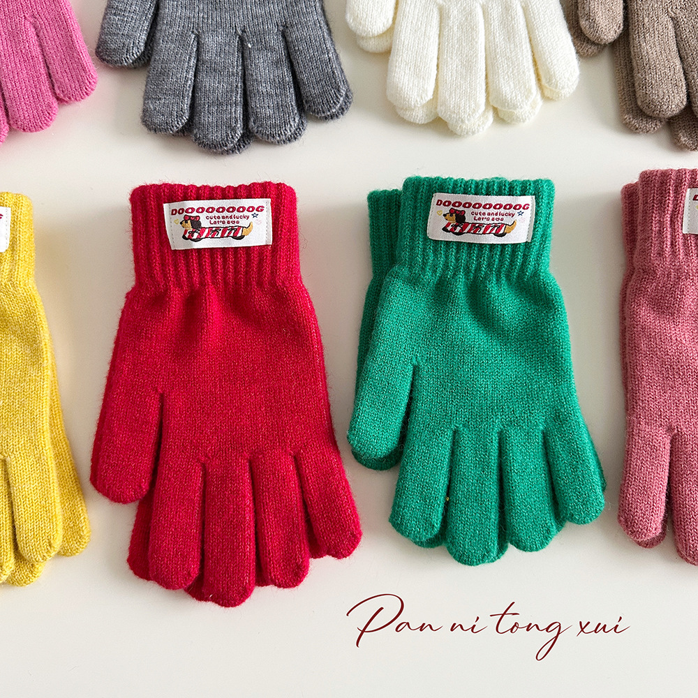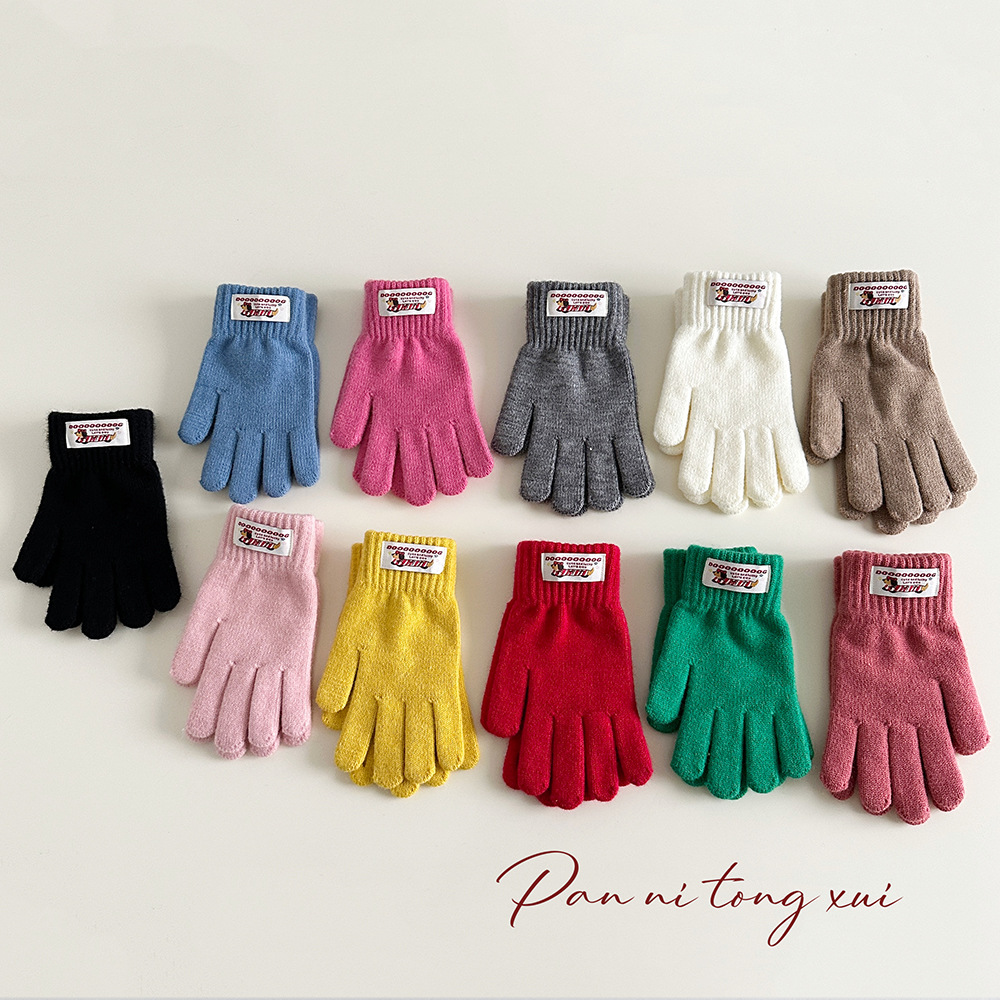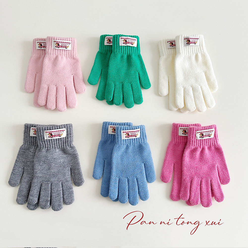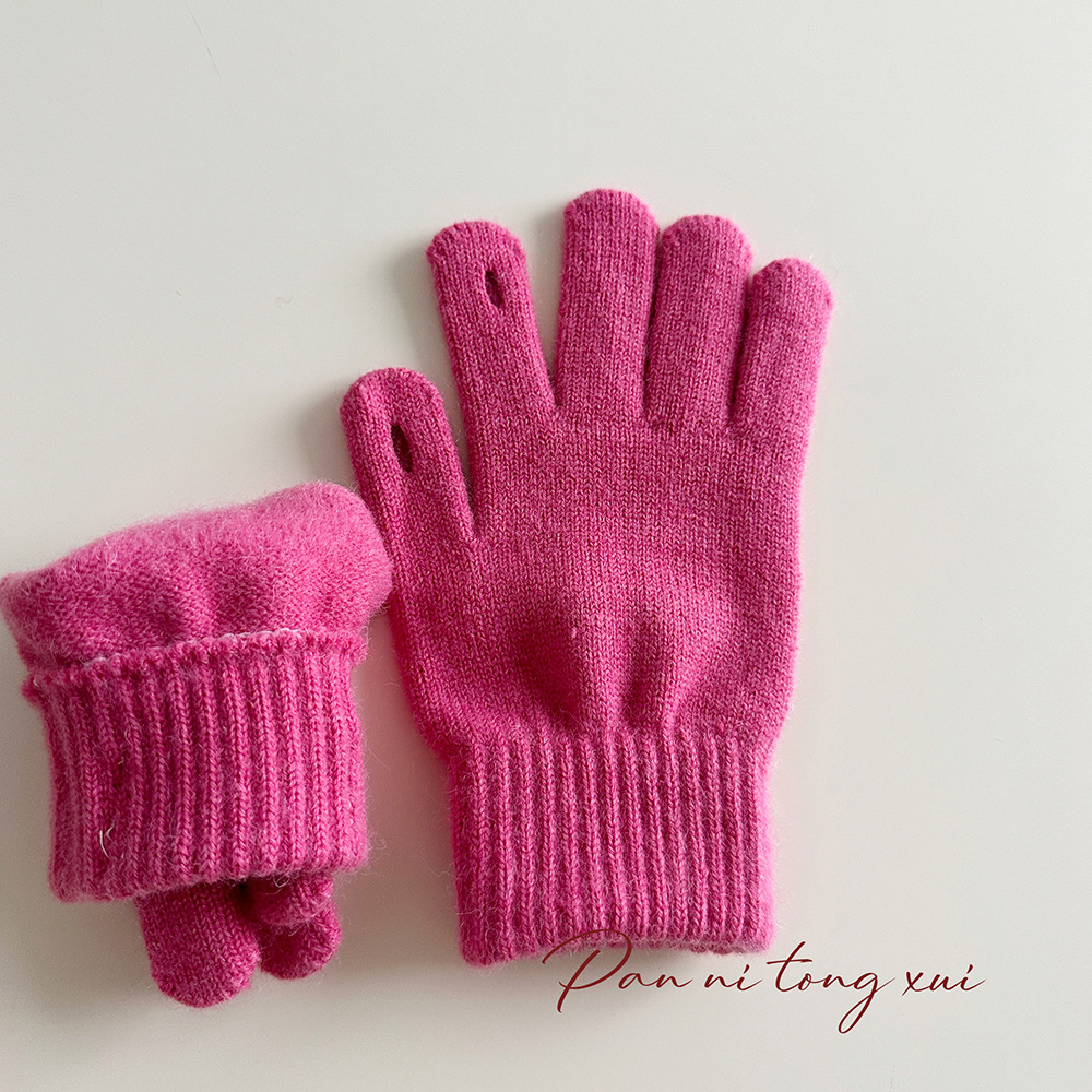 한국 따뜻한 장갑 여성의 겨울 다섯 손가락 터치 스크린 중대형 어린이를위한 니트 울 장갑 솔리드 컬러 학생 손가락 장갑