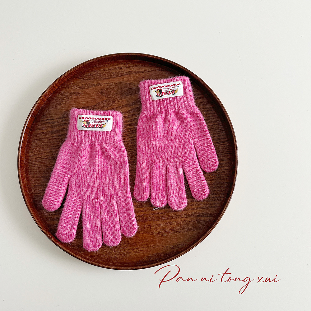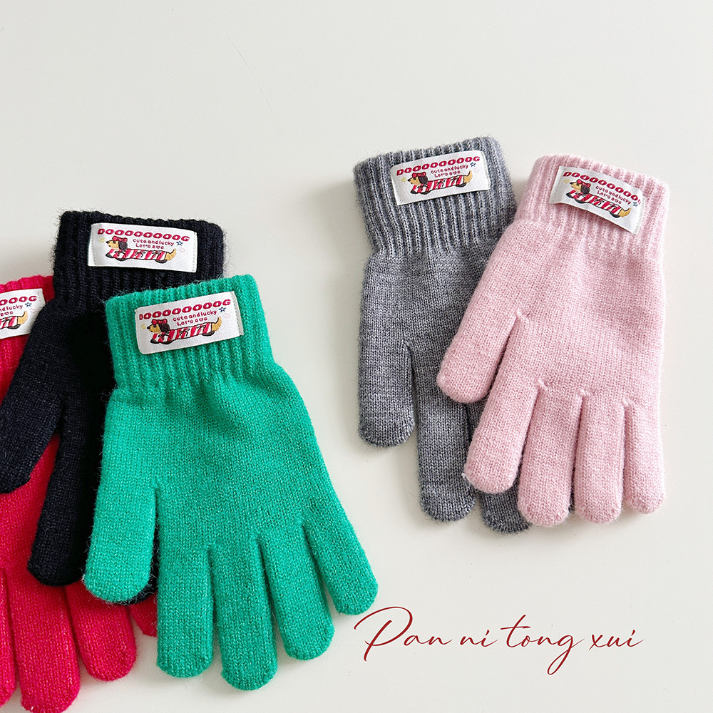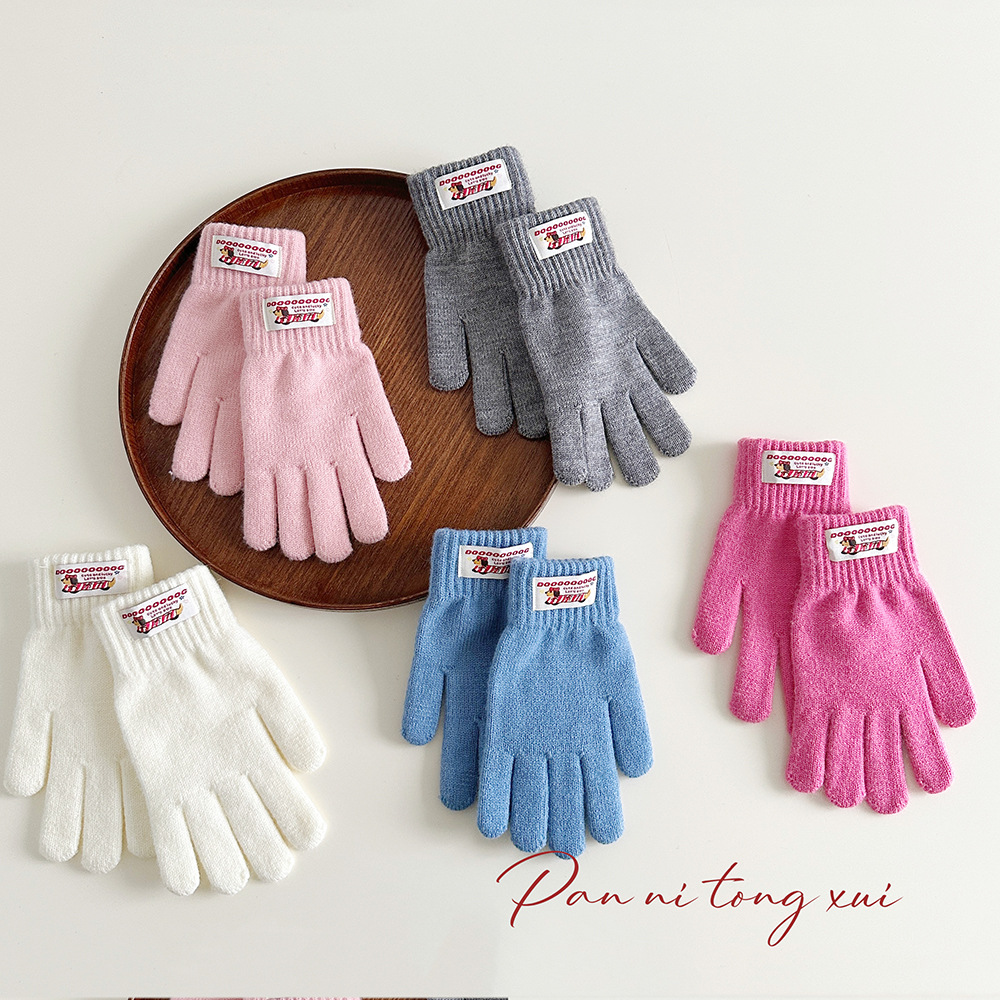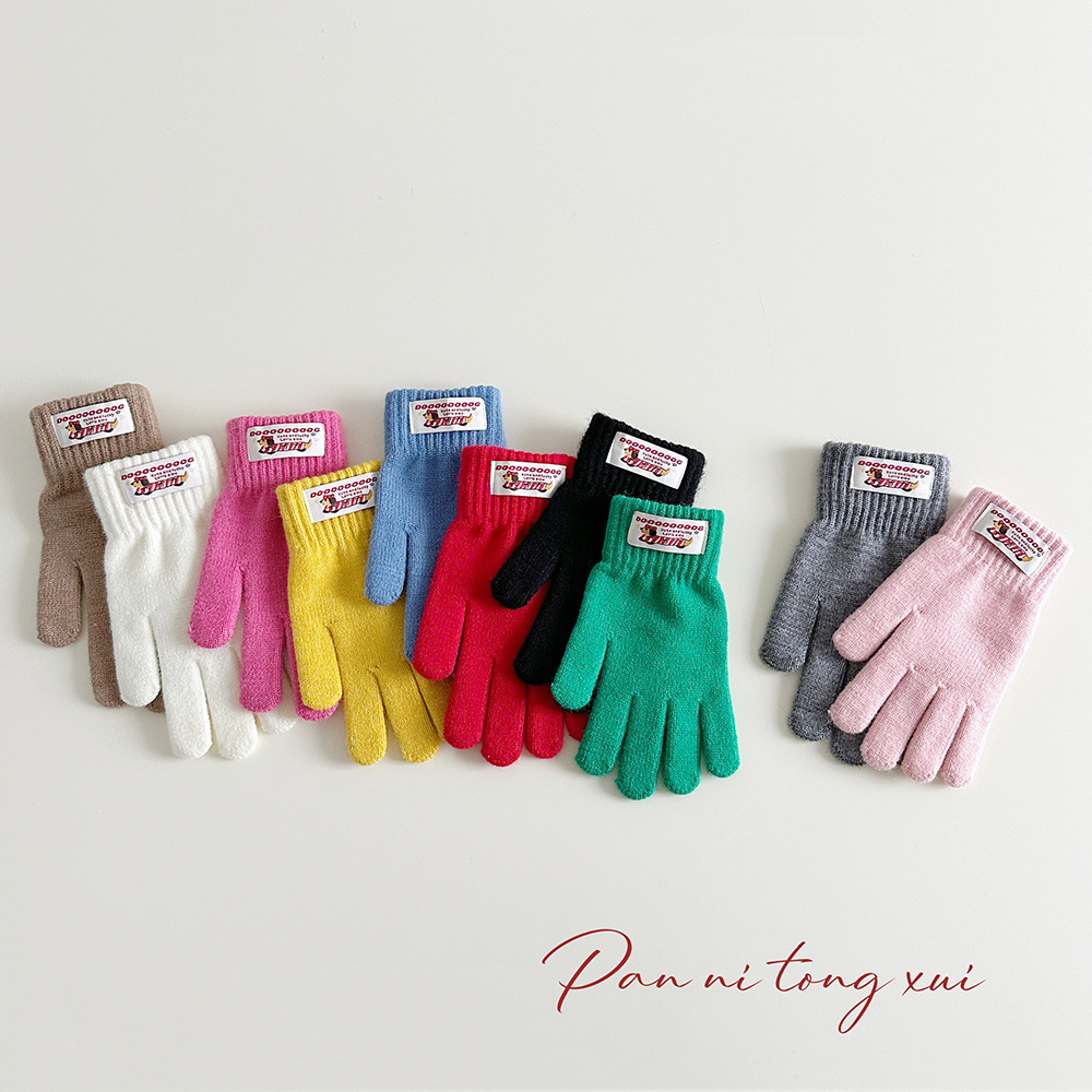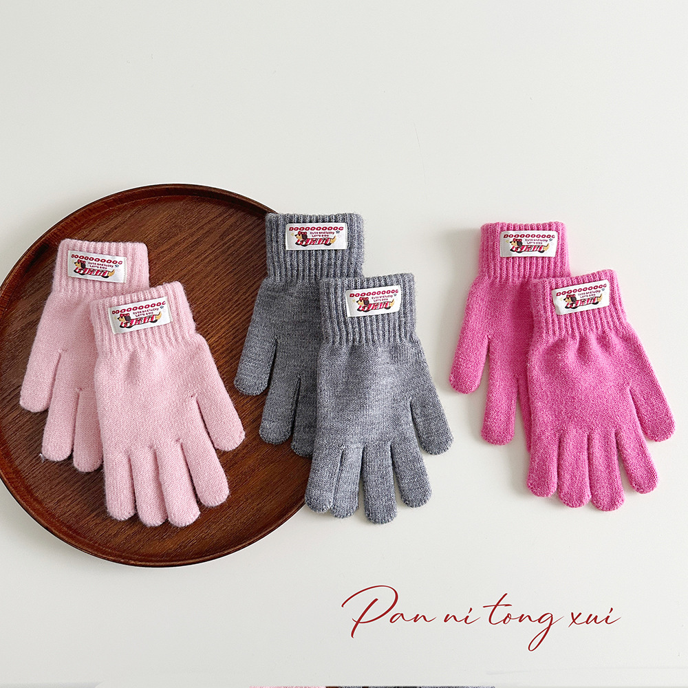 한국 따뜻한 장갑 여성의 겨울 다섯 손가락 터치 스크린 중대형 어린이를위한 니트 울 장갑 솔리드 컬러 학생 손가락 장갑